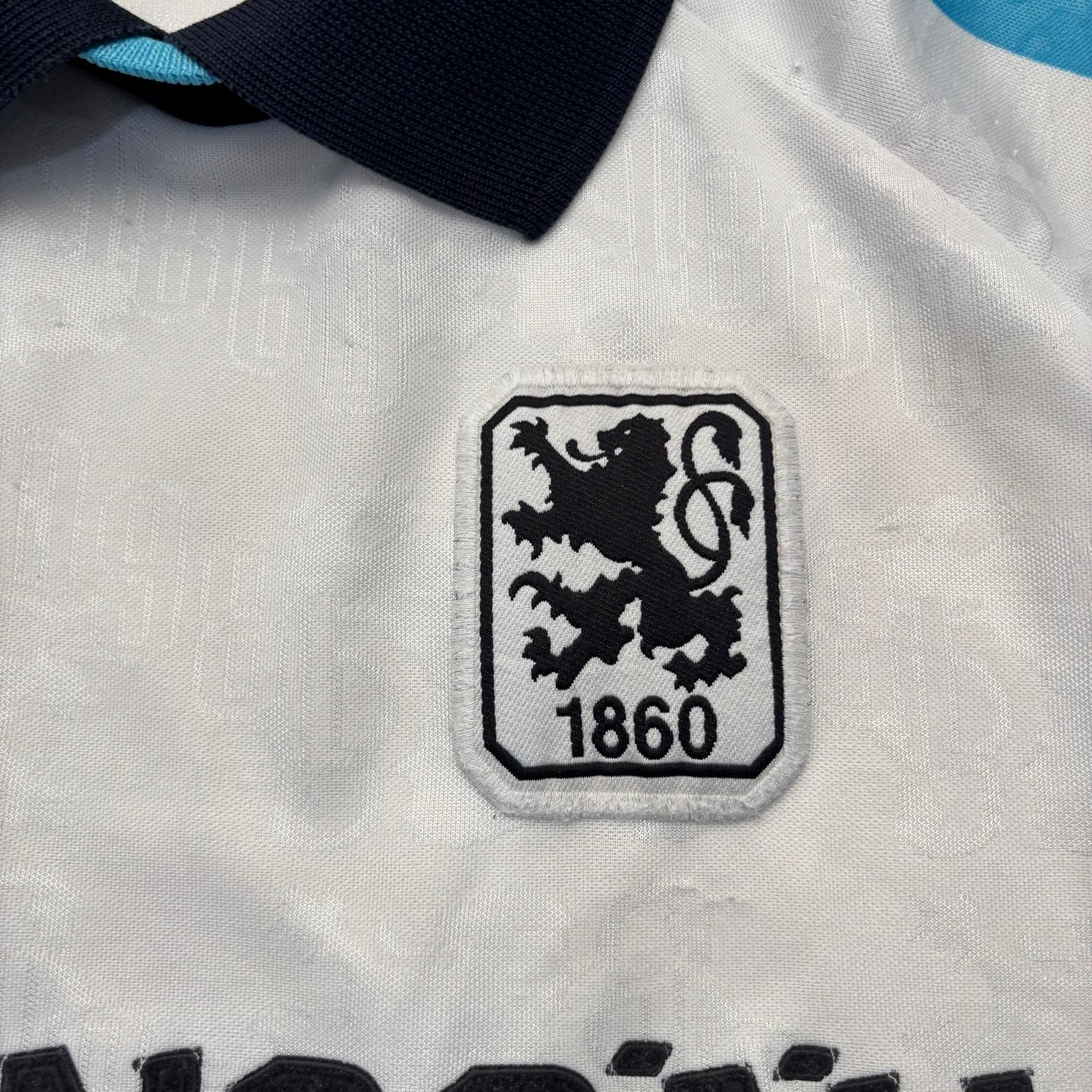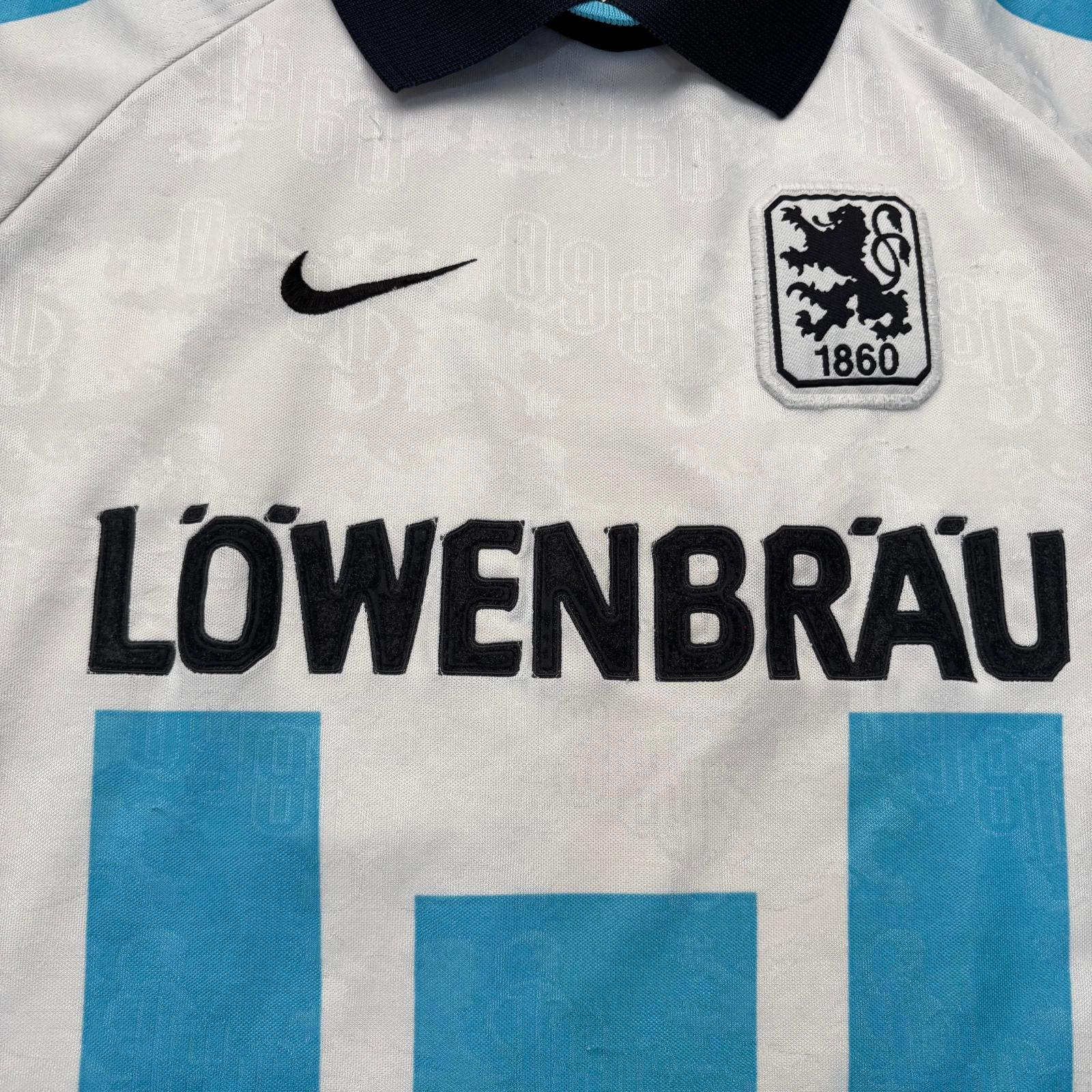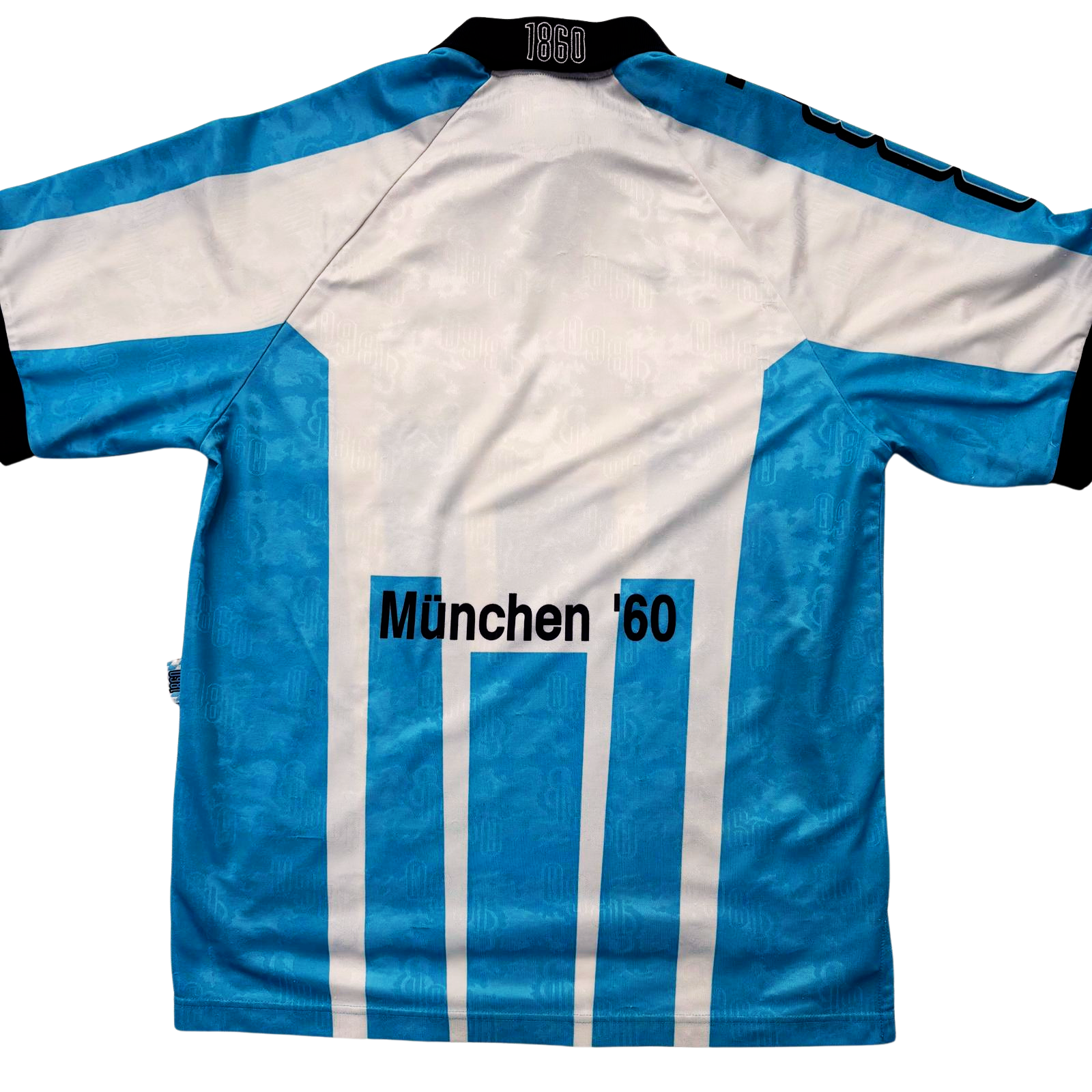 El TSV 1860 Múnich utilizó esta camiseta como equipación local durante la temporada 1996-97. Fabricada por Nike y patrocinada por Löwenbräu, presenta un diseño a franjas celestes y blancas con cuello azul marino. El equipo finalizó 7.º en la Bundesliga y alcanzó los cuartos de final en la Copa de Alemania. Disputó la Copa Intertoto sin superar la fase de grupos.