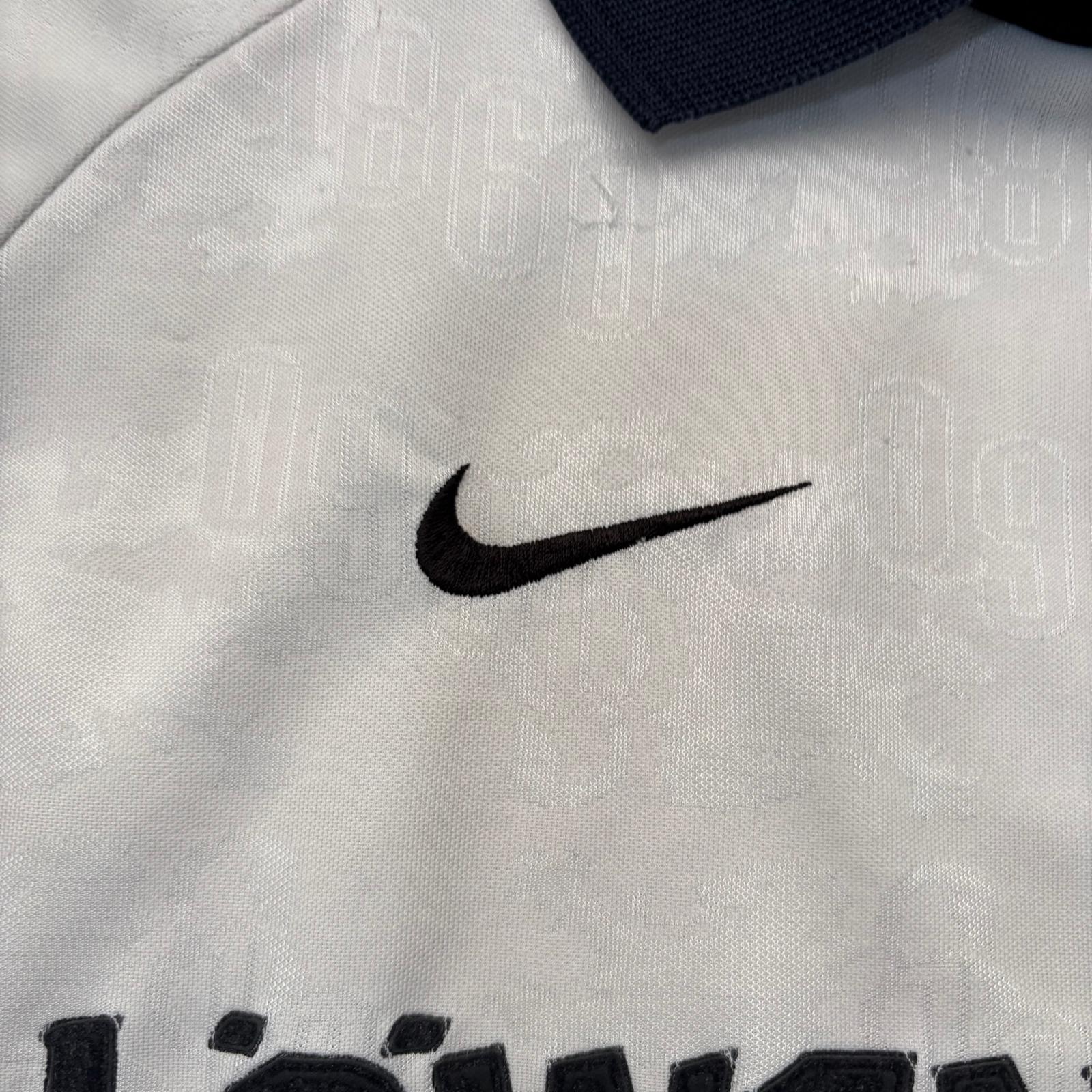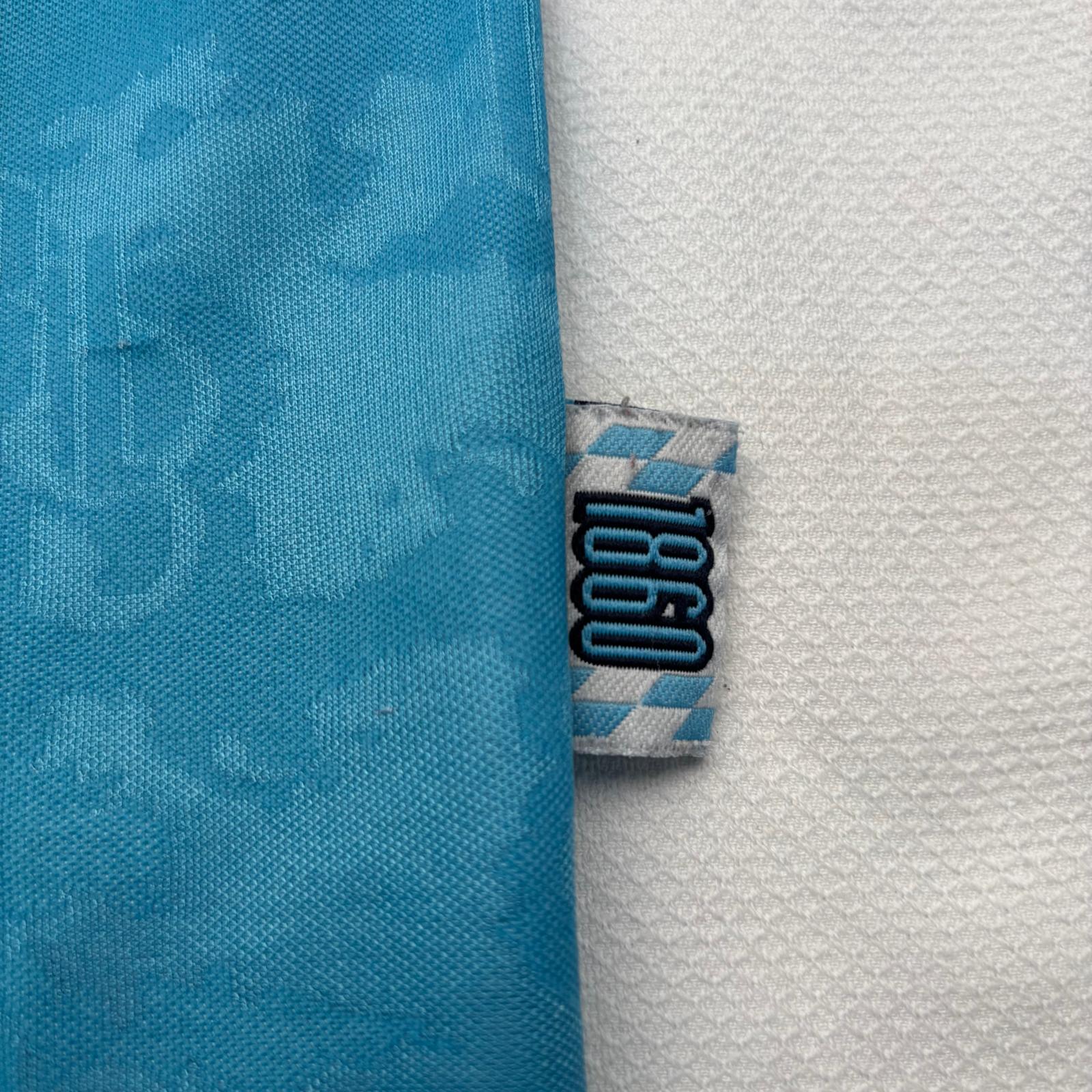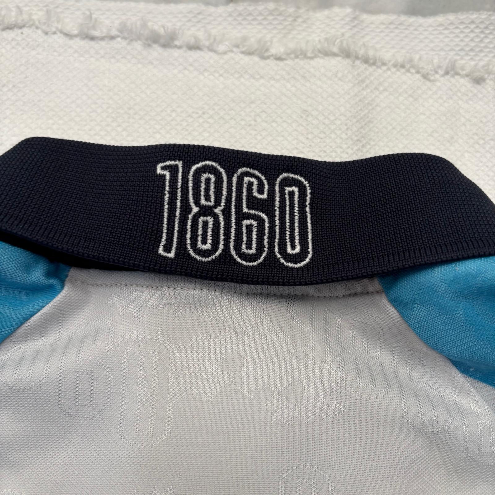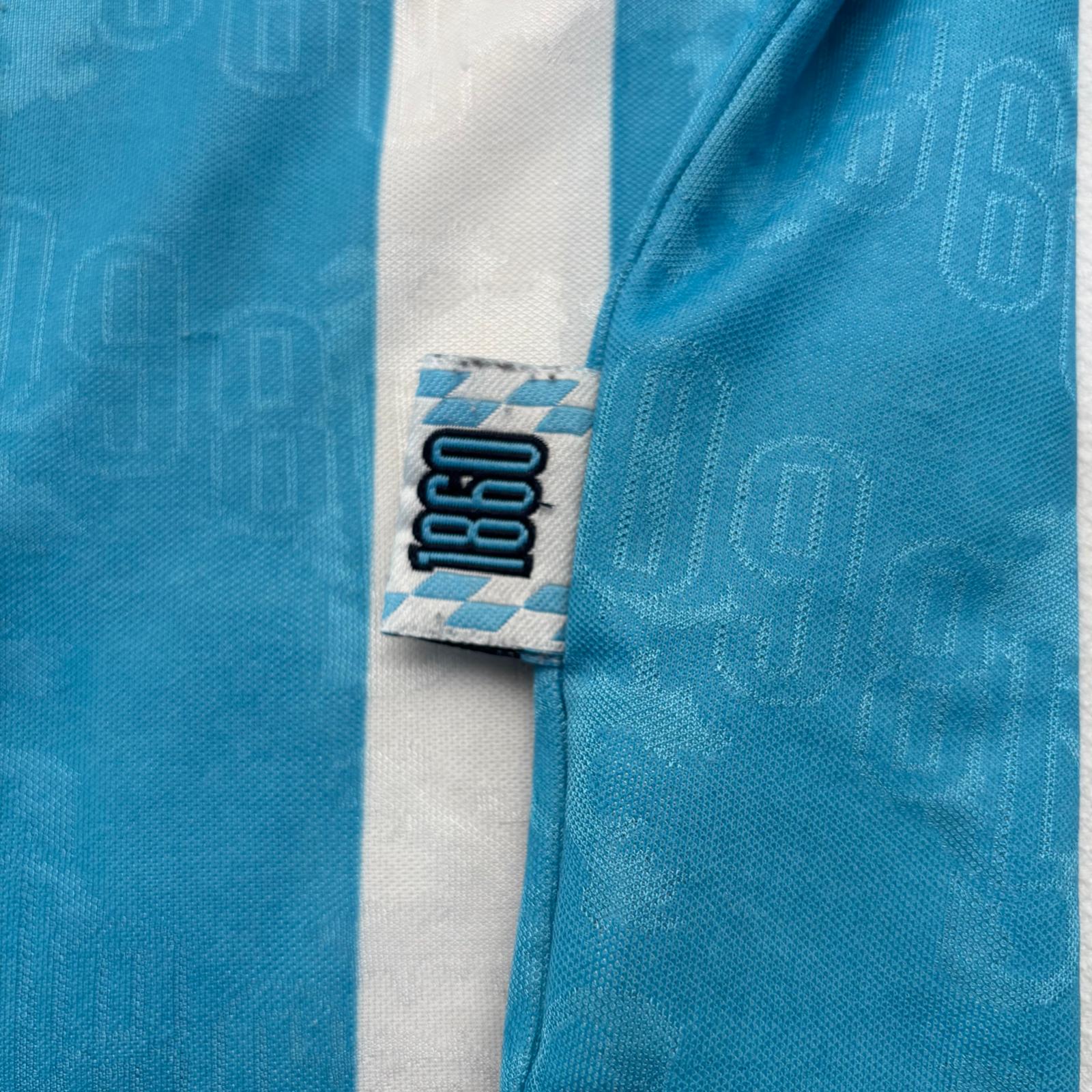 El TSV 1860 Múnich utilizó esta camiseta como equipación local durante la temporada 1996-97. Fabricada por Nike y patrocinada por Löwenbräu, presenta un diseño a franjas celestes y blancas con cuello azul marino. El equipo finalizó 7.º en la Bundesliga y alcanzó los cuartos de final en la Copa de Alemania. Disputó la Copa Intertoto sin superar la fase de grupos.