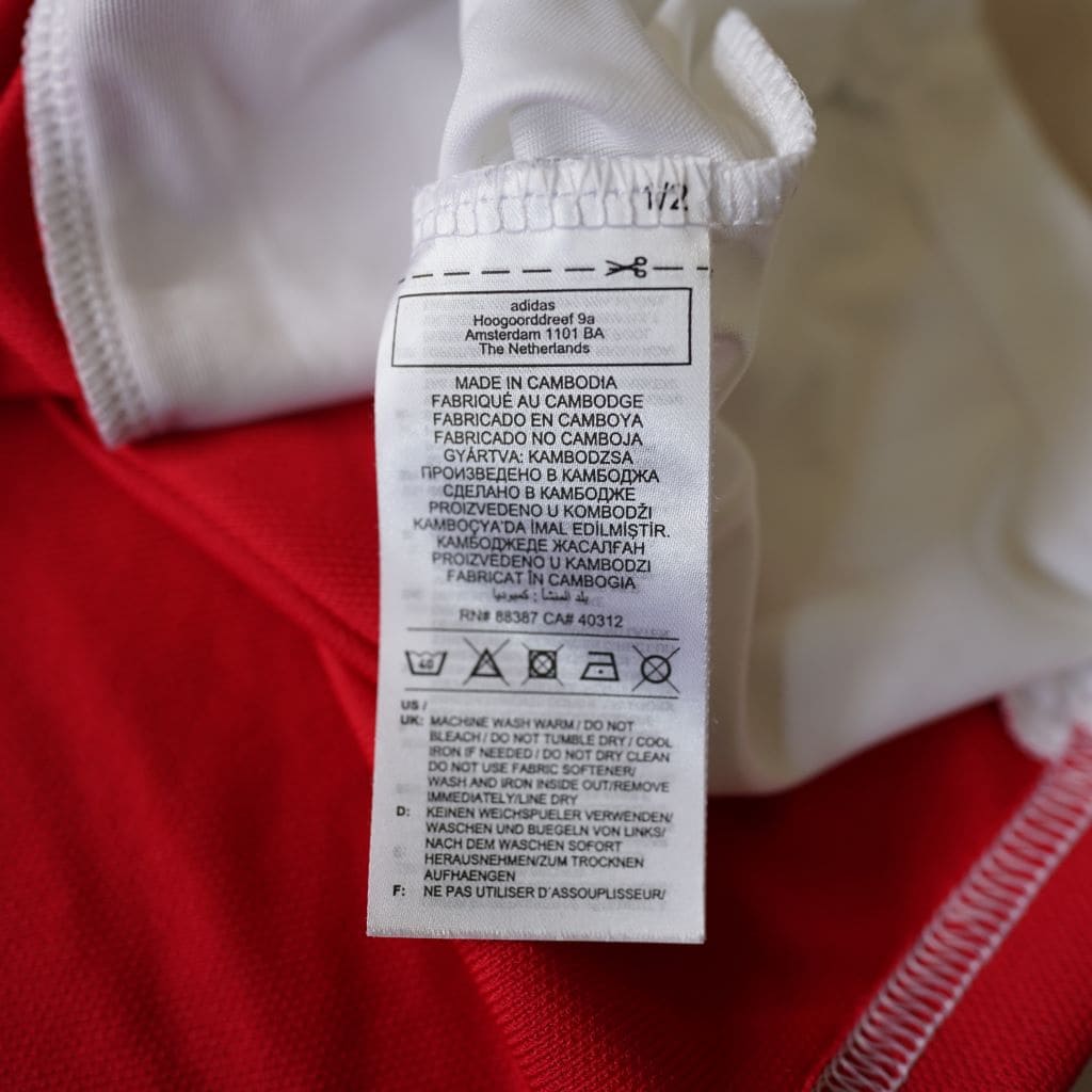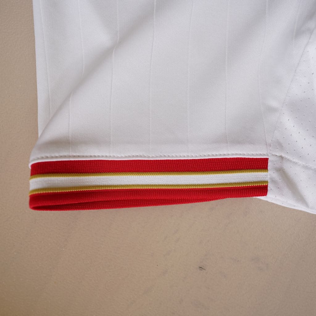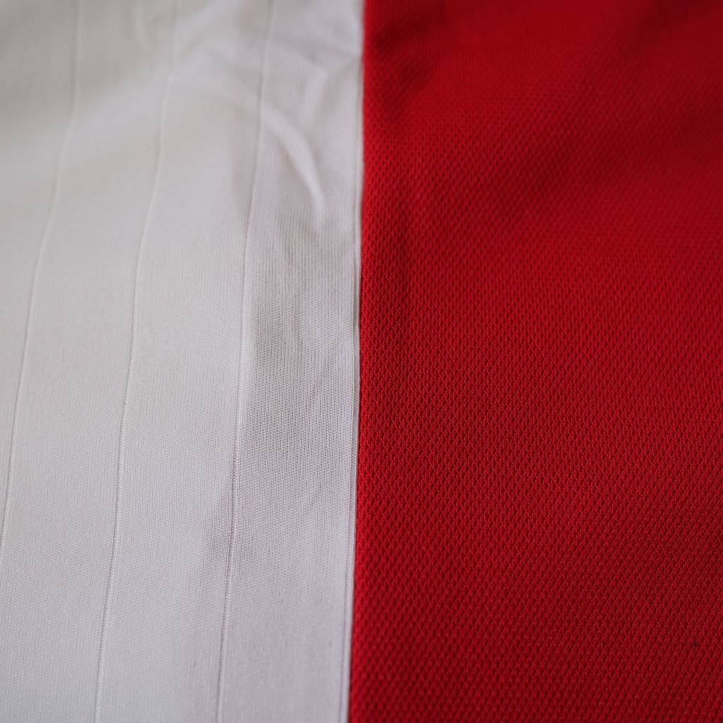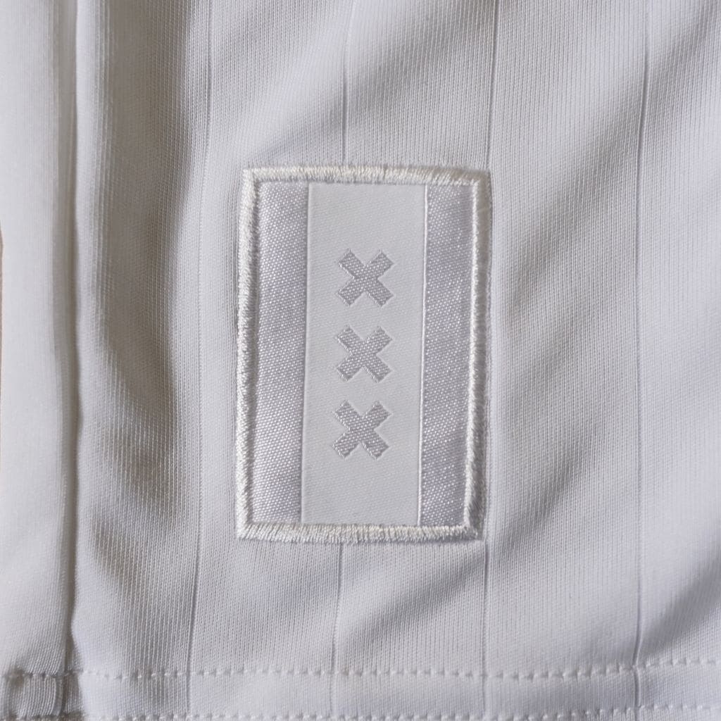 Camiseta local del Ajax para la temporada 2022-2023, fabricada por Adidas. Mantiene el diseño tradicional con una franja roja central sobre fondo blanco, pero incorpora detalles en dorado en el cuello, mangas y escudo. Fue una temporada irregular: tercero en liga, perdió la final de la KNVB Beker contra el PSV, eliminado de la Champions en grupos y en el primer cruce de Europa League.