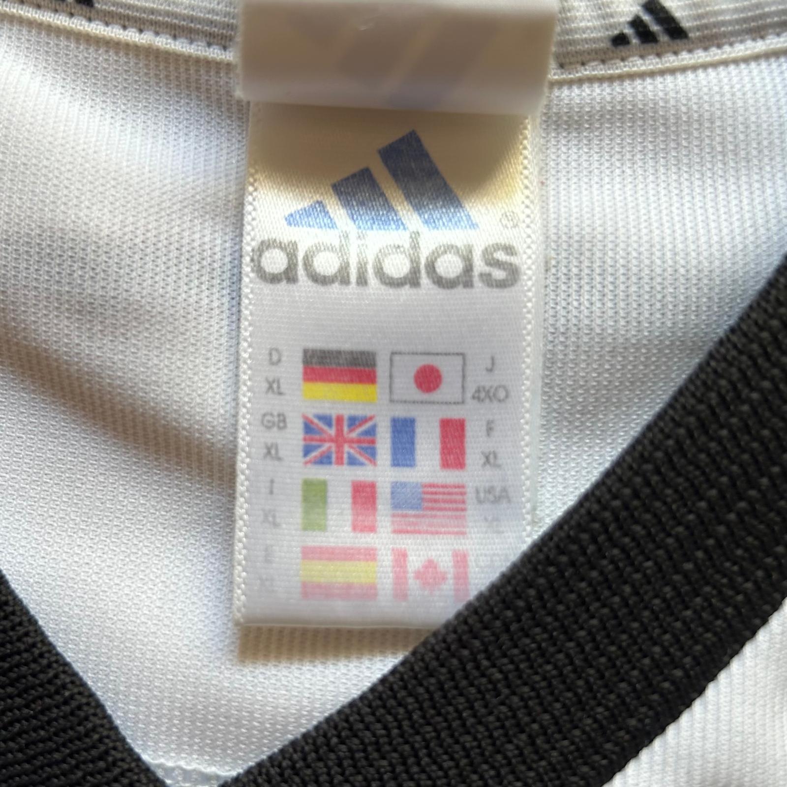 Camiseta local de la selección de Alemania, utilizada entre 2002 y 2004 y fabricada por Adidas. Usada en el Mundial de Corea-Japón 2002, donde Alemania alcanzó la final, y en la fase de clasificación para la Eurocopa 2004. Diseño clásico en blanco con detalles en negro y tres estrellas sobre el escudo, representando sus títulos mundiales hasta la fecha.