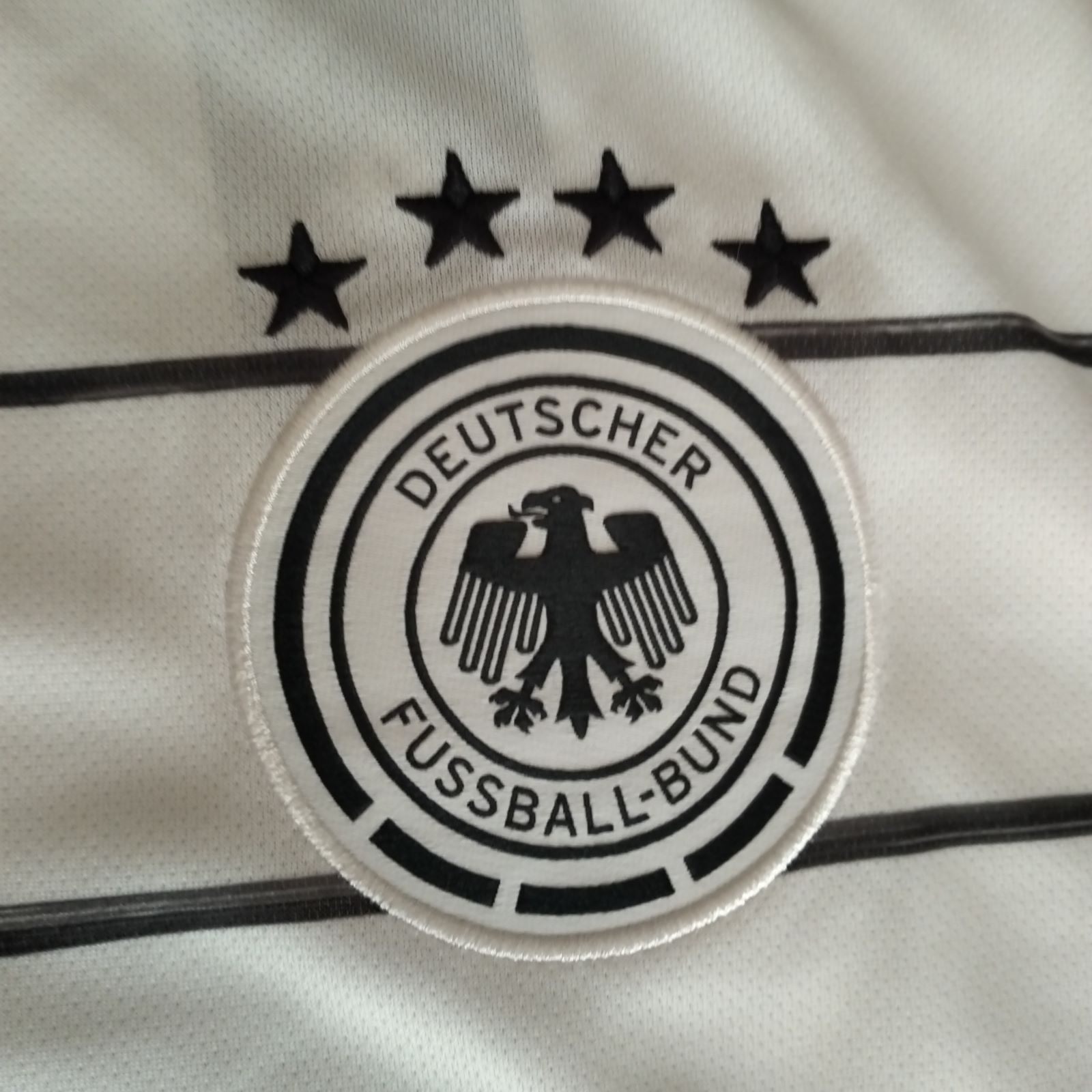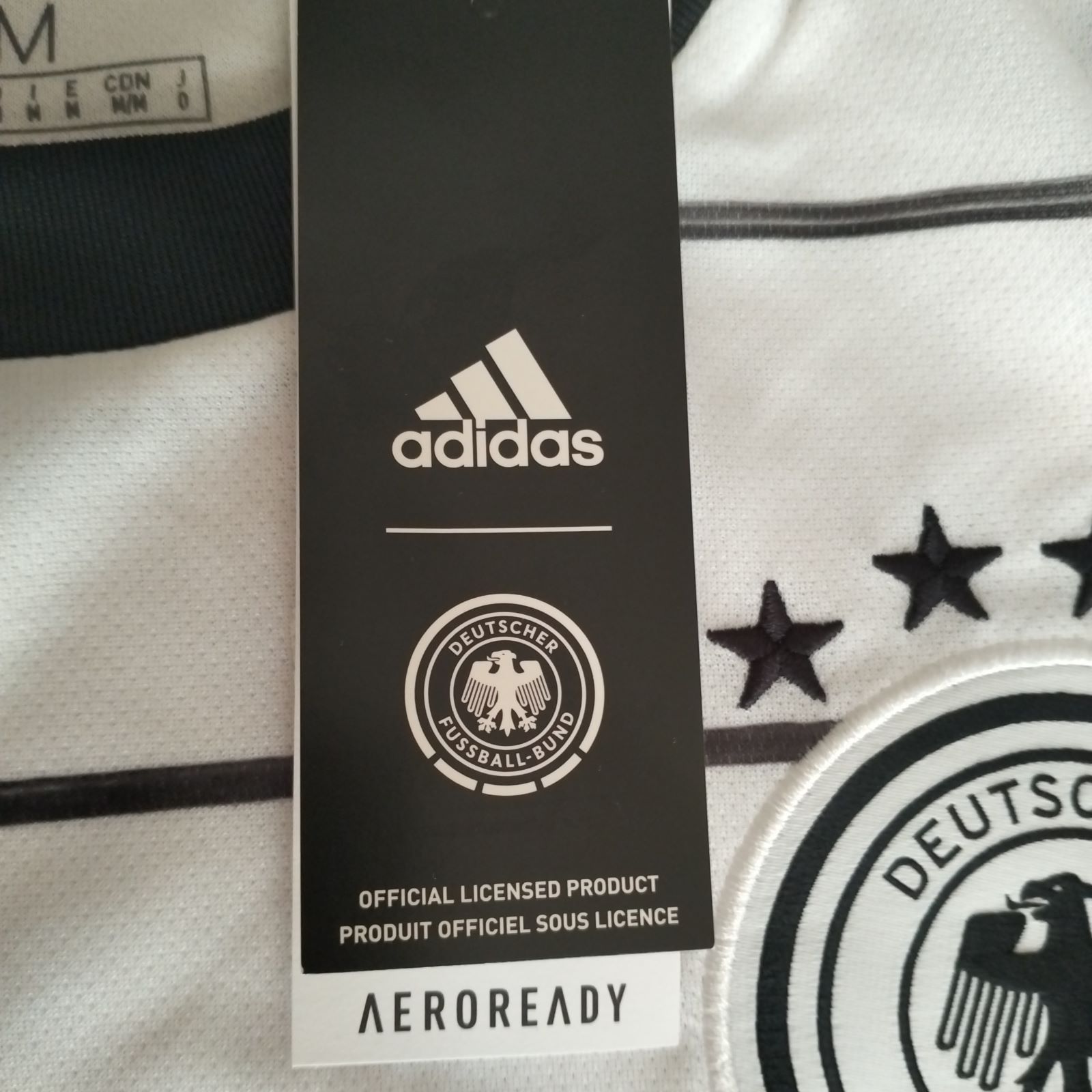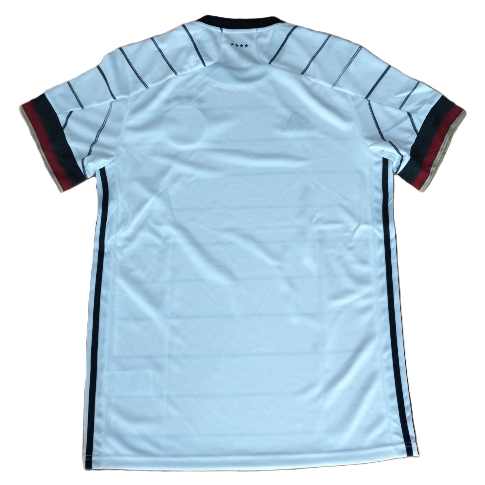 La camiseta local de Alemania 2019 – 2021, diseñada por Adidas, fue utilizada en la Eurocopa 2020 y la Liga de Naciones de la UEFA. Con este uniforme, Alemania alcanzó los octavos de final en la Eurocopa 2020, siendo eliminada por Inglaterra, y participó en la fase de grupos de la Liga de Naciones 2020-21, finalizando segunda en su grupo.