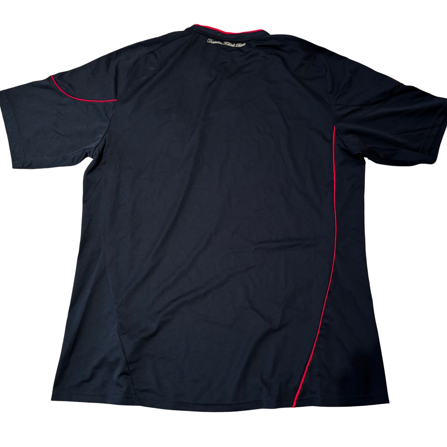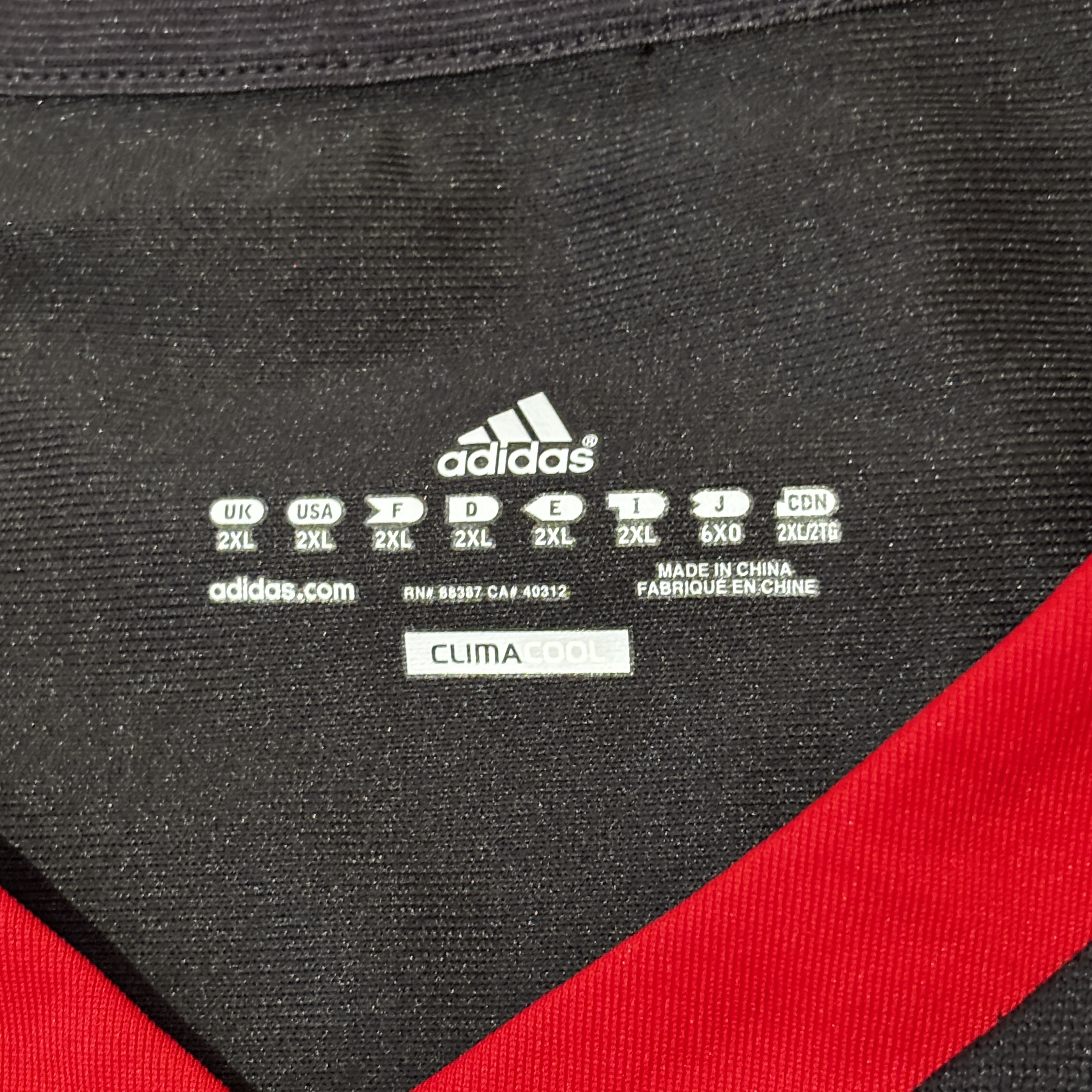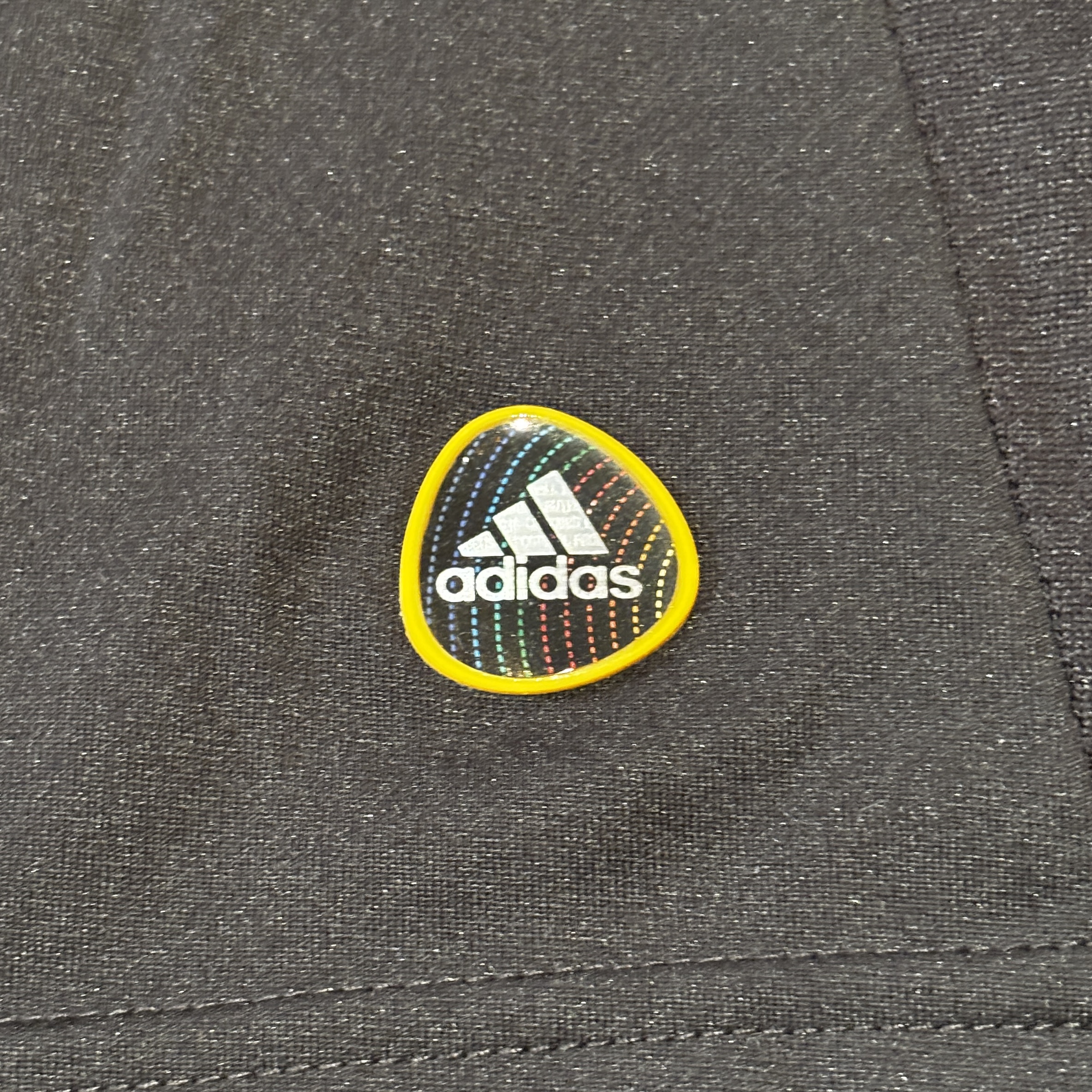 Alemania vistió esta camiseta visitante de Adidas durante el año 2010, en el Mundial de Sudáfrica. De color negro con detalles dorados y rojos, combinaba elegancia y sobriedad. Con ella, el equipo de Joachim Löw alcanzó las semifinales del torneo, destacando por su fútbol ofensivo y su joven generación de talentos.