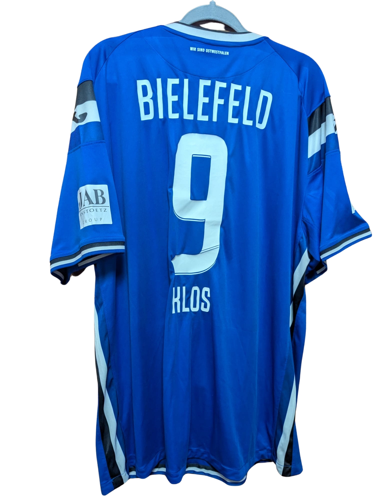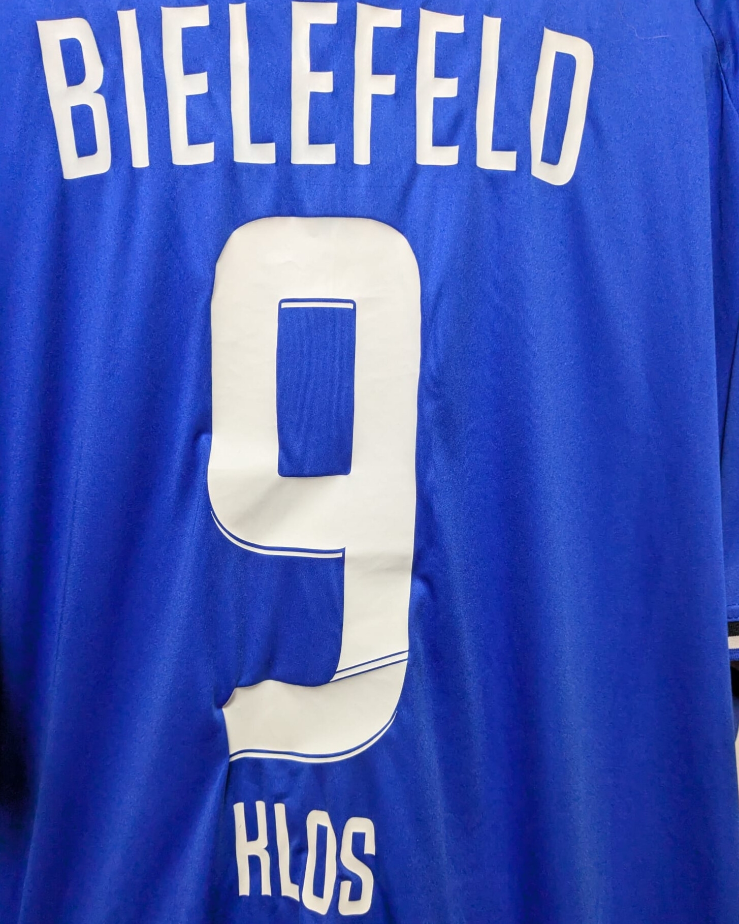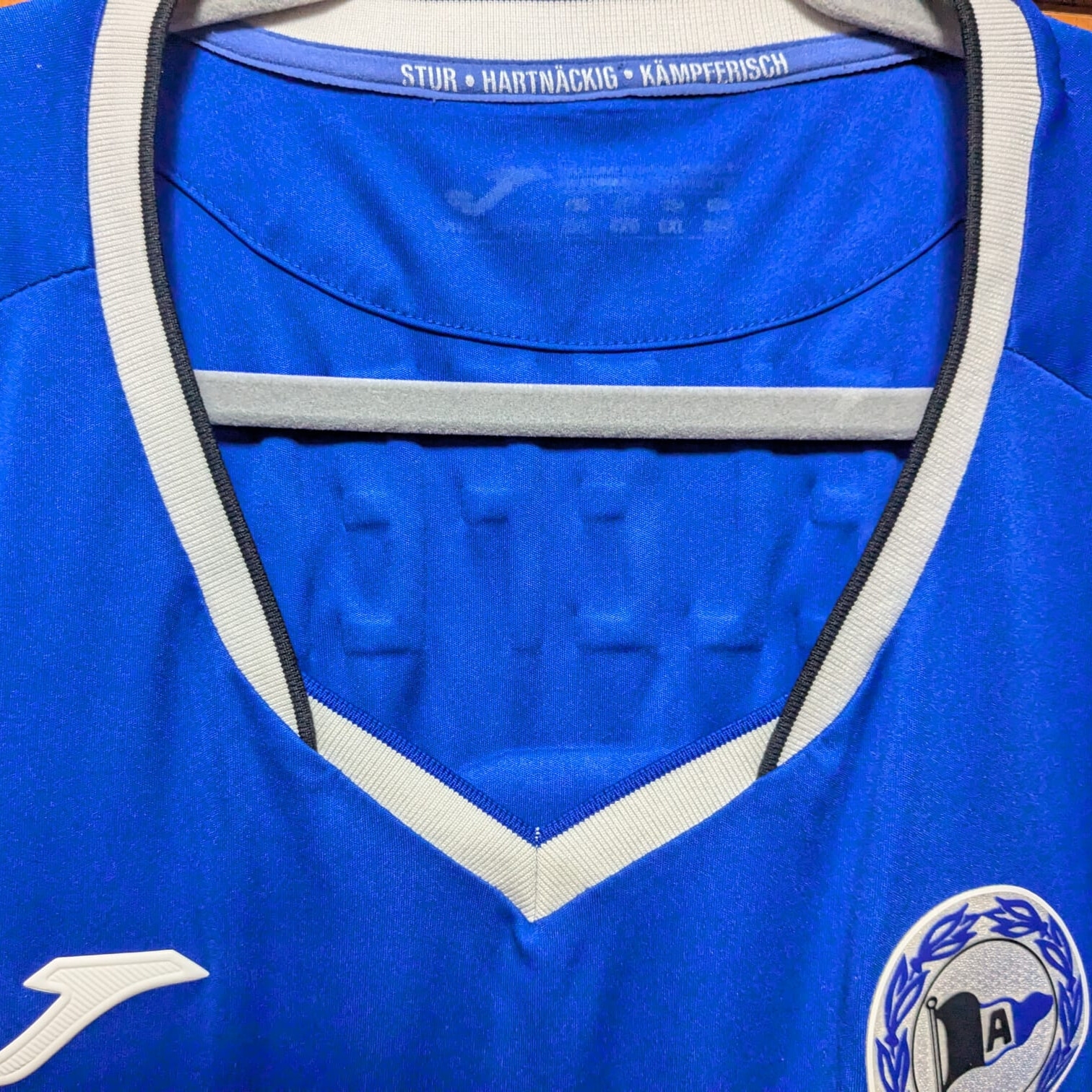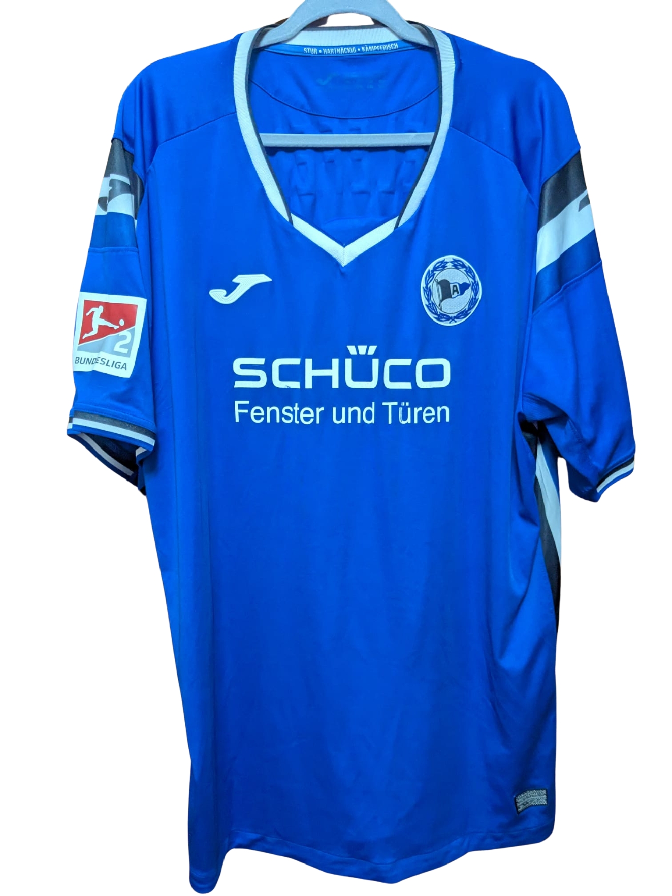 Primera equipación del Arminia Bielefeld en la temporada 2018 – 2019, en la que disputó la 2.Bundesliga. El equipo acabó 7º en liga y cayó en dieciseisavos de final de Copa ante el MSV Duisburg.