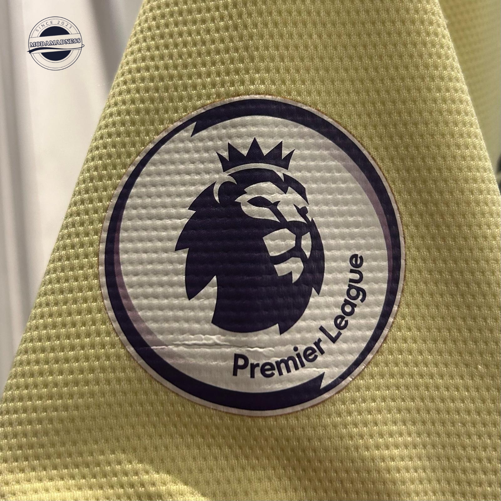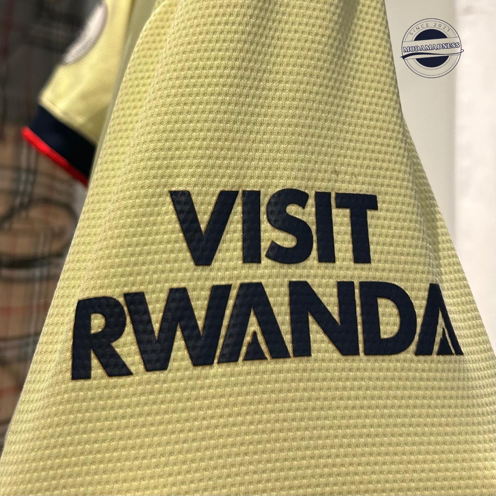 Camiseta visitante del Arsenal para la temporada 2021-2022, diseñada por Adidas. Presenta un diseño en color crema con detalles en negro y rojo, inspirado en equipaciones clásicas de los años 90. El equipo terminó la Premier League en 5ª posición, clasificándose para la Europa League, y alcanzó las semifinales de la EFL Cup antes de ser eliminado por el Liverpool.