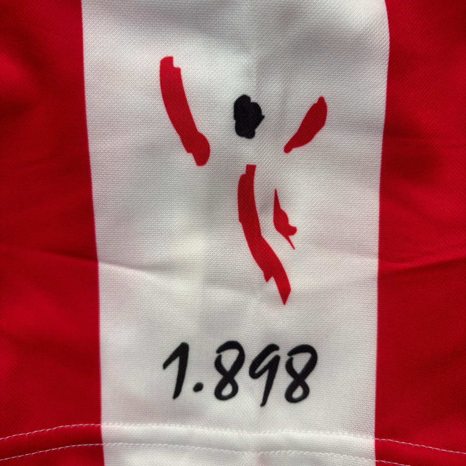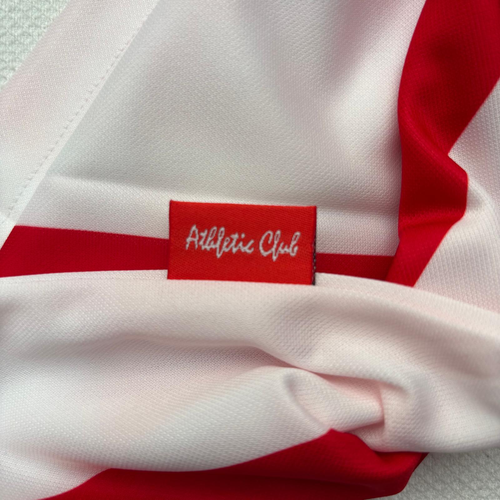La camiseta local del Athletic Club de la temporada 2008-2009, fabricada por el propio club, presenta las tradicionales franjas rojiblancas, un cuello polo blanco y el patrocinador Petronor. En esta temporada, el Athletic Club finalizó 13º en LaLiga y fue subcampeón de la Copa del Rey.