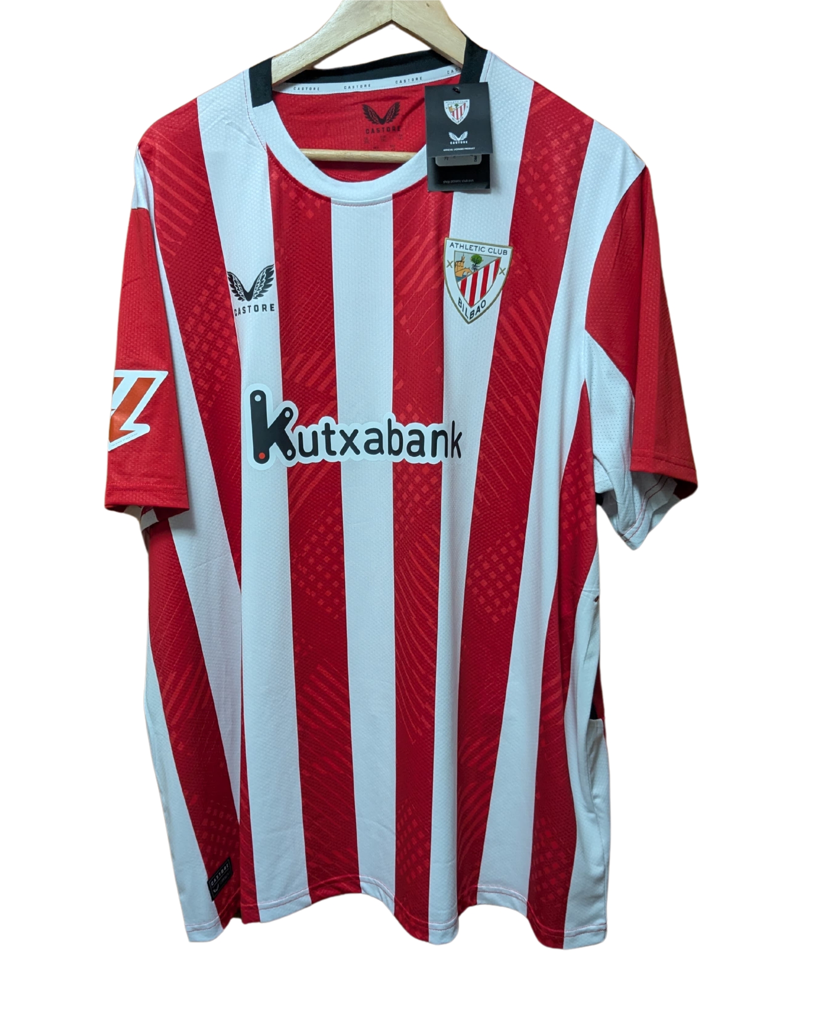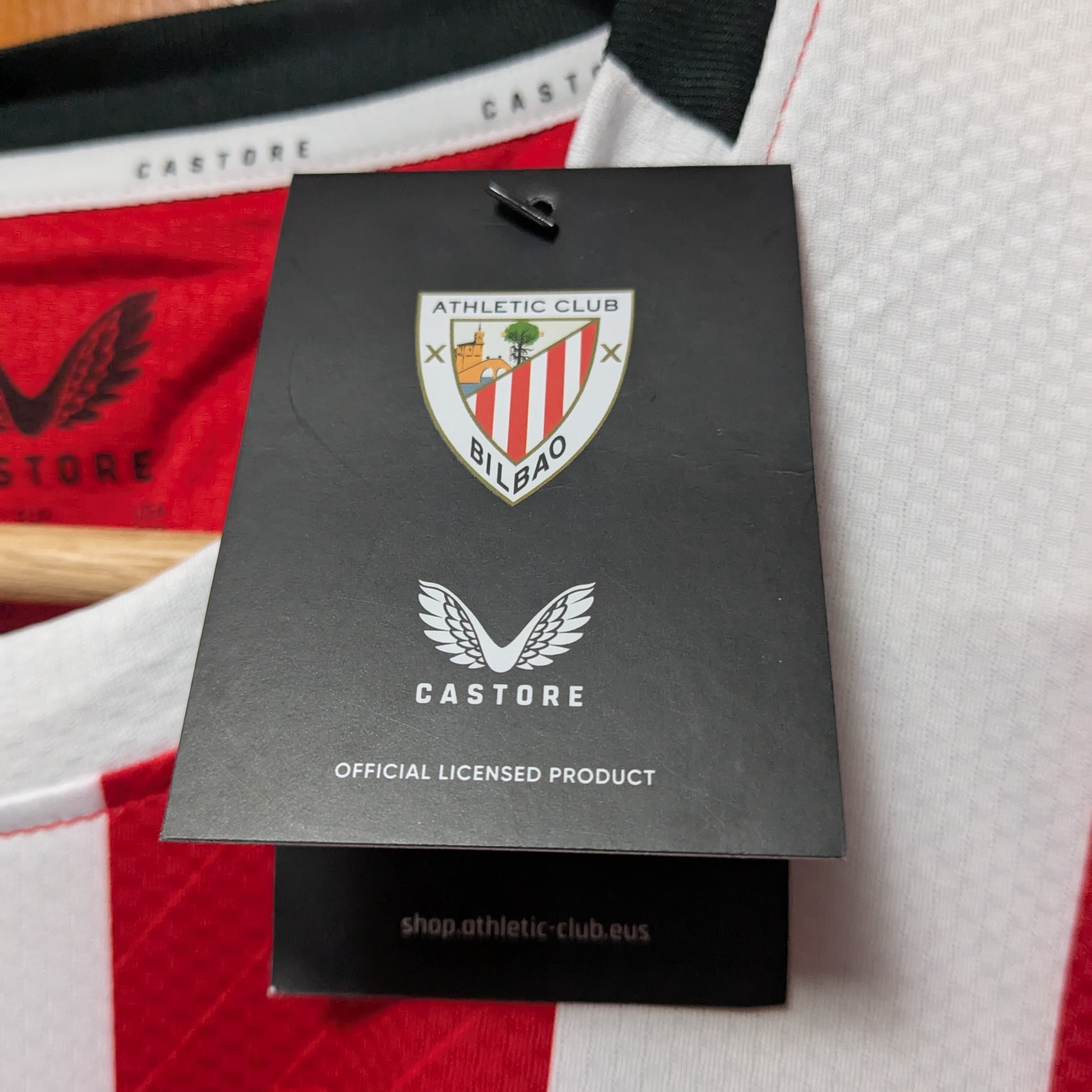Esta es la versión player version o PRO, como llama la marca Castore a esta línea de camisetas, de la primera equipación del Athletic Club en la temporada 2024 – 2025. En este caso, con el dorsal de Beñat Prados.