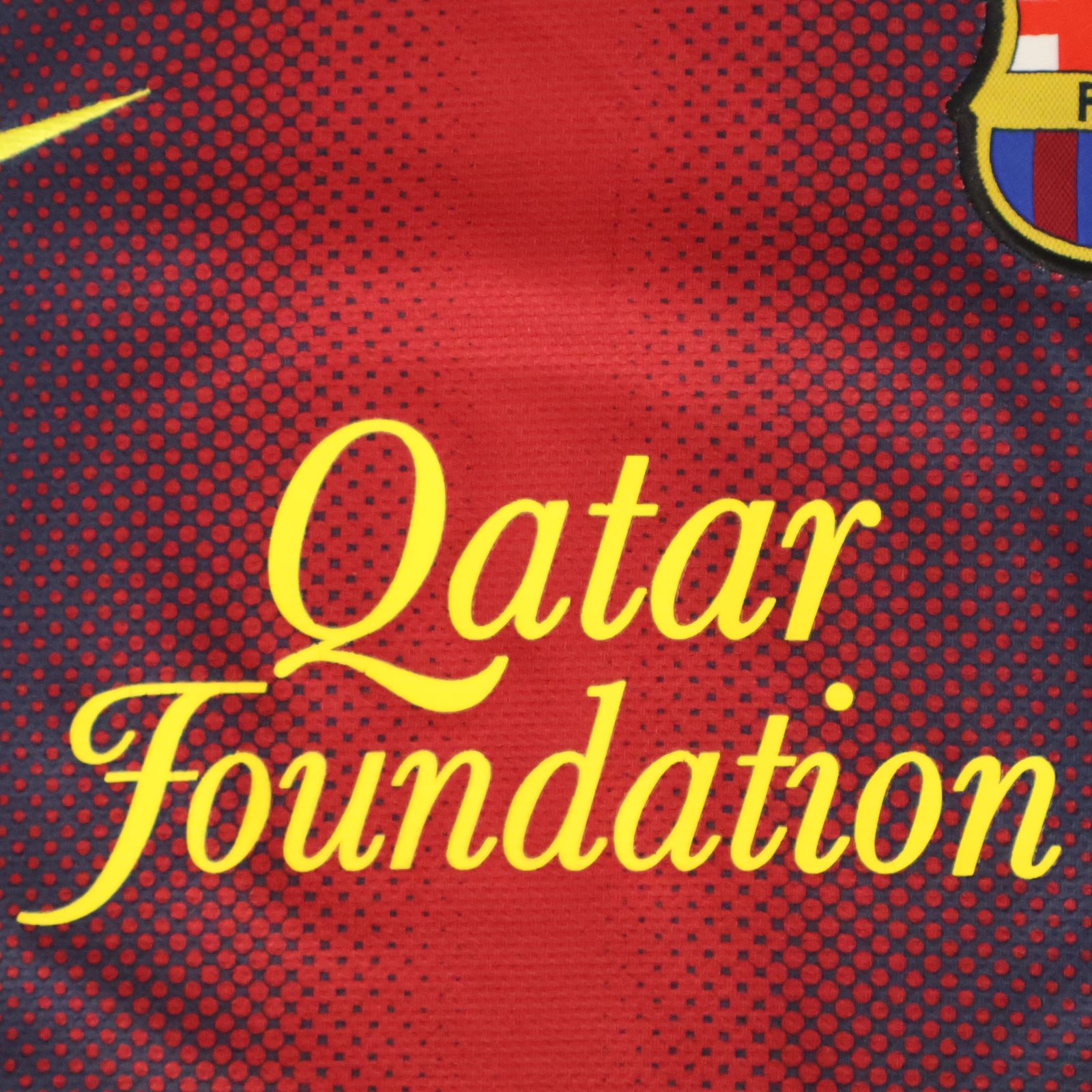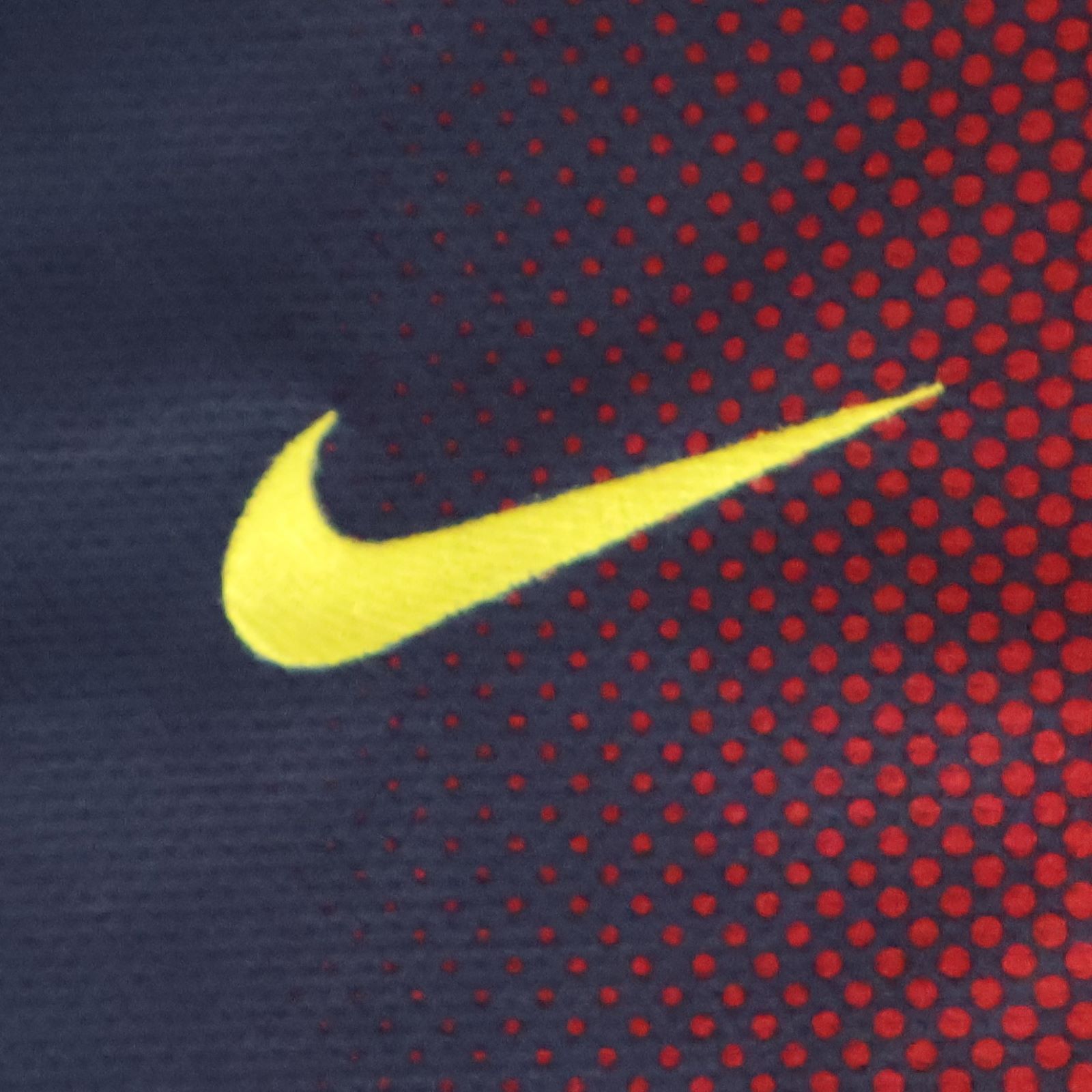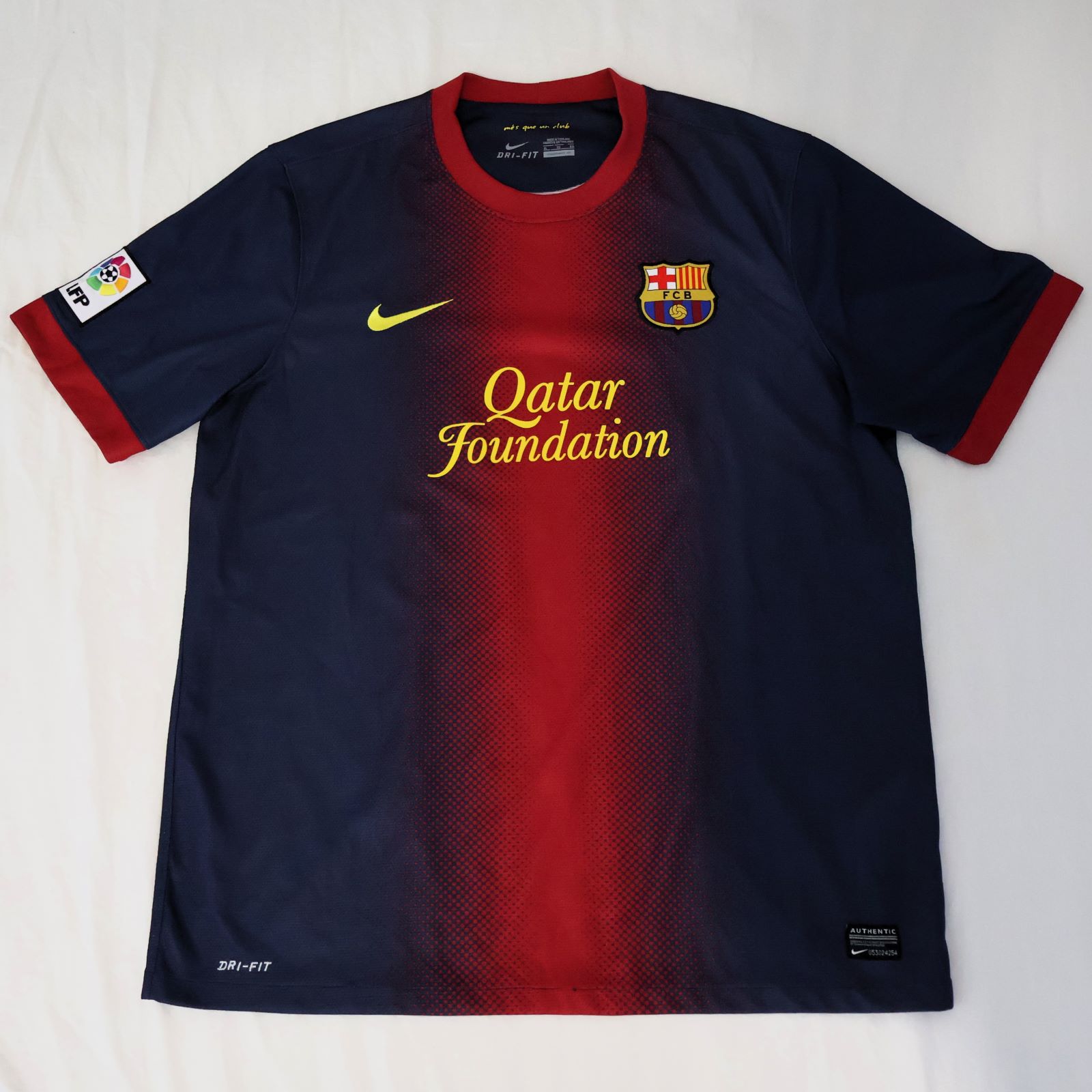 Esta es la primera equipación del Barcelona en la temporada 2012 – 2013, en su versión estadio o aficionado. La temporada se saldó con el triunfo en la Liga. Tanto en Copa del Rey como en Champions League alcanzó las semifinales.