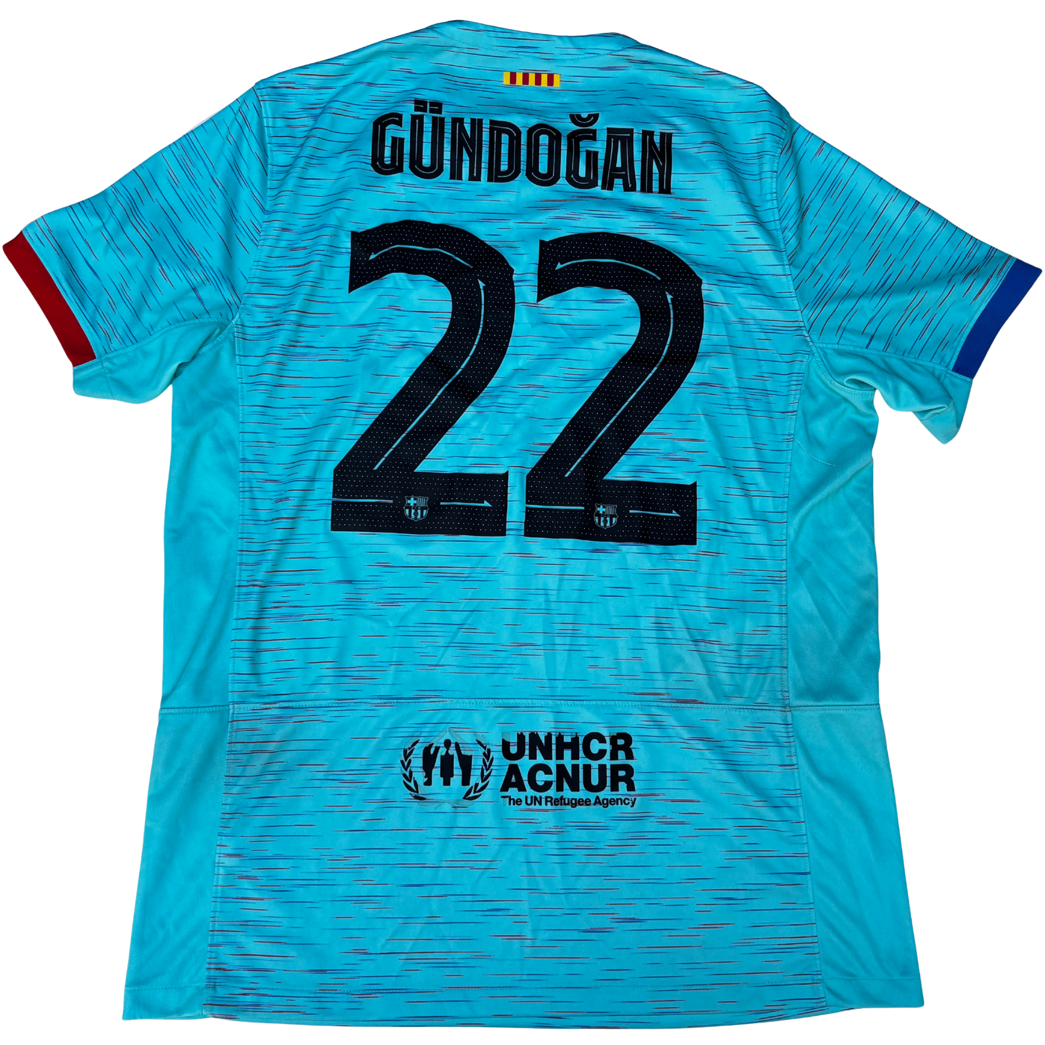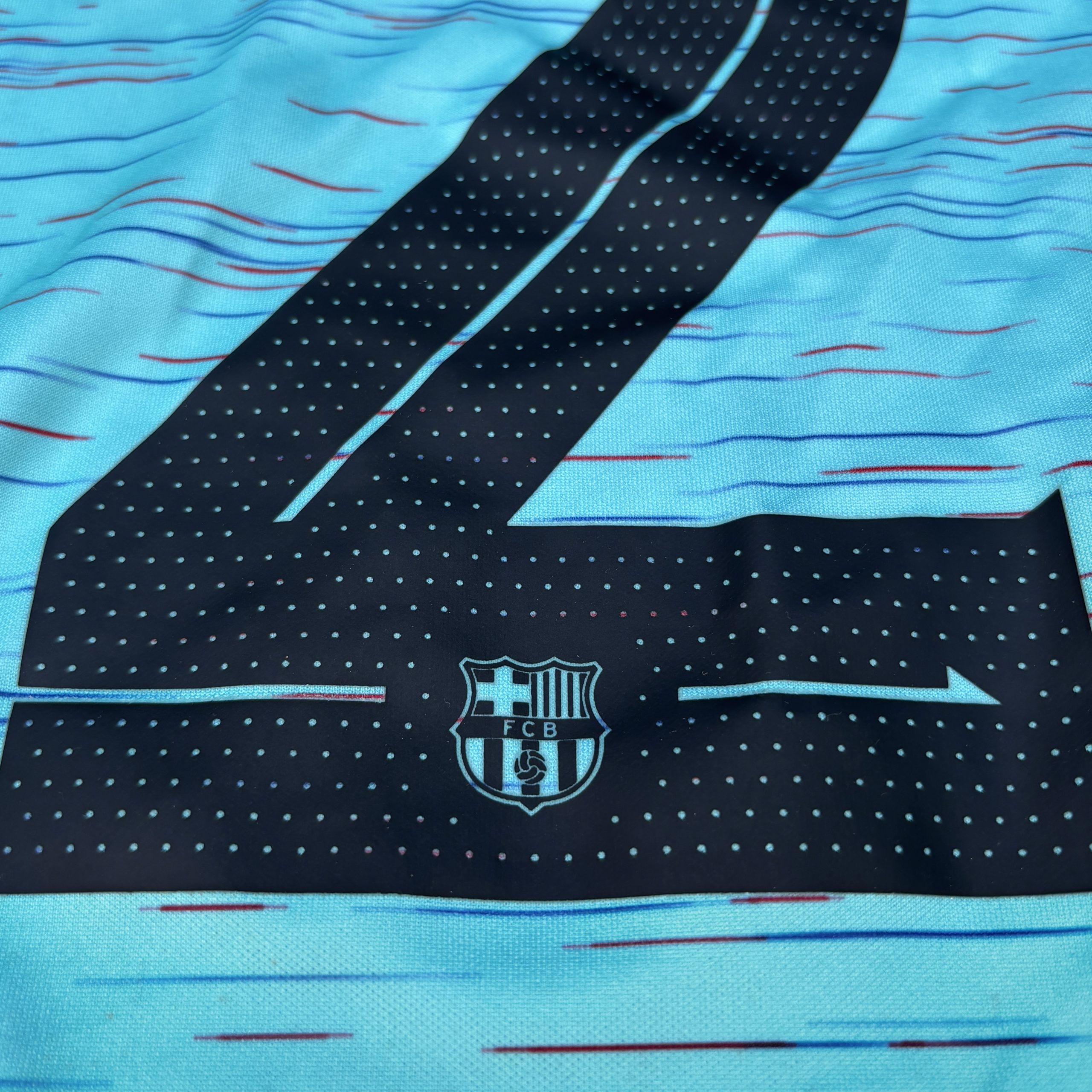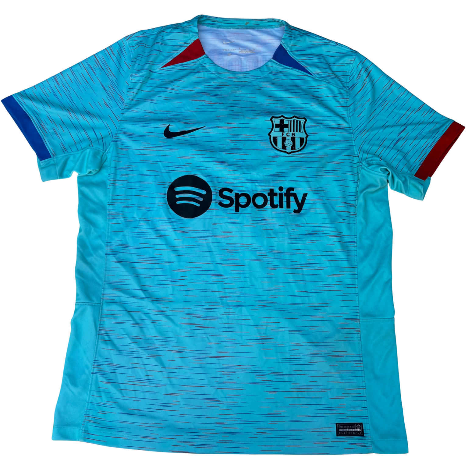 Esta es la tercera equipación del FC Barcelona en la temporada 2023 – 2024. Nike presentó este diseño en color turquesa con detalles blaugranas. En la parte deportiva, temporada sin títulos acabando segundo en liga.