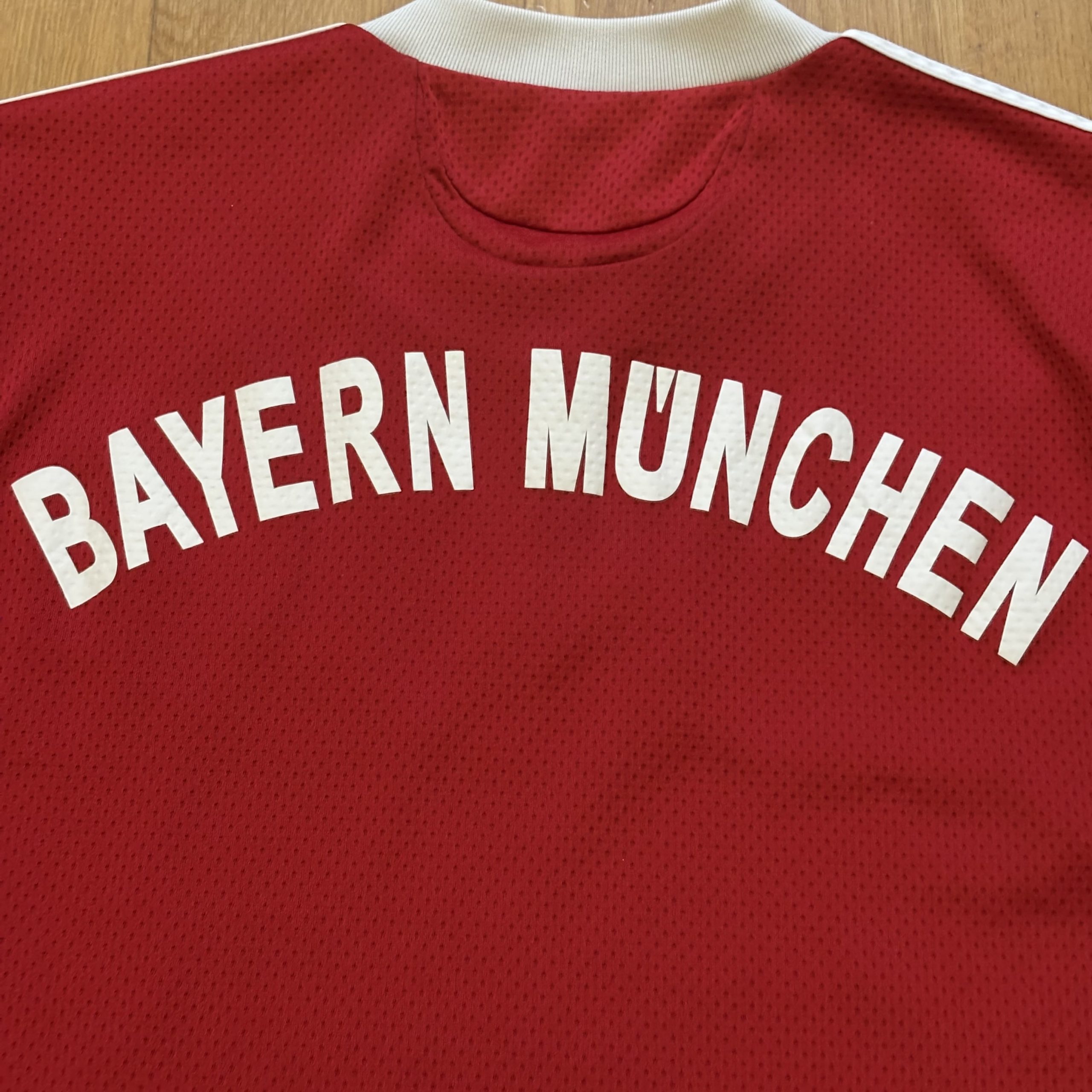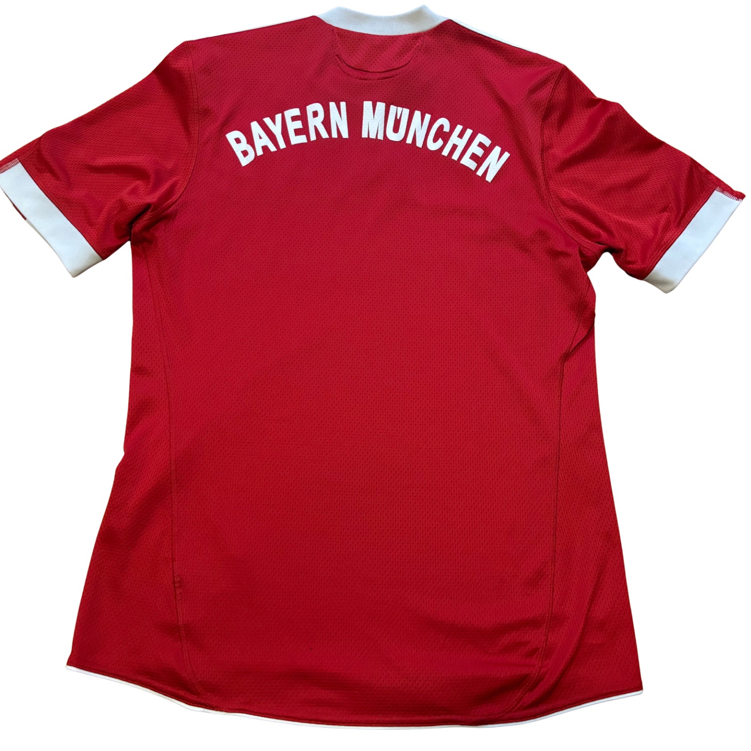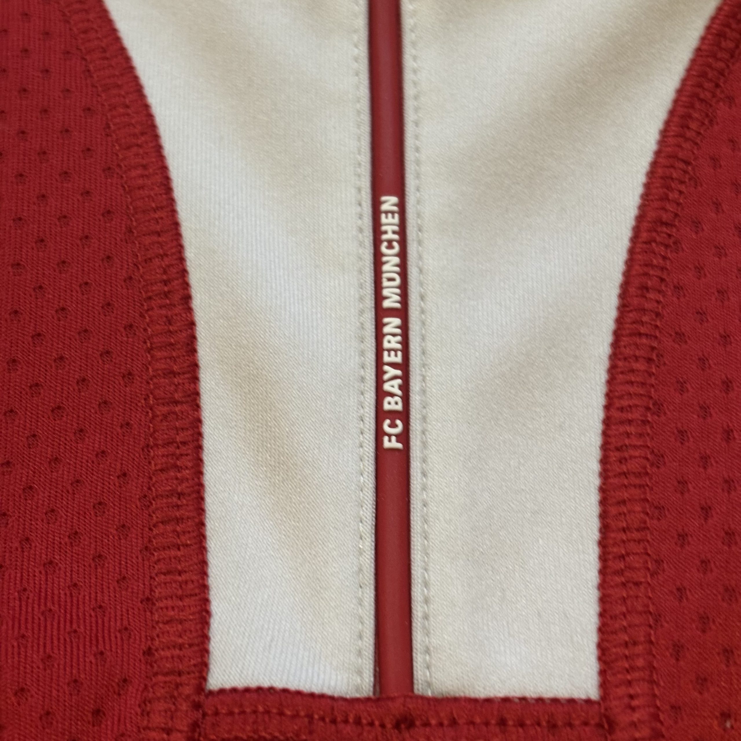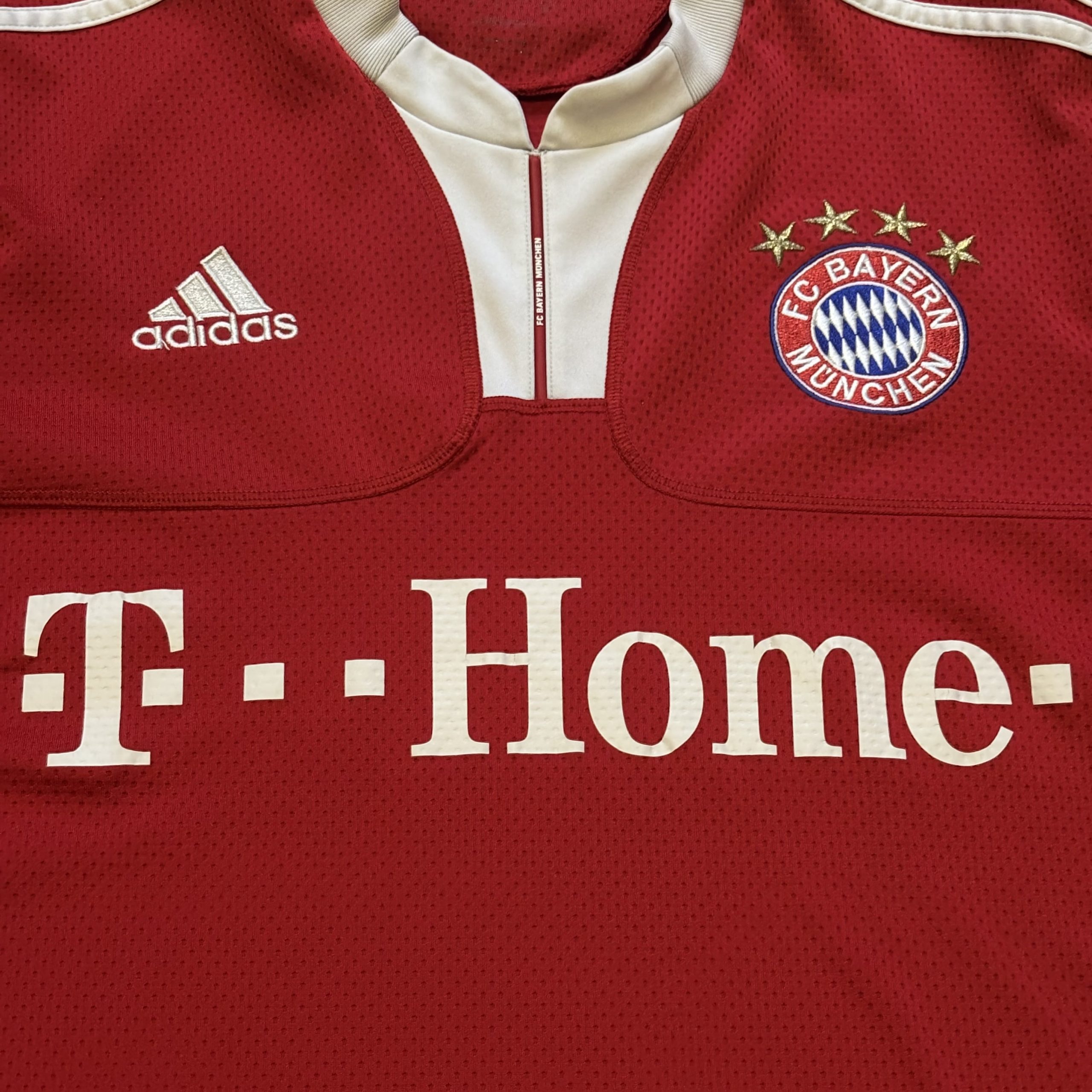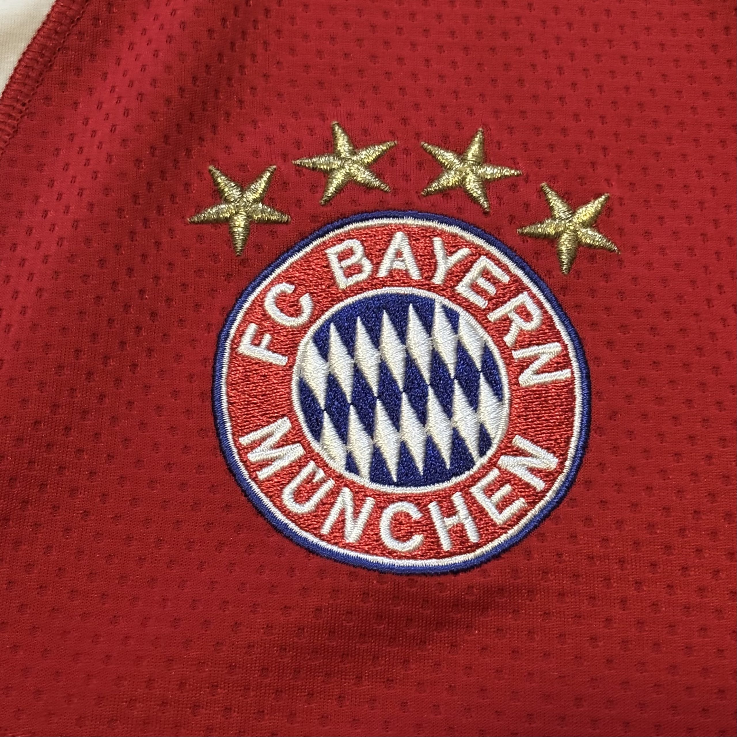 Camiseta local del Bayern Múnich para la temporada 2009-2010, fabricada por adidas en el clásico rojo del club y con cuello tipo polo en blanco, un diseño sobrio que marcó el regreso a una estética más tradicional. Con esta equipación, el Bayern firmó una de las campañas más sólidas de su historia reciente, logrando el doblete nacional en Alemania y alcanzando la final de la UEFA Champions League, consolidando un equipo dominante tanto a nivel doméstico como europeo.