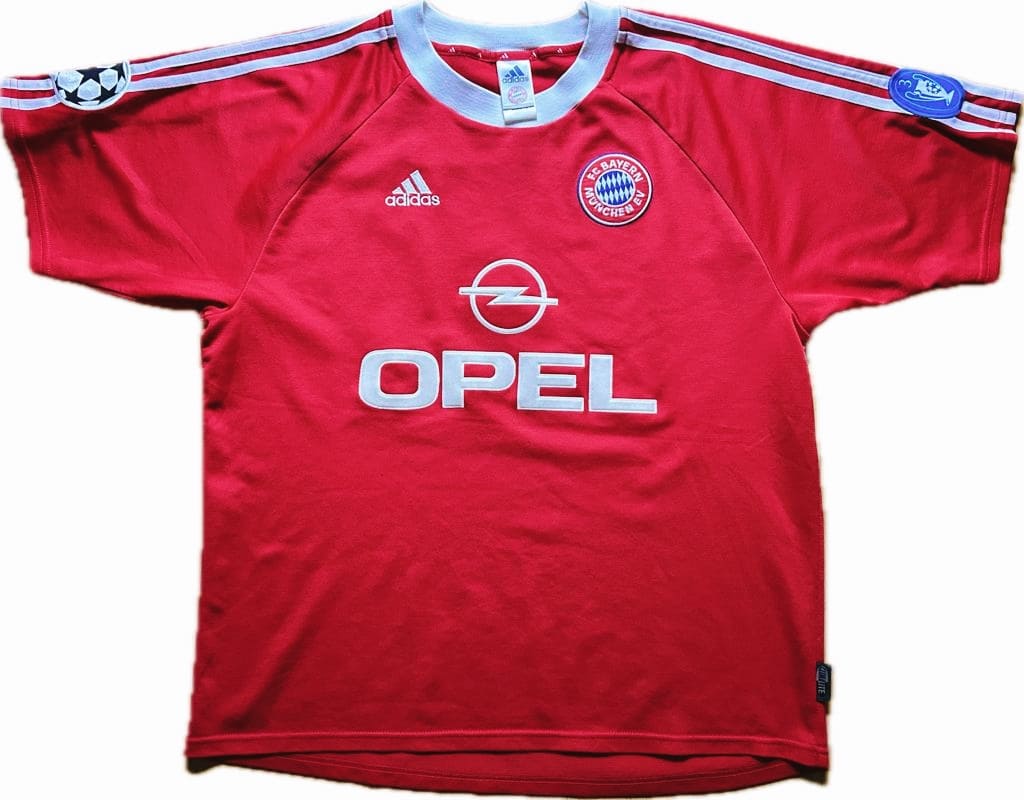 Esta camiseta fue utilizada por jugadores legendarios como Oliver Kahn, Stefan Effenberg y Giovane Élber en una temporada que culminó con el Bayern proclamándose campeón de Europa el 23 de mayo de 2001, tras vencer al Valencia en los penaltis.