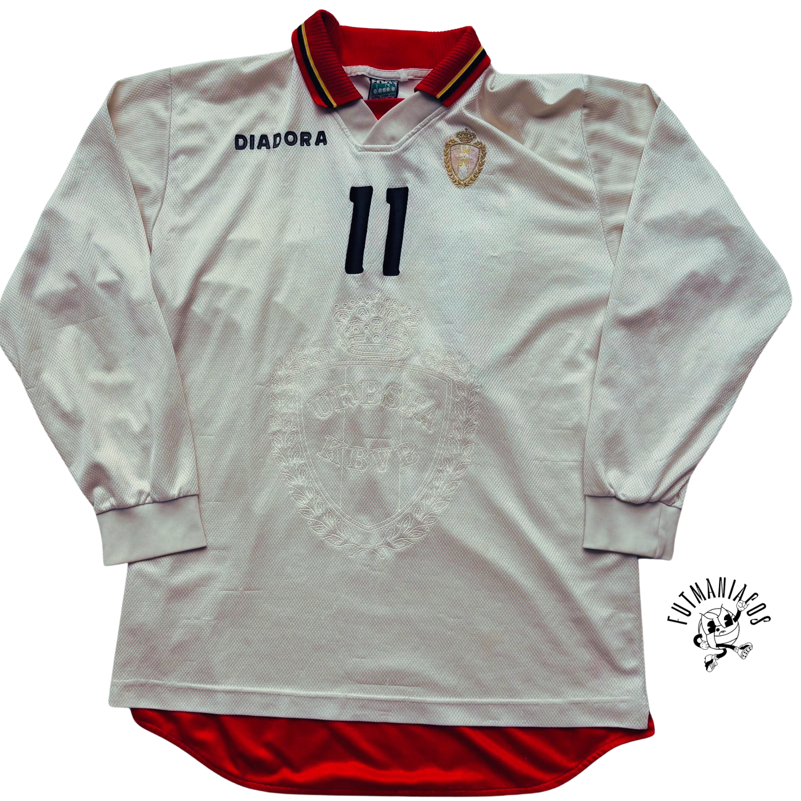 La selección de Bélgica utilizó esta camiseta como visitante en la temporada 1996. Diseñada por Diadora, presenta un elegante diseño en color blanco con detalles en relieve del escudo de la federación belga. Bélgica no logró clasificar para la Eurocopa 1996, quedando fuera del torneo continental.