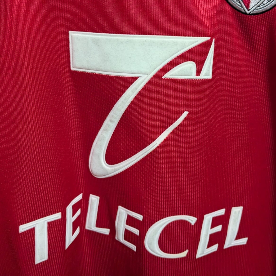 La camiseta local del Benfica en la temporada 1998-1999, fabricada por Adidas y patrocinada por Telecel, fue utilizada en una campaña en la que el equipo finalizó tercero en la Primeira Divisão de Portugal y participó en la Liga de Campeones de la UEFA, donde quedó eliminado en la fase de grupos tras enfrentarse a 1. FC Kaiserslautern, PSV Eindhoven y HJK Helsinki.