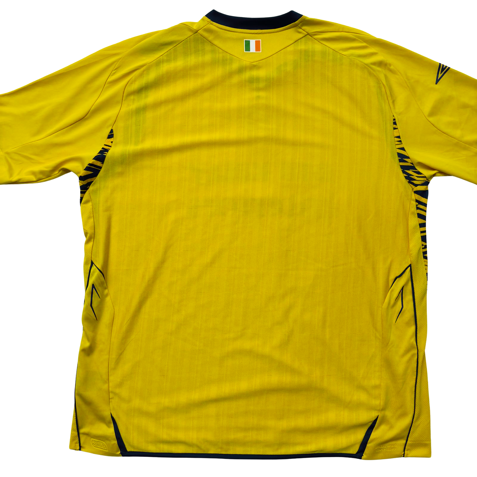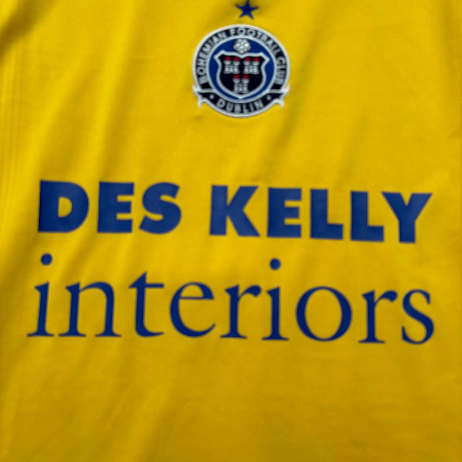 El Bohemian FC utilizó esta camiseta amarilla como segunda equipación durante la temporada 2008, y posteriormente como tercera camiseta hasta 2011. Fabricada por Umbro, destaca por su vibrante color amarillo con detalles azul marino y el clásico patrocinador Des Kelly Interiors al frente. En aquella temporada, el equipo logró el doblete nacional, ganando la League of Ireland Premier Division y la FAI Cup, además de participar en la Intertoto, donde fue eliminado en la primera ronda clasificatoria por el FK Riga (2-2 en el global).
