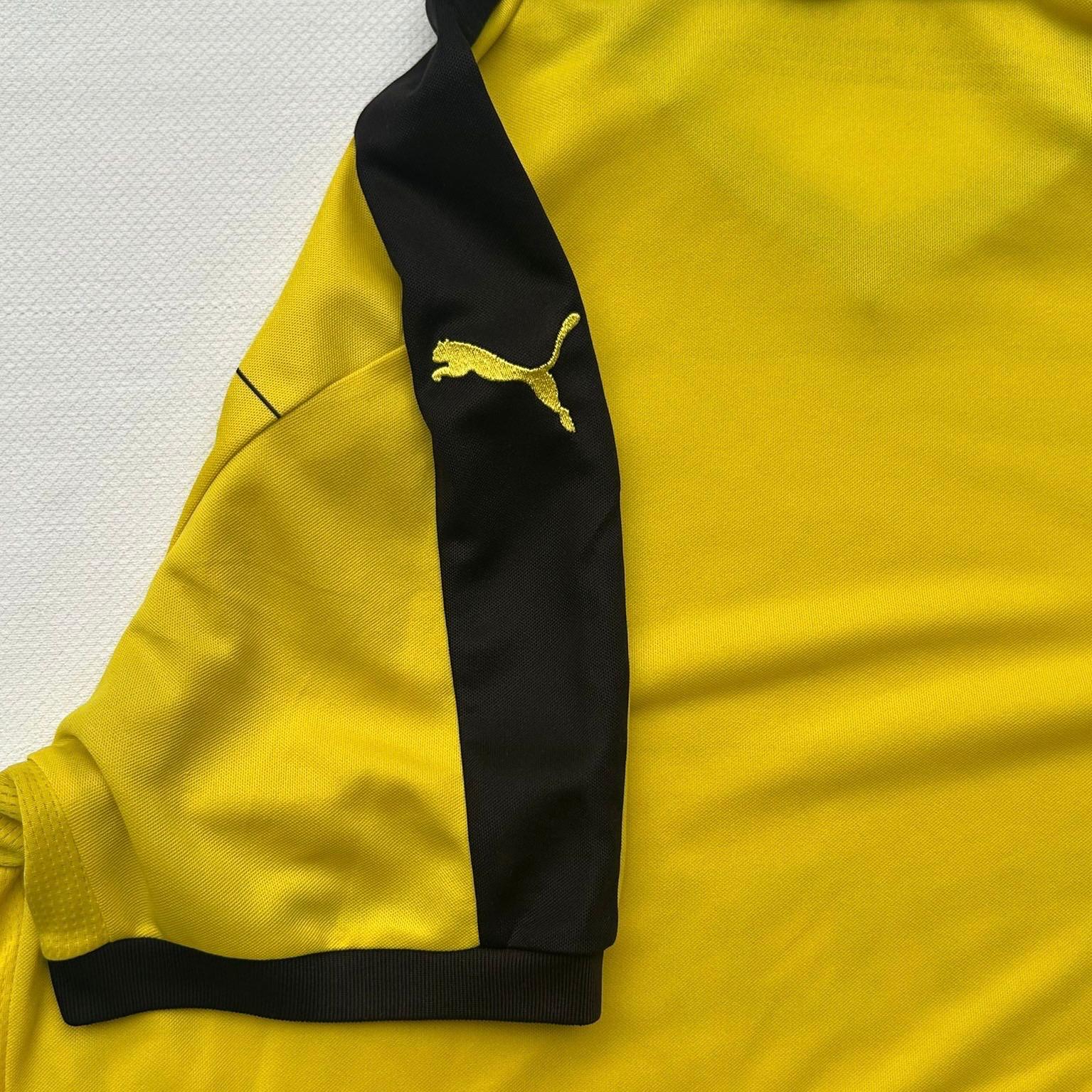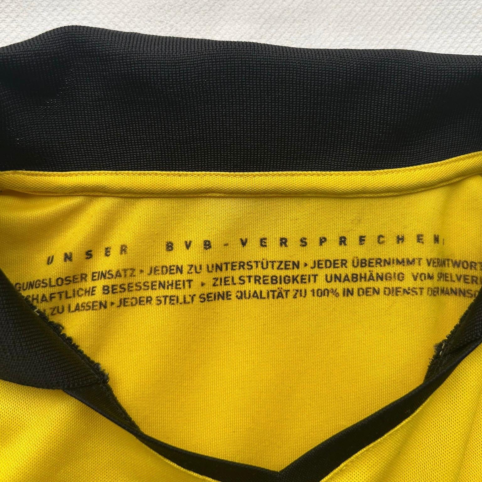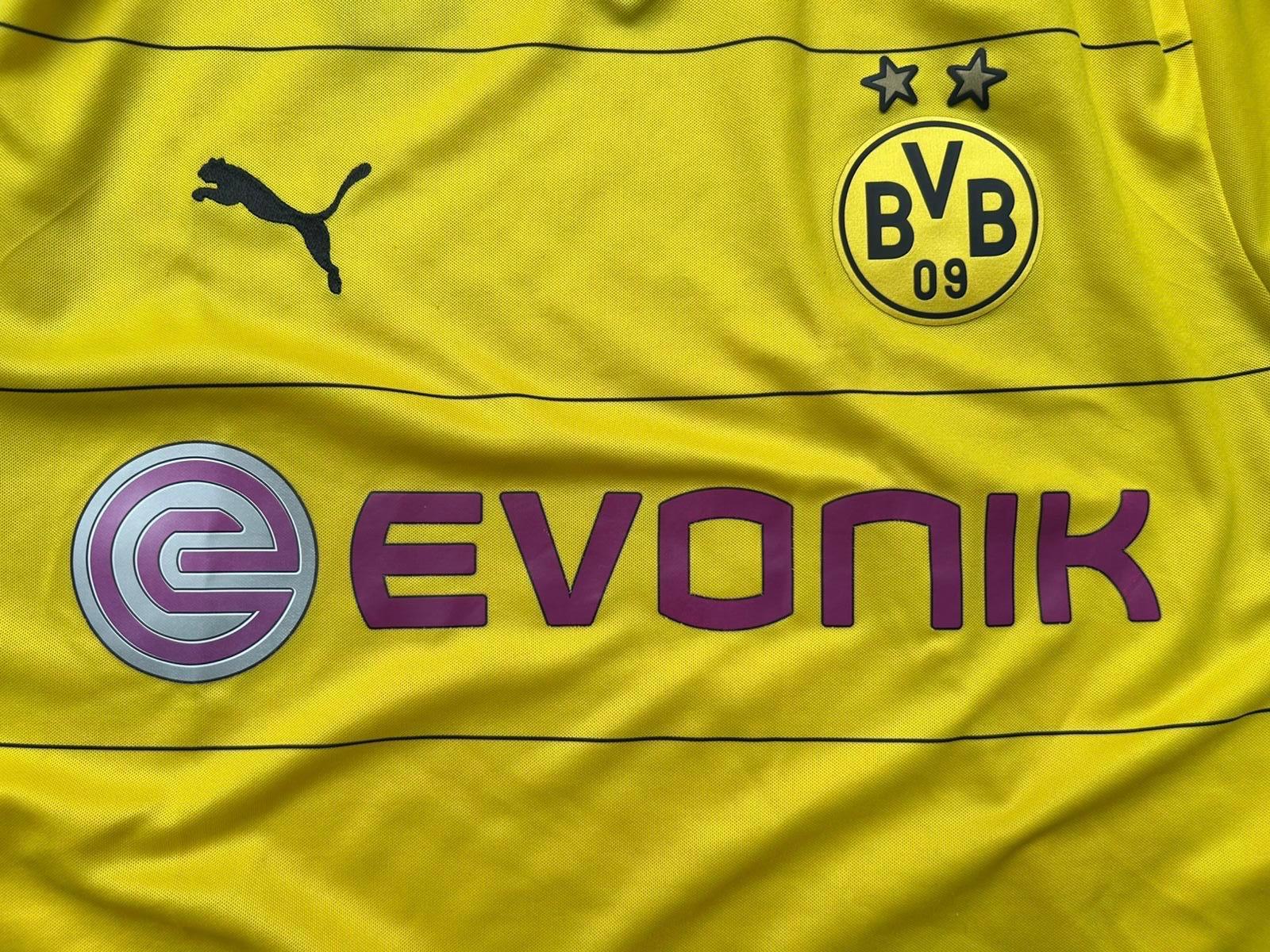El Borussia Dortmund vistió esta camiseta como local en la temporada 2015-16. Fabricada por Puma y patrocinada por Evonik, marcó el regreso de Thomas Tuchel al banquillo tras la etapa de Jürgen Klopp. El equipo tuvo una gran campaña en la Bundesliga, finalizando en la 2ª posición con 78 puntos, solo por detrás del Bayern Múnich. También llegó a la final de la DFB-Pokal, donde fue derrotado por el mismo rival en penales. En Europa, avanzó hasta los cuartos de final de la UEFA Europa League, siendo eliminado por el Liverpool.