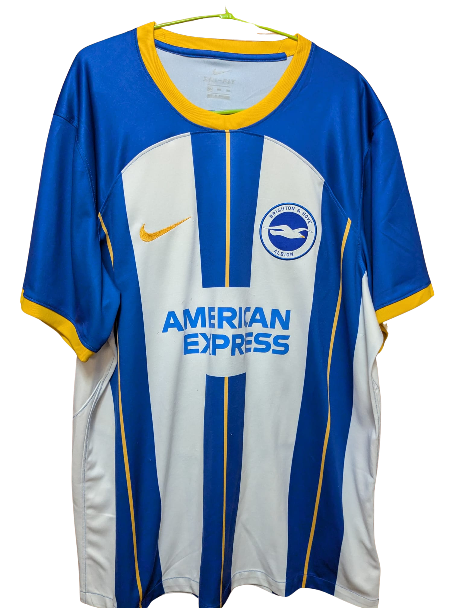 Camiseta a franjas verticales azules y blancas, con detalles en amarillo, utilizada por el Brighton & Hove Albion como primera equipación durante la temporada 2022–2023. Fabricada por Nike, acompañó al equipo en una de las campañas más memorables de su historia. El club finalizó 6.º en la Premier League, logrando por primera vez en su historia la clasificación para competiciones europeas. En la FA Cup alcanzó las semifinales y en la EFL Cup llegó hasta los octavos de final.