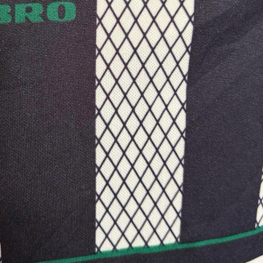 La segunda equipación del Celtic de las temporadas 1994-1995 y 1995-1996, de la marca Umbro, es de color negro con franjas verticales blancas y negras, cuello polo y el patrocinador CR Smith. Durante este periodo, el Celtic ganó la Copa de Escocia en 1995, finalizó 4º y 2º en la Scottish Premier Division, y fue eliminado en la segunda  ronda de la Recopa en la 95/96.