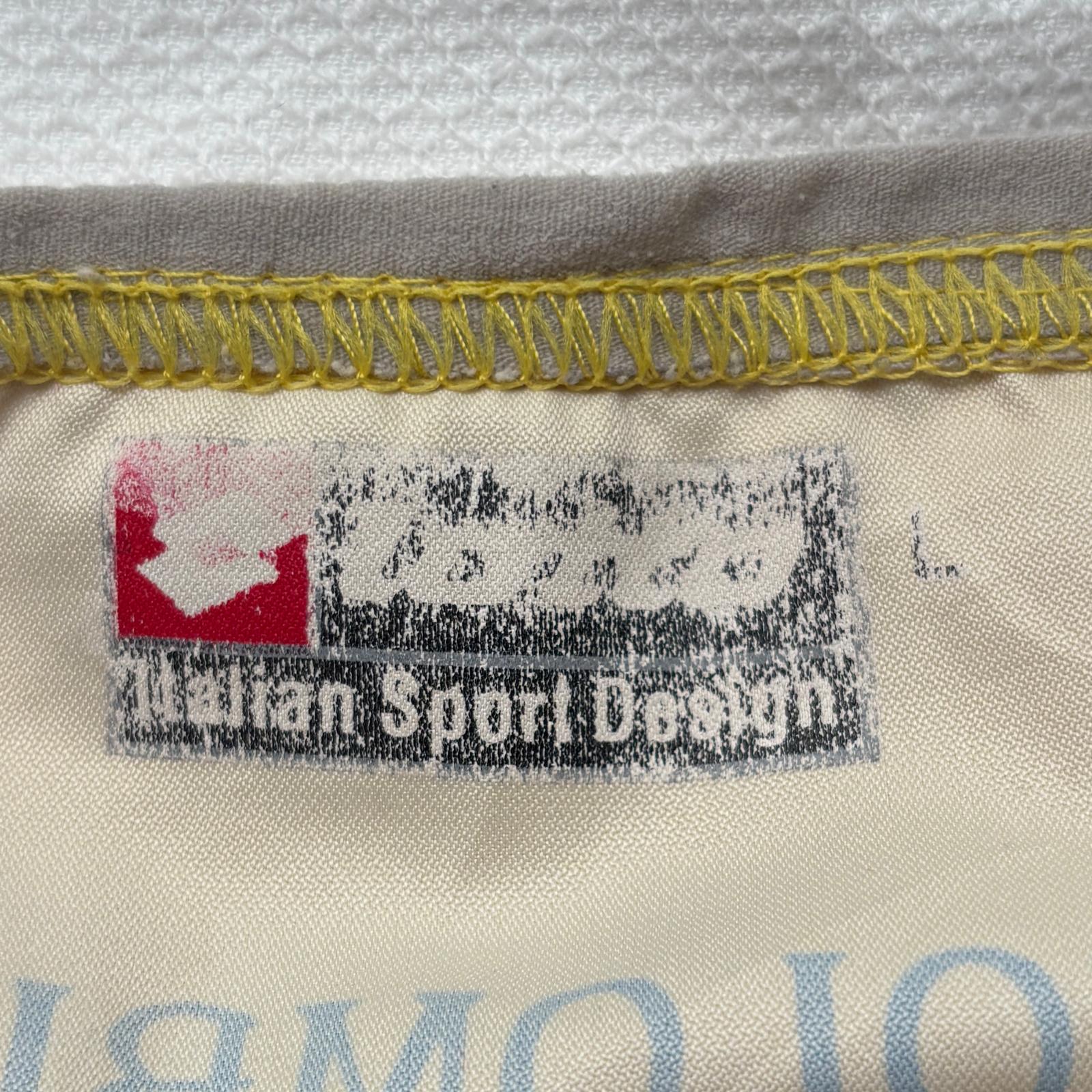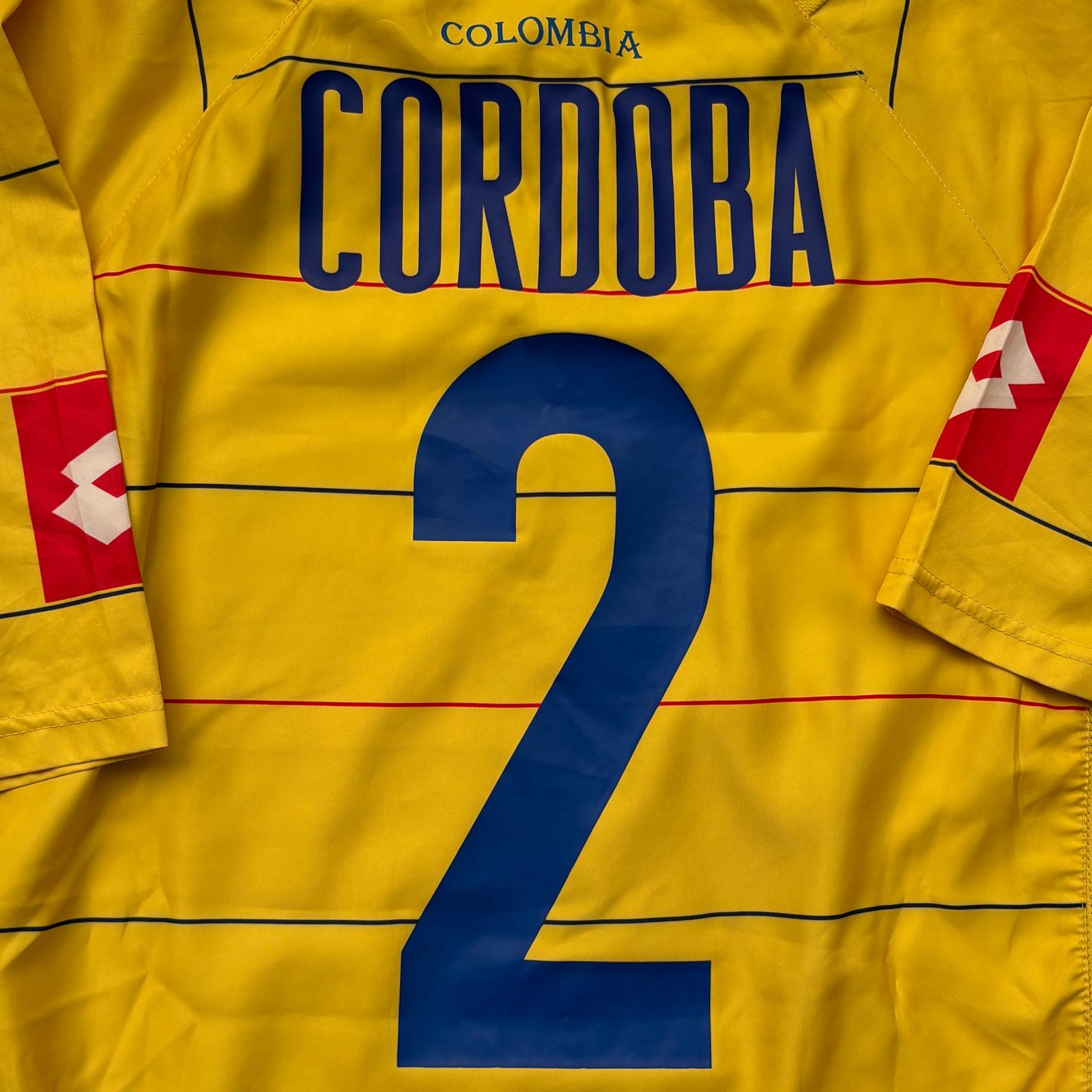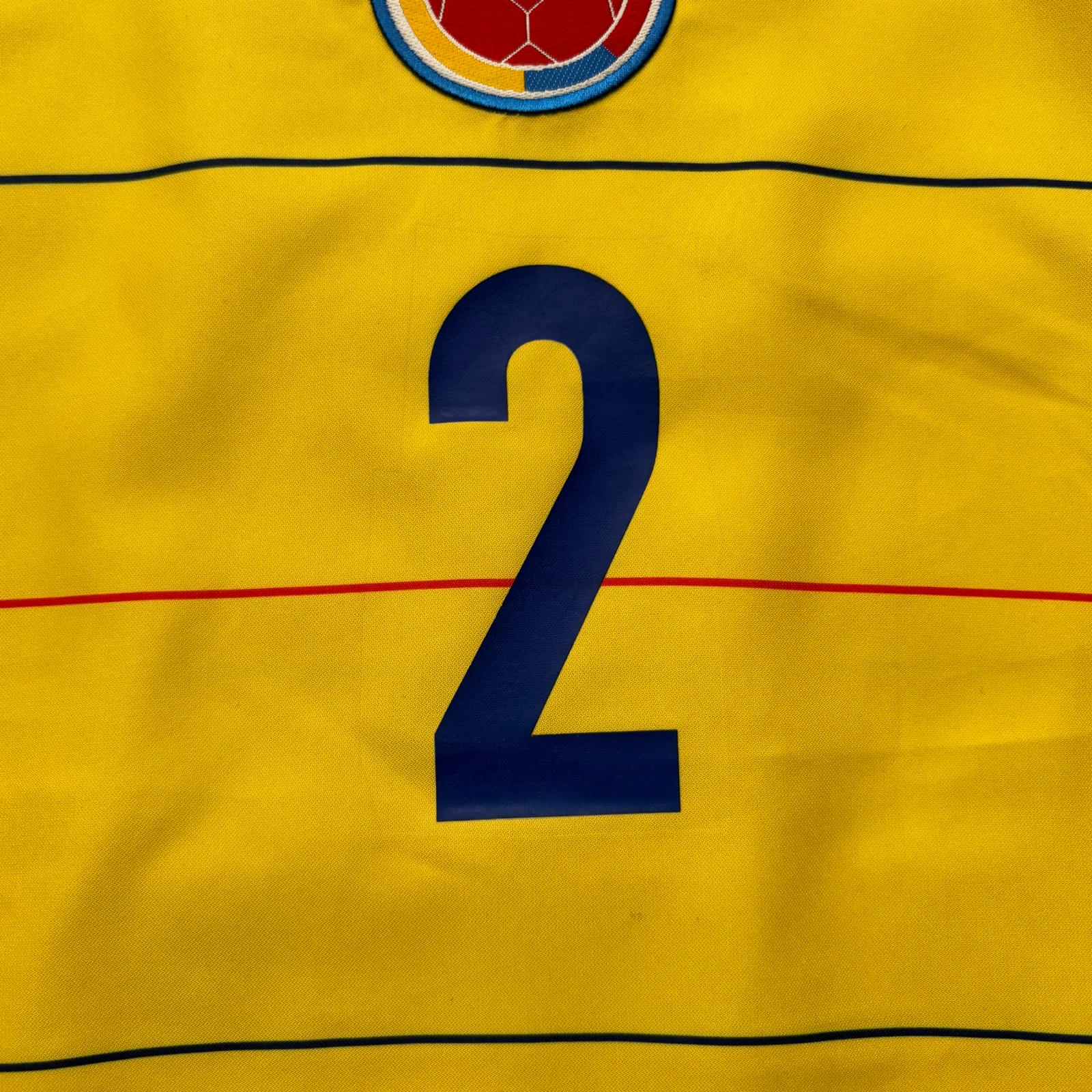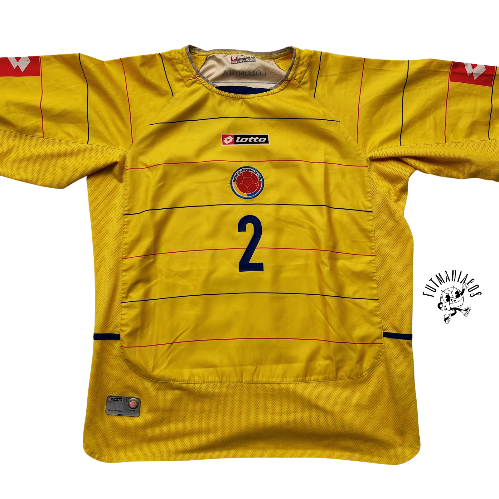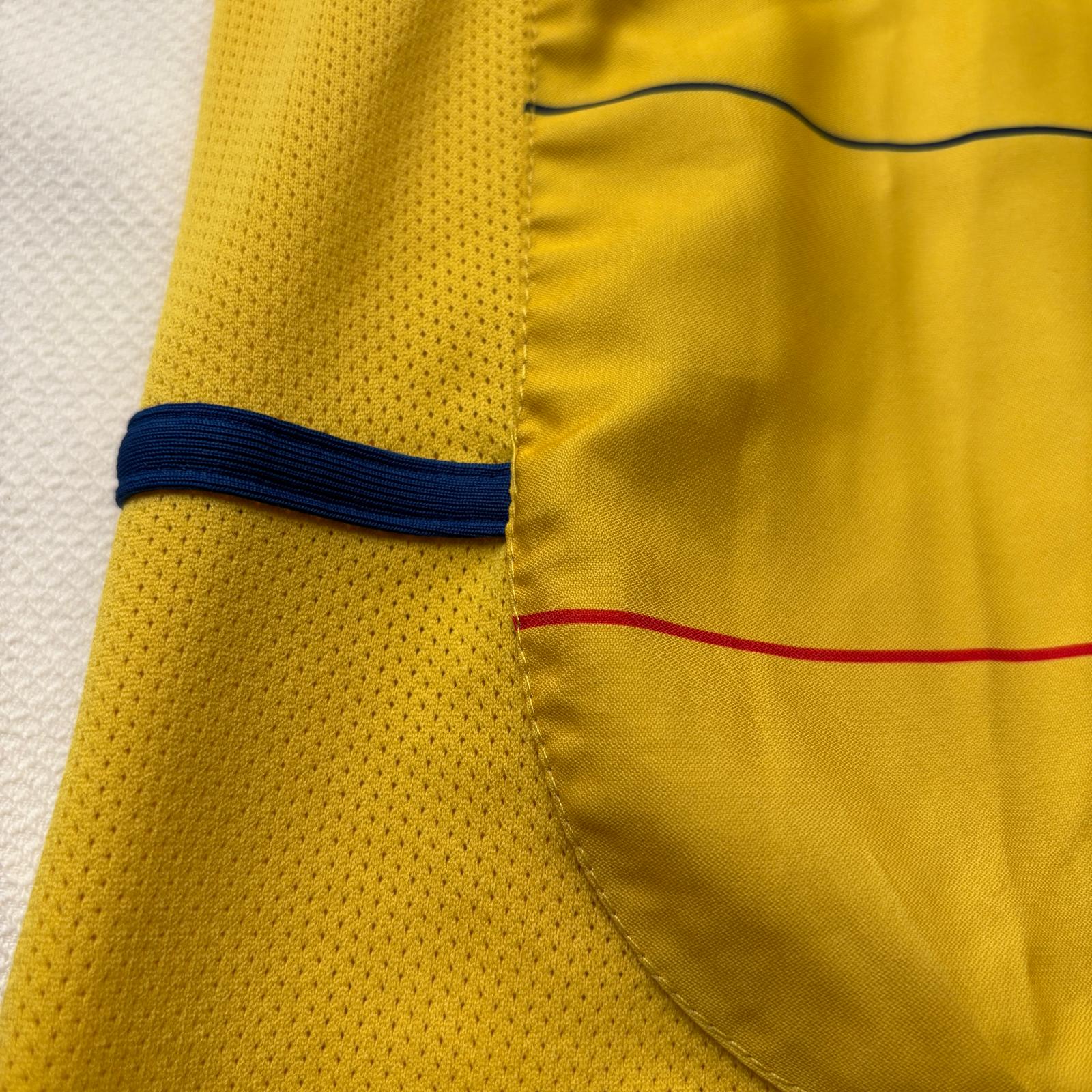 La camiseta de la primera equipación (local) de la selección nacional de Colombia del año 2004, de la marca Lotto, es de color amarillo con líneas horizontales y detalles azules y rojos. Fue utilizada en la Copa América 2004 (finalizó 4º) y en la fase de clasificación para el Mundial 2006 (no clasificó).