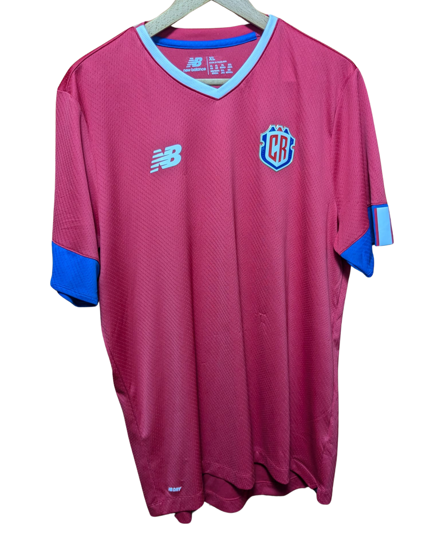 Camiseta roja con detalles en blanco y azul, fabricada por New Balance como primera equipación de la selección de Costa Rica para la Copa Mundial de la FIFA Catar 2022. Fue utilizada durante la fase de grupos, en la que el equipo quedó eliminado tras enfrentarse a España, Japón y Alemania.