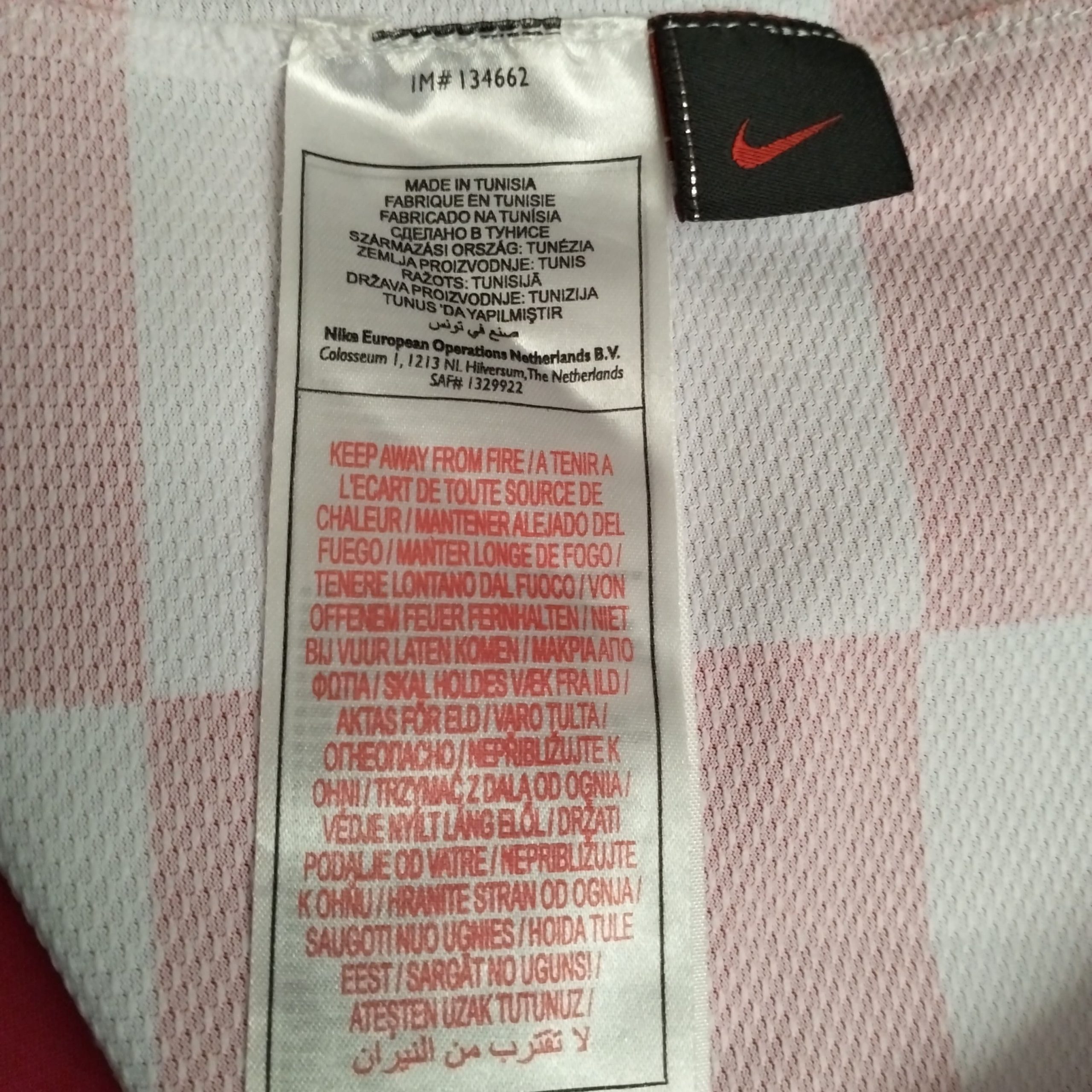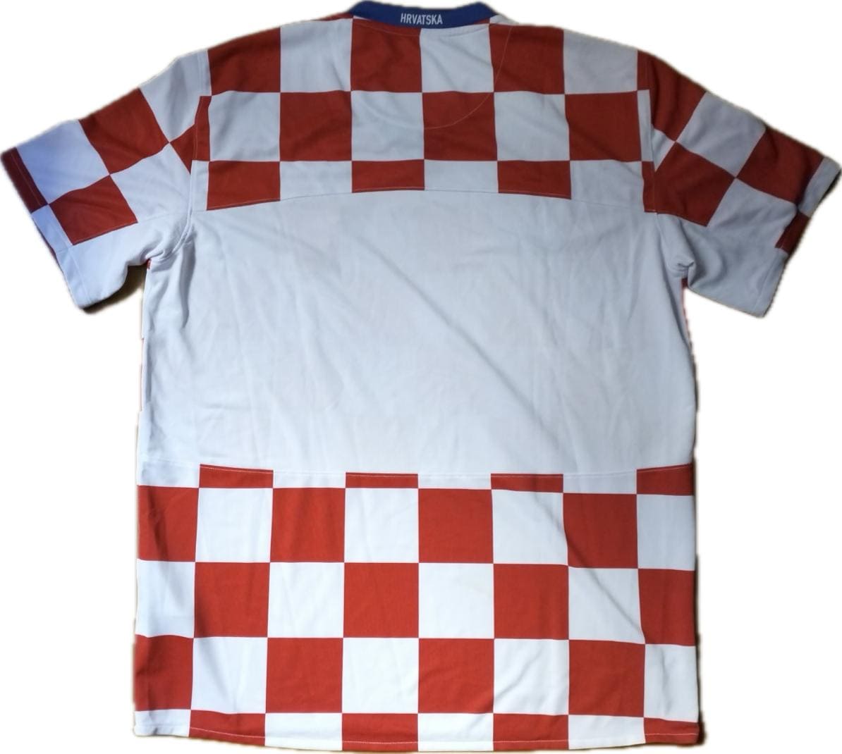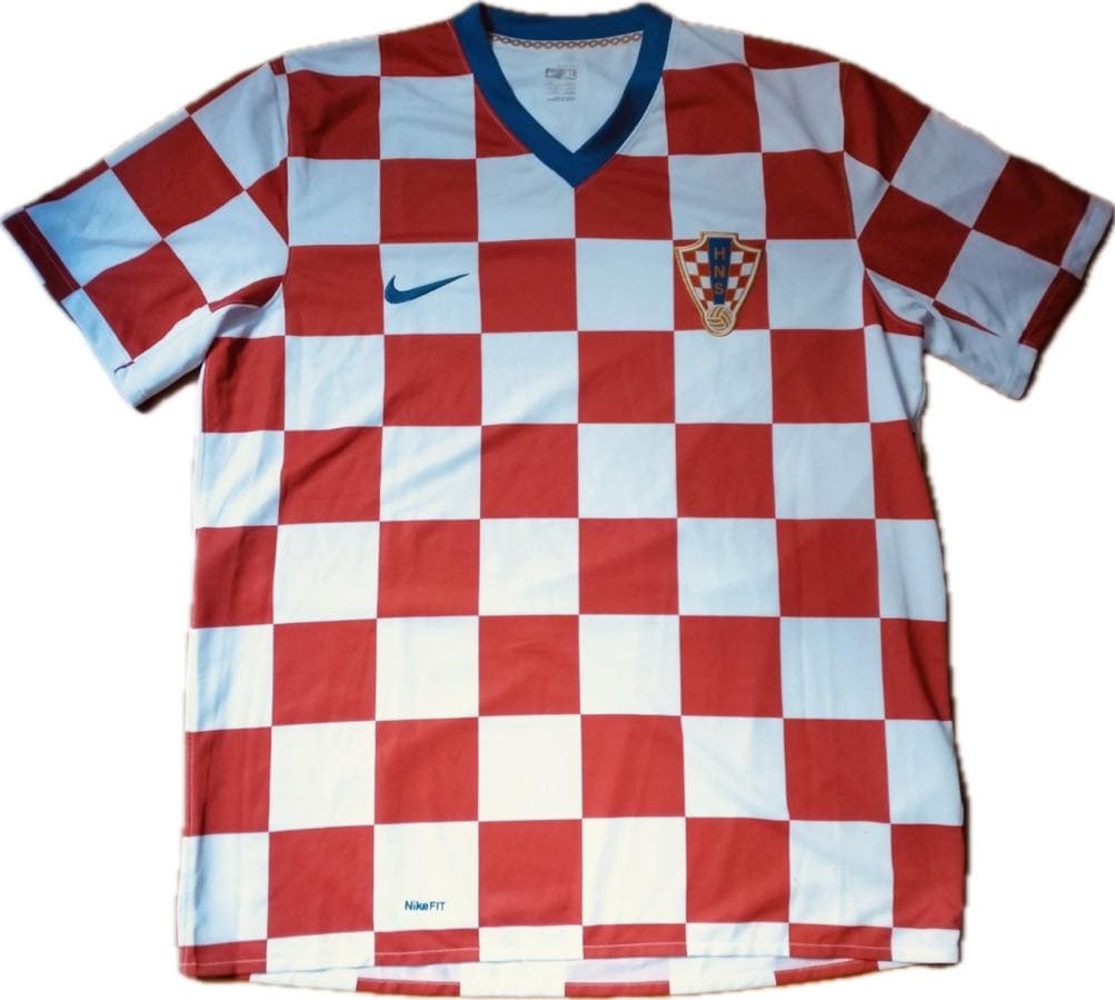 Esta equipación fue utilizada en la Eurocopa 2008, torneo en el que Croacia alcanzó los cuartos de final, siendo eliminada por Turquía en una dramática tanda de penaltis. El escudo bordado de la HNS aparece en el pecho izquierdo, mientras que el logo de Nike, en azul, se sitúa a la derecha. El cuello en V incorpora detalles azules que contrastan con el diseño principal.
