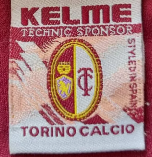 El Torino, que inicialmente vistió Kelme con una etiqueta genérica en la 96-97, obtuvo su propia etiqueta personalizada desde la 97-98 hasta la 00-01. Esta etiqueta destaca por la inclusión de un emblema ovalado distintivo del club junto al logo de Kelme. Textos como «Torino Calcio» y «Kelme Technic Sponsor» son característicos. También incluye la indicación «Styled in Spain», lo que sugiere una línea de diseño compartida con algunas variantes del Real Madrid.