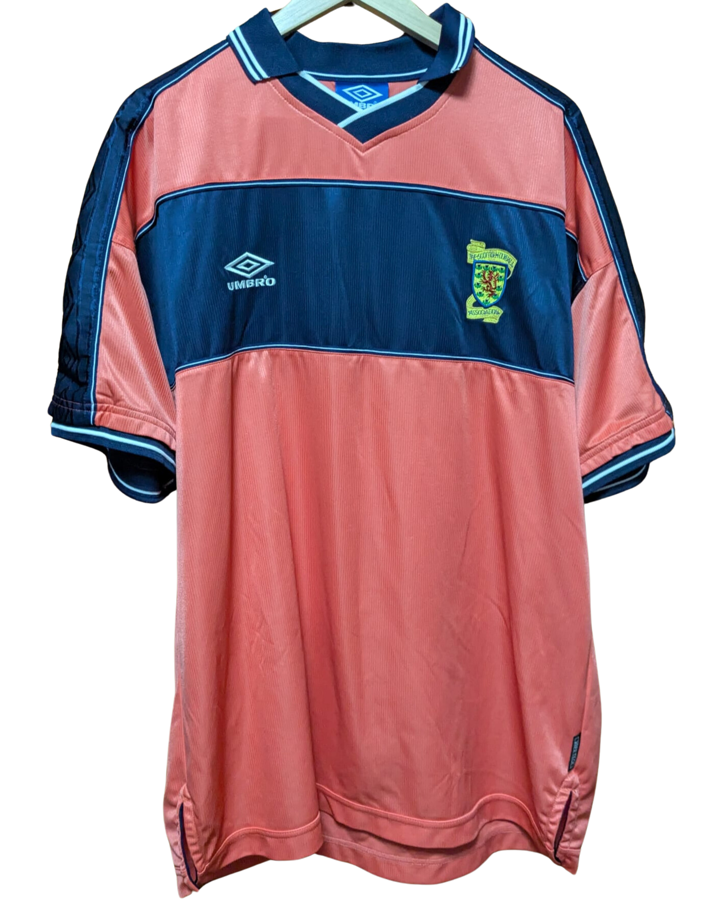 La selección de Escocia utilizó esta camiseta como visitante durante 1999, fabricada por Umbro. Aunque no fue usada en ninguna fase final de torneo, estuvo presente en varios encuentros de la fase de clasificación para la Euro 2000, donde Escocia quedó segunda de grupo pero fue eliminada en la repesca por Inglaterra, quedándose fuera del torneo continental.