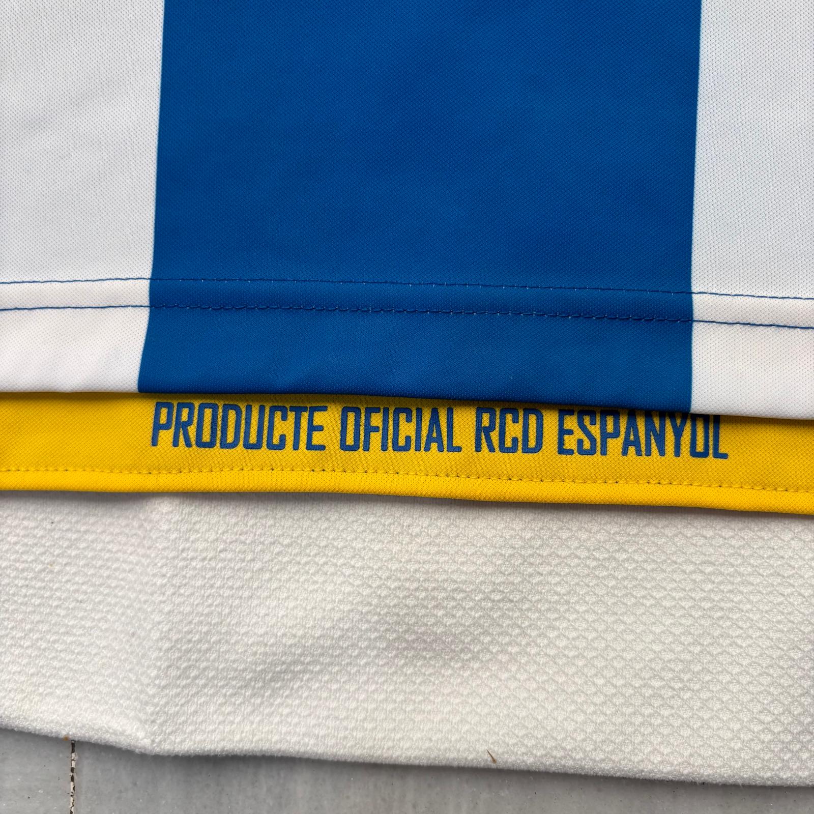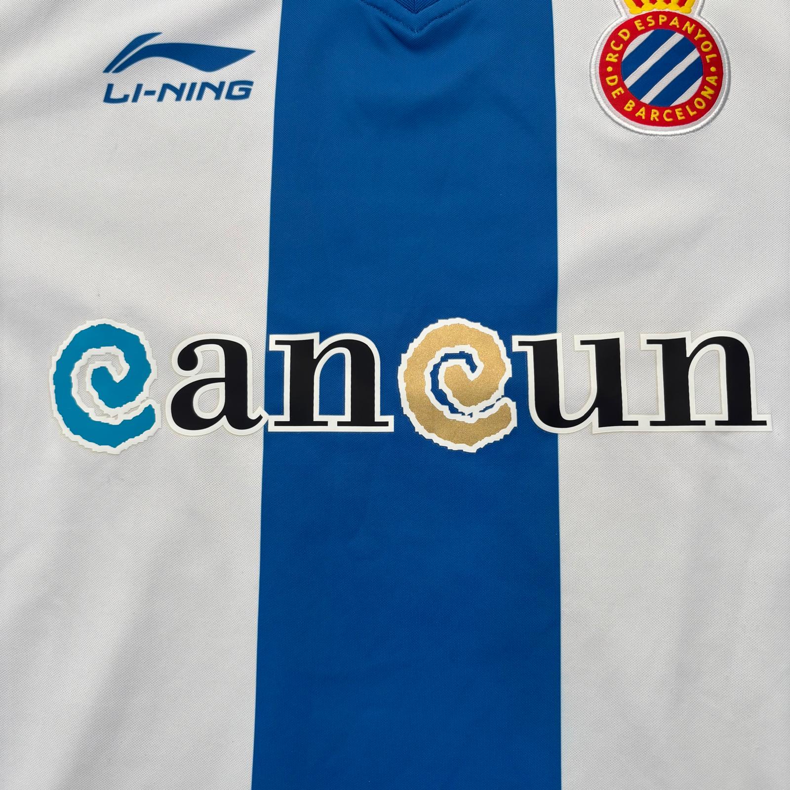 El Espanyol utilizó esta camiseta como equipación principal durante la temporada 2011-12. Fabricada por Li-Ning, presenta el tradicional diseño blanquiazul con detalles en amarillo y el patrocinio de Cancún al frente. El equipo finalizó 14.º en LaLiga y alcanzó los cuartos de final en la Copa del Rey.