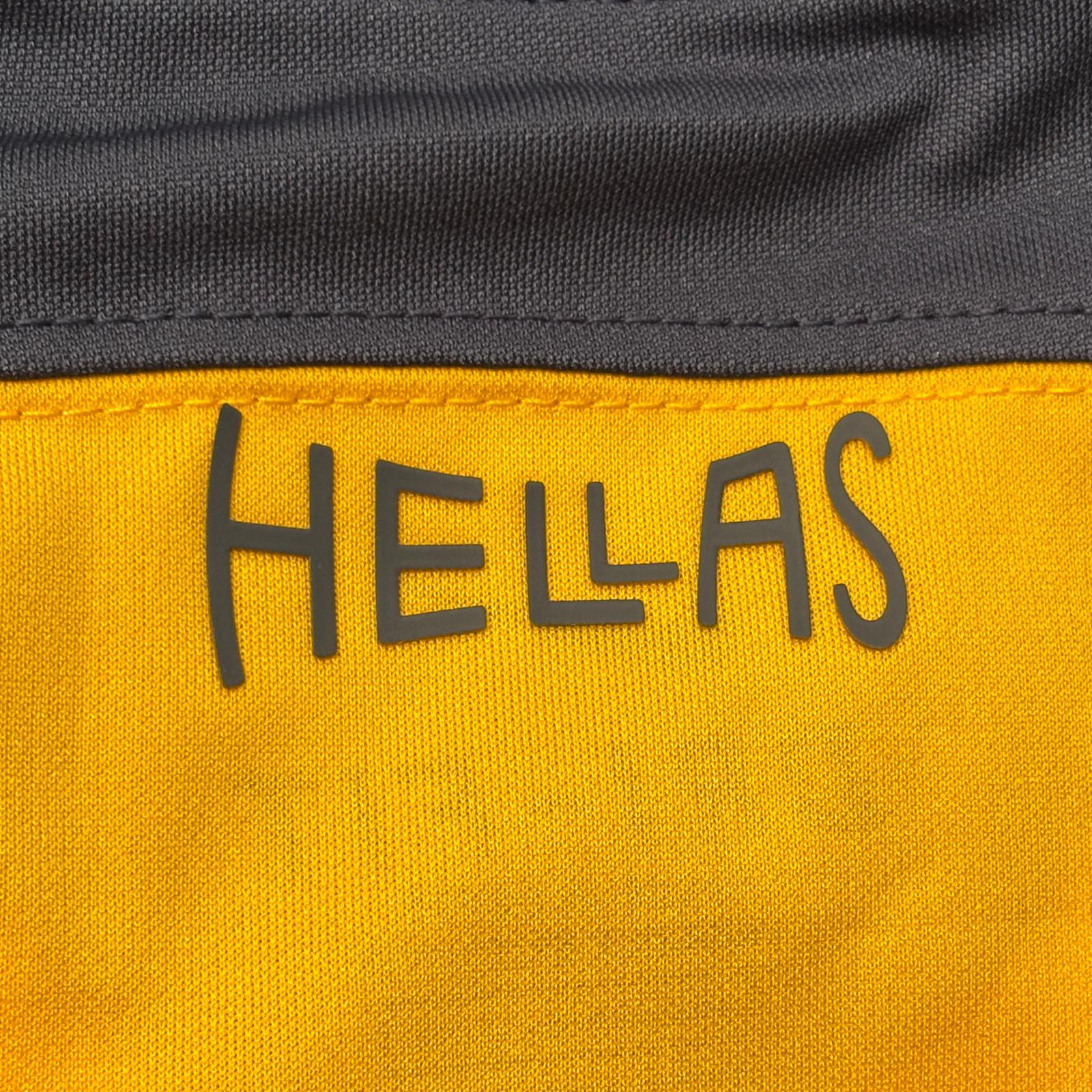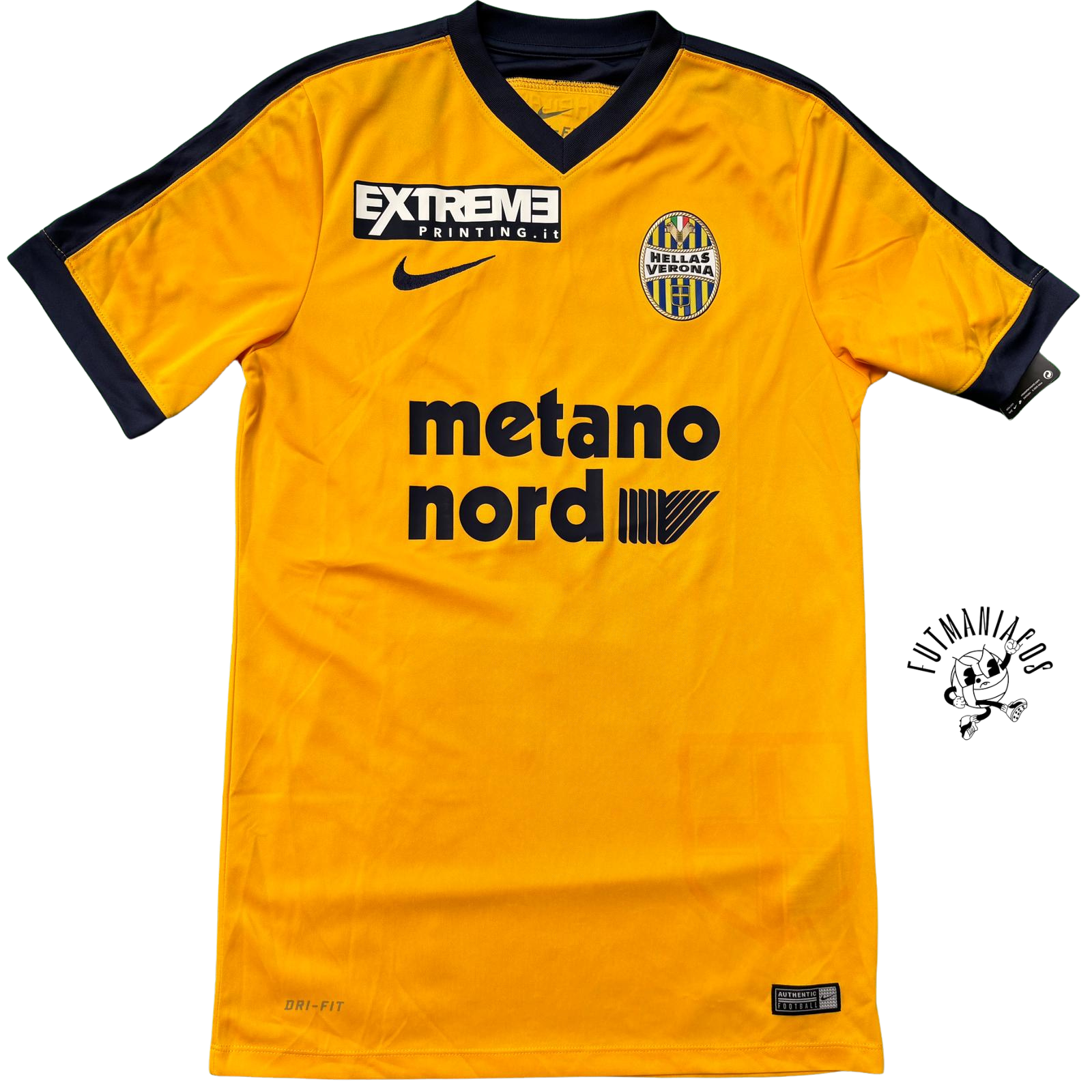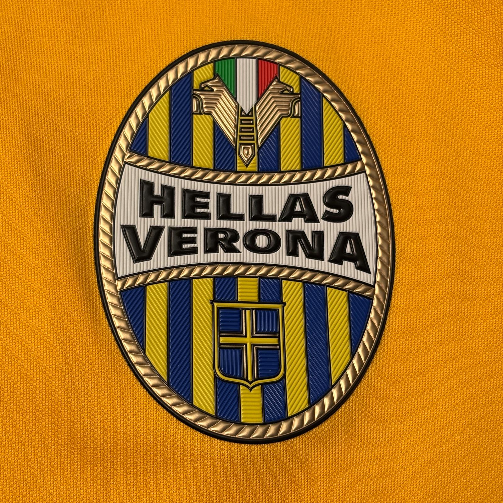 La tienda Futmaniacos nos comparte esta segunda equipación del Hellas Verona, de la marca Nike y usada entre 2016 y 2018, es de color amarillo con un diseño limpio y el patrocinio de «metano nord». Con esta camiseta, el Hellas Verona logró el ascenso a la Serie A en 2017 pero descendió de nuevo a la Serie B en 2018. Puede encontrarse con diversas combinaciones de patrocinadores secundarios.