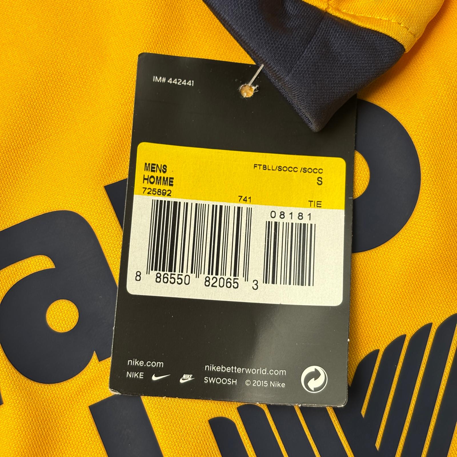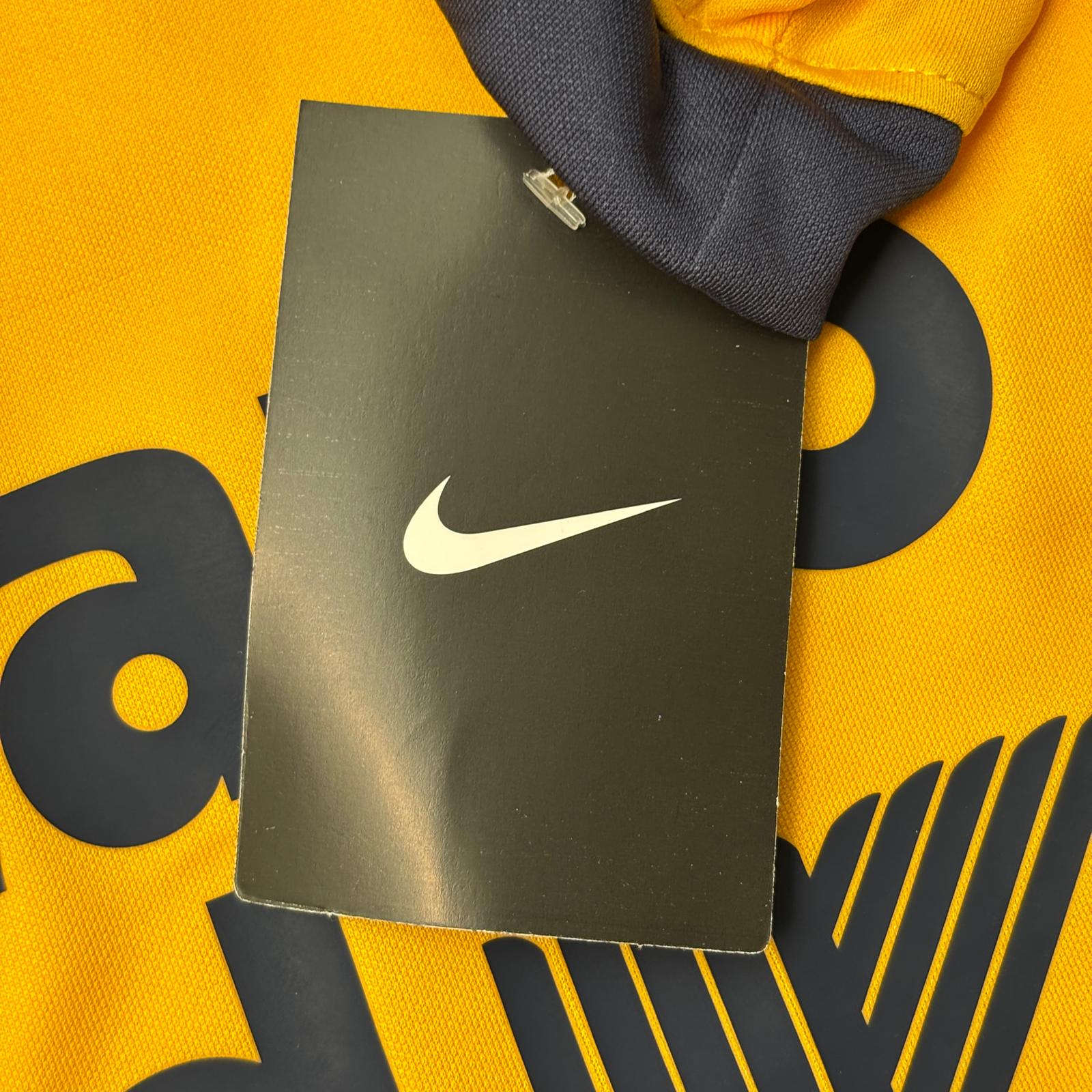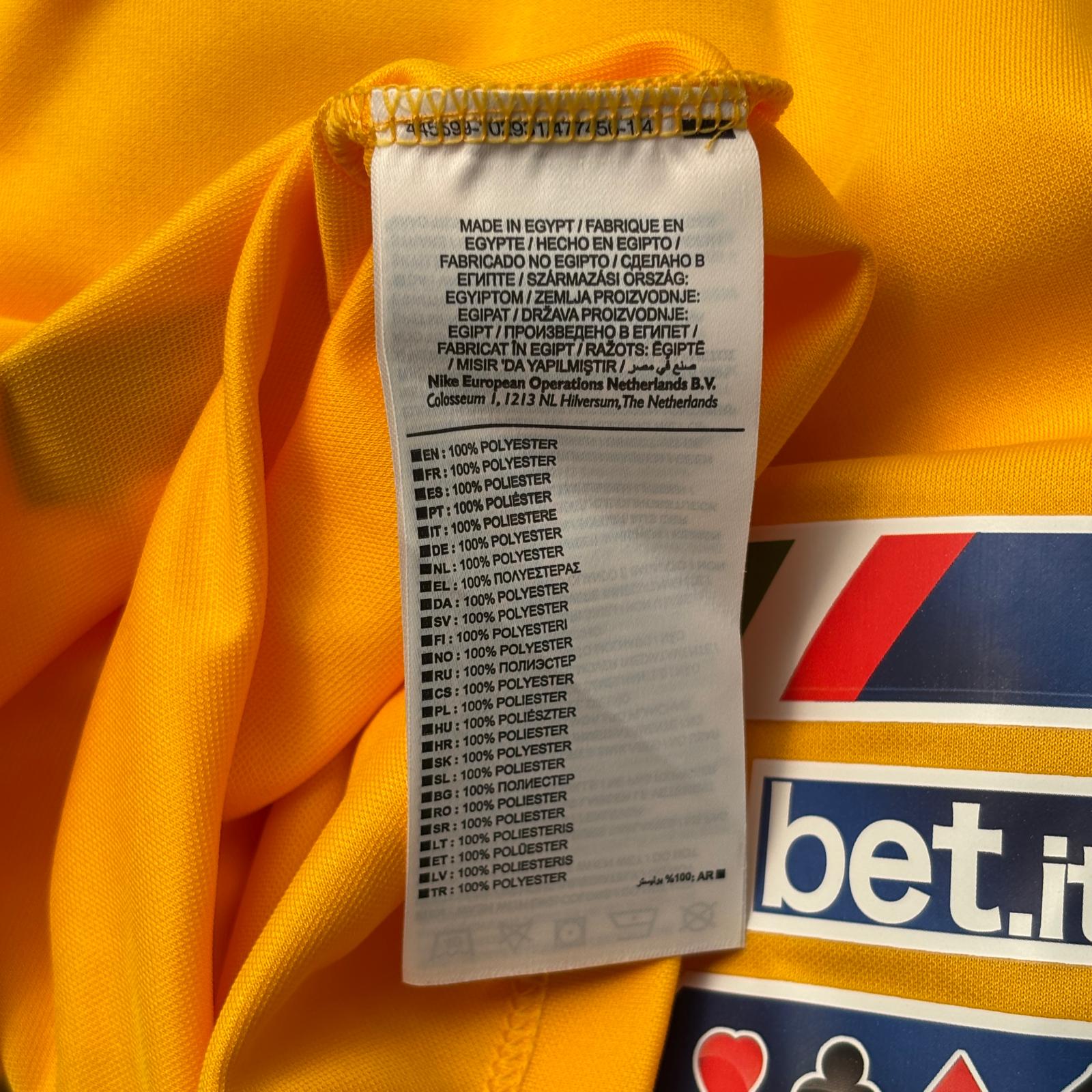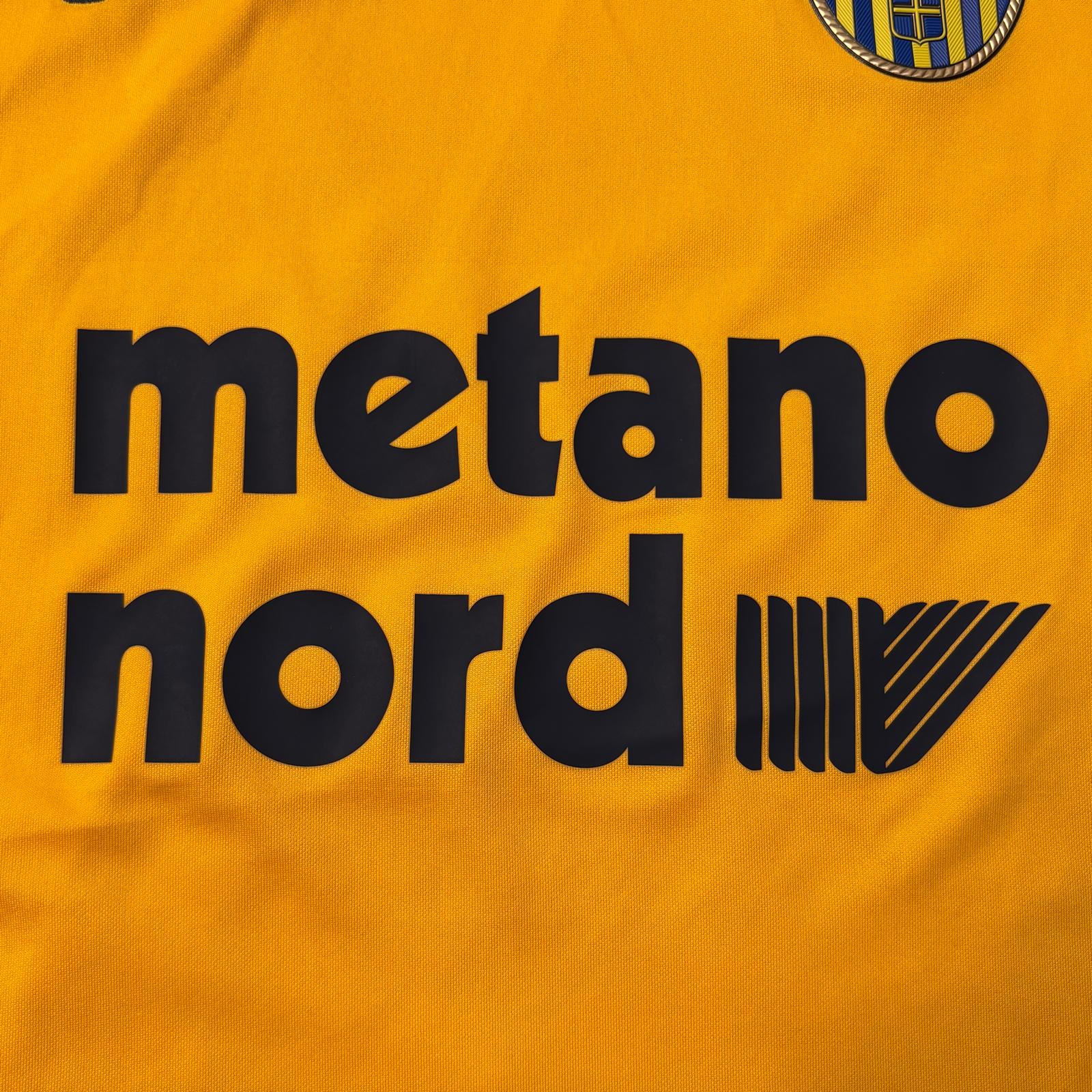 La tienda Futmaniacos nos comparte esta segunda equipación del Hellas Verona, de la marca Nike y usada entre 2016 y 2018, es de color amarillo con un diseño limpio y el patrocinio de «metano nord». Con esta camiseta, el Hellas Verona logró el ascenso a la Serie A en 2017 pero descendió de nuevo a la Serie B en 2018. Puede encontrarse con diversas combinaciones de patrocinadores secundarios.