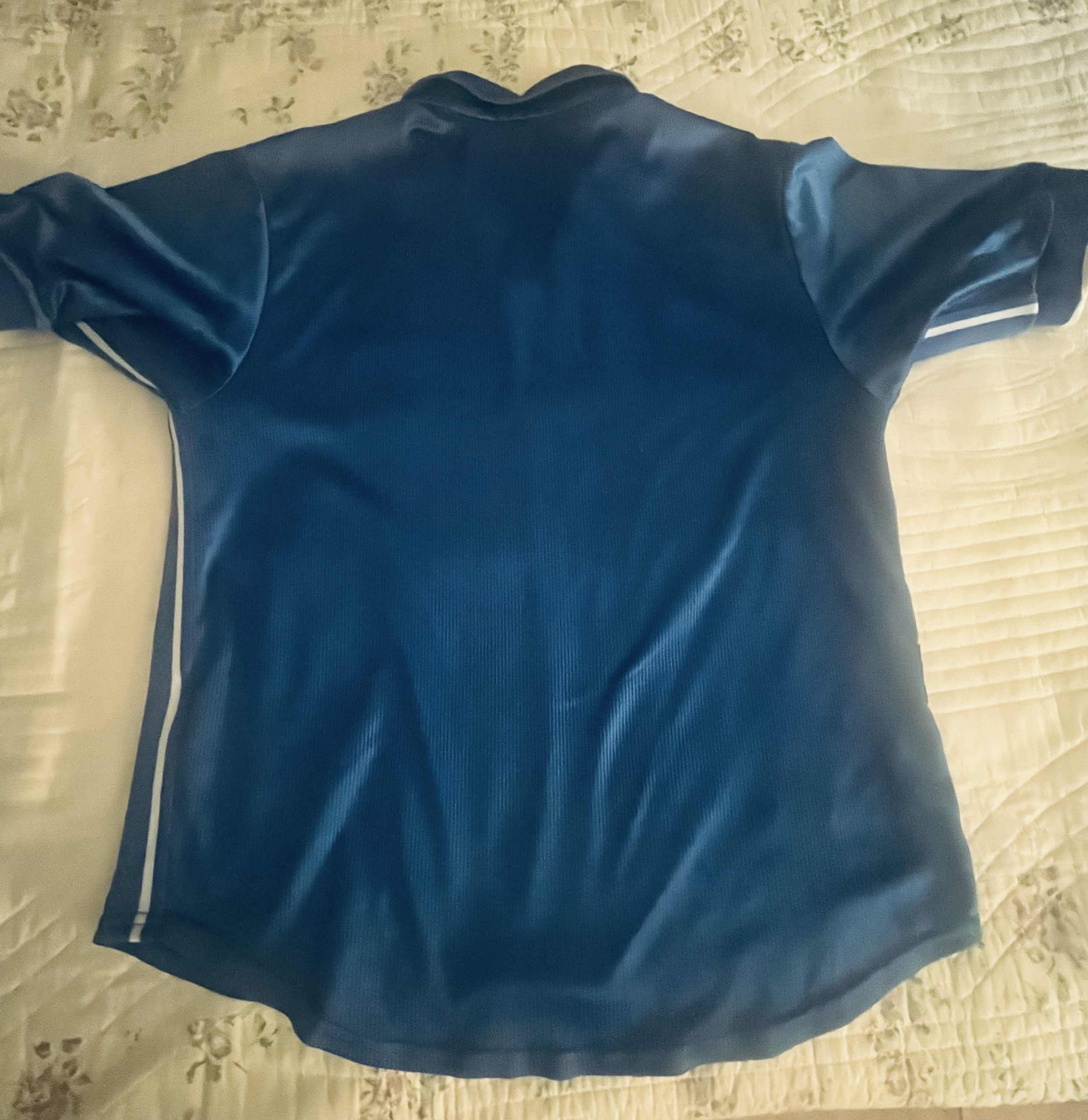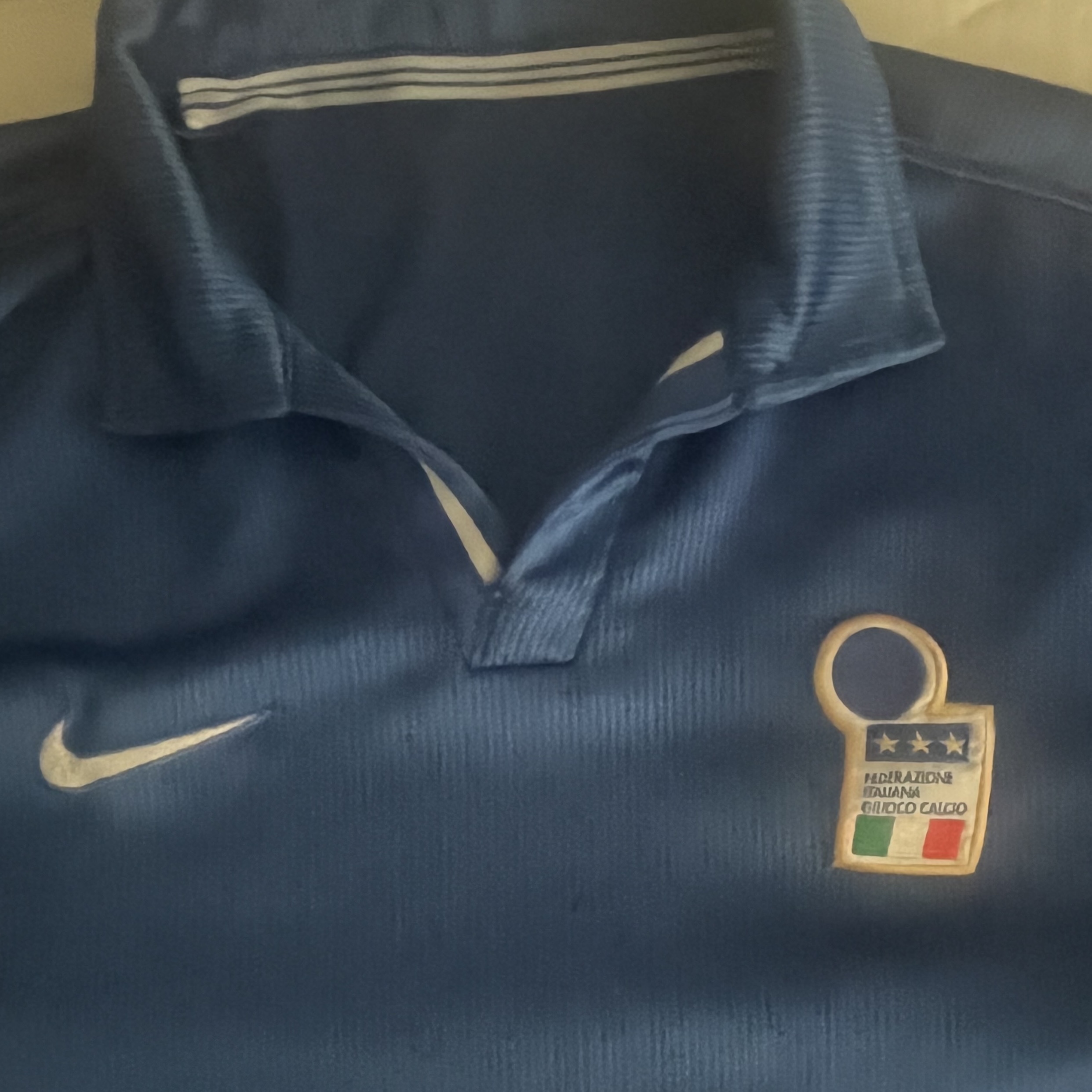Italia utilizó esta camiseta local de Nike en el Mundial de Francia 1998, en color azul con cuello tipo polo y detalles blancos. La selección alcanzó los cuartos de final, eliminada por Francia en los penaltis tras un empate sin goles. En la fase de grupos había sumado dos victorias y un empate, y en octavos superó a Noruega con gol de Vieri. Esta se puede encontrar tanto con el swoosh de Nike en el pecho como sin él.