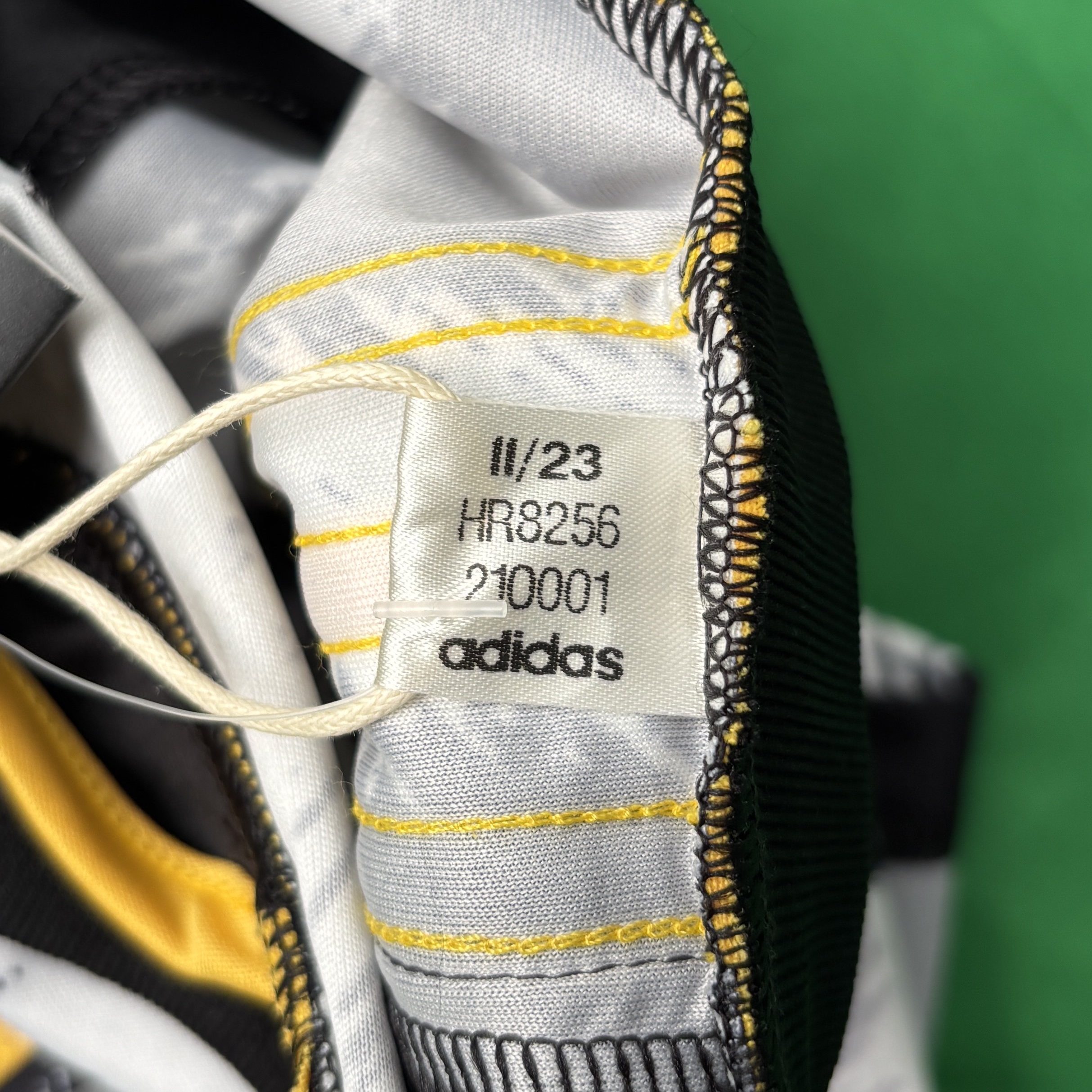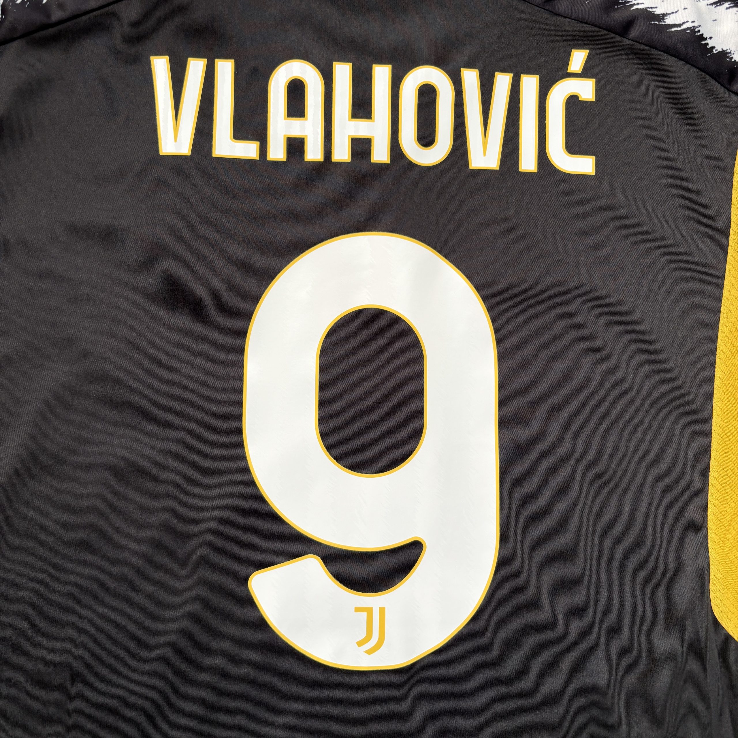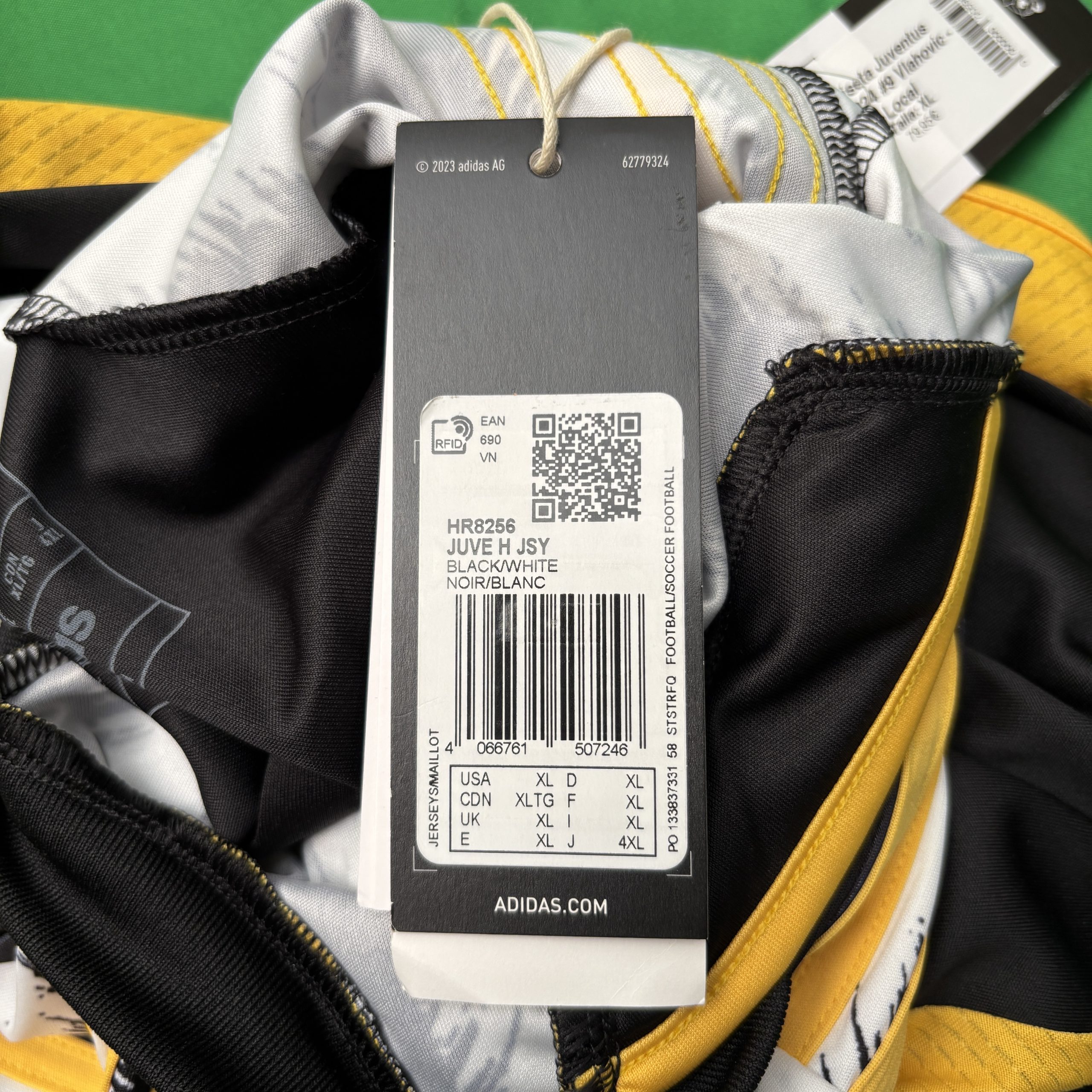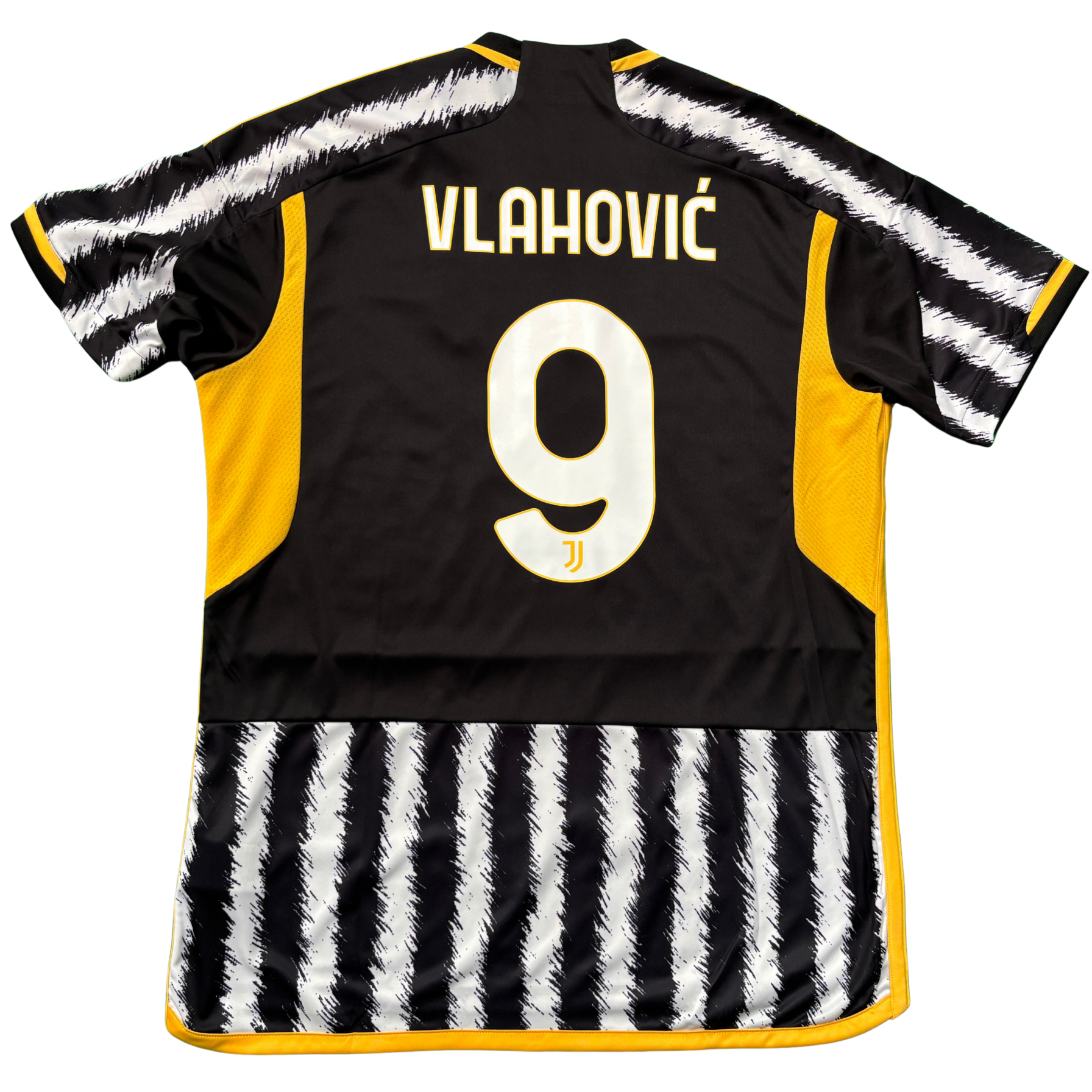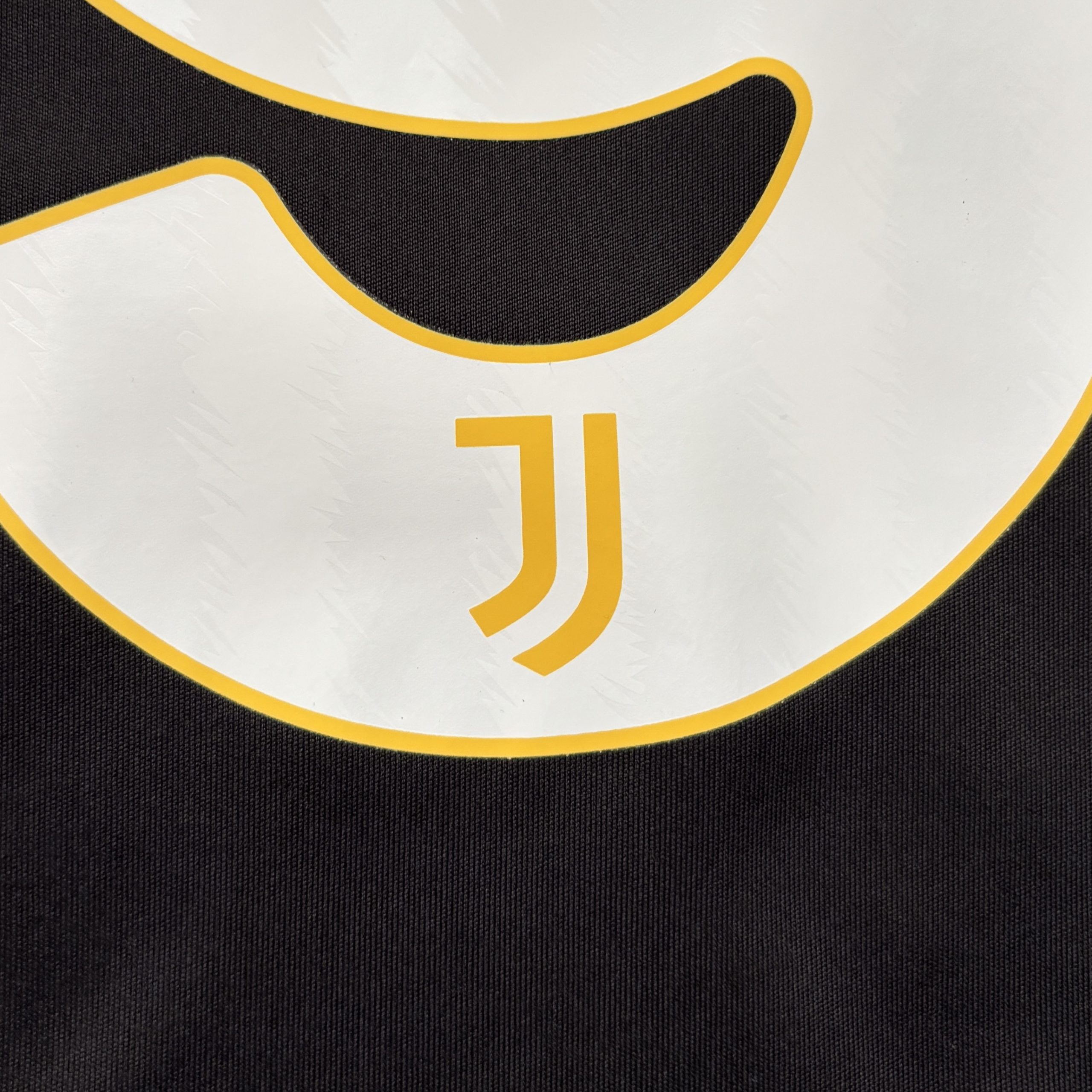 La equipación principal de la Juventus para la temporada 2023-2024, fabricada por Adidas, regresa a las franjas tradicionales con un diseño que evoca a una cebra, con líneas borrosas y difuminadas. El equipo finalizó en 3ª posición en la Serie A, lo que le valió la clasificación para la UEFA Champions League, además de ganar la Copa de Italia.