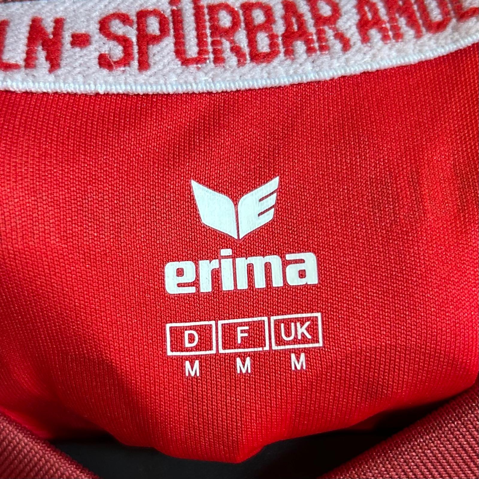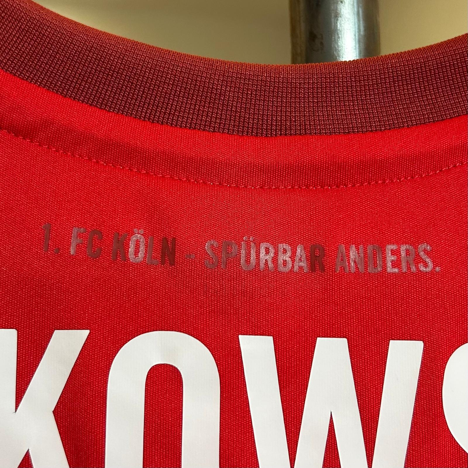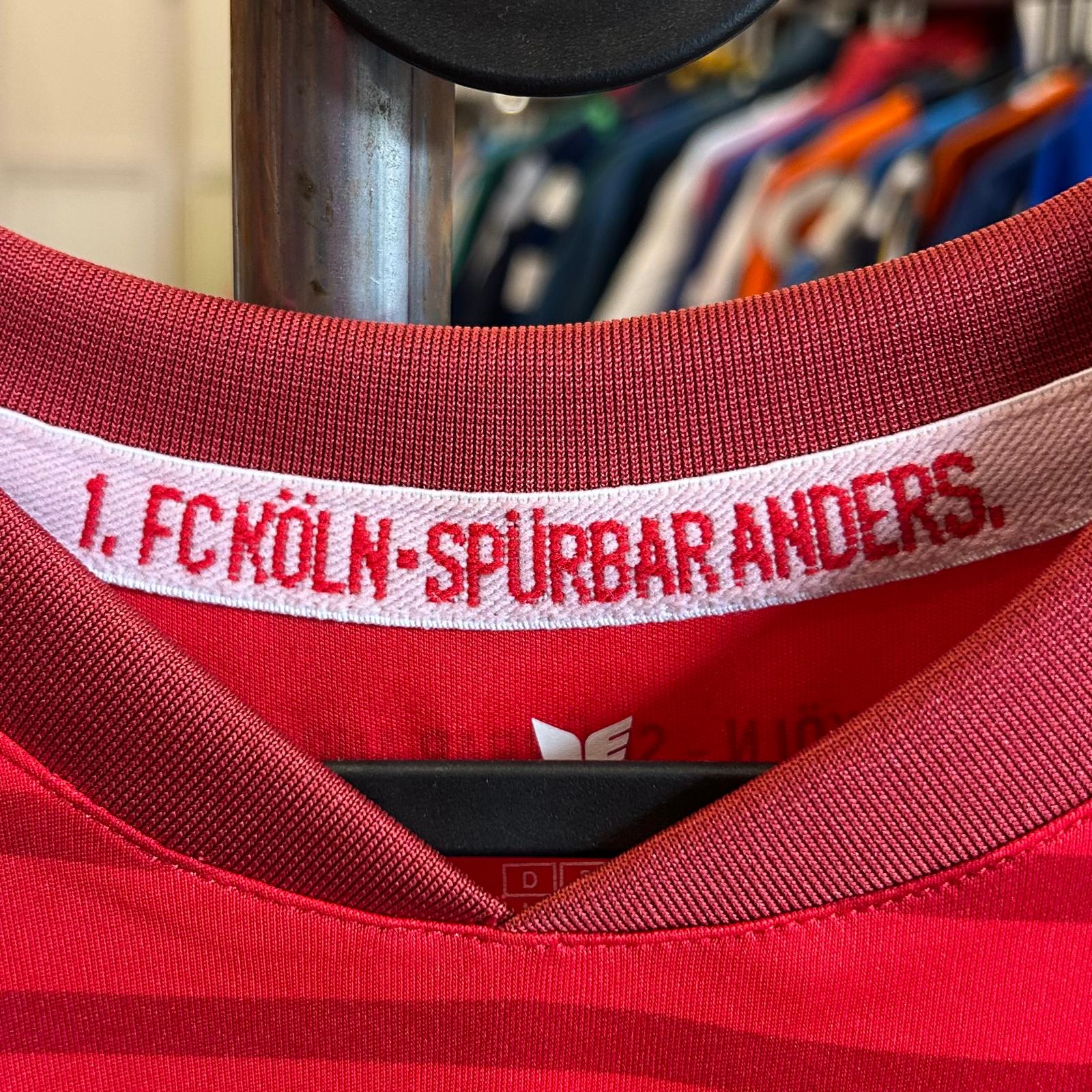 La segunda equipación del 1. FC Köln de la temporada 2017-2018, de la marca Erima, es de color rojo con un patrón de franjas horizontales y el patrocinador REWE. En esa temporada, el Köln finalizó 18º en la Bundesliga y descendió, y fue eliminado en dieciseisavos de final de la DFB-Pokal y en la fase de grupos de la Europa League.