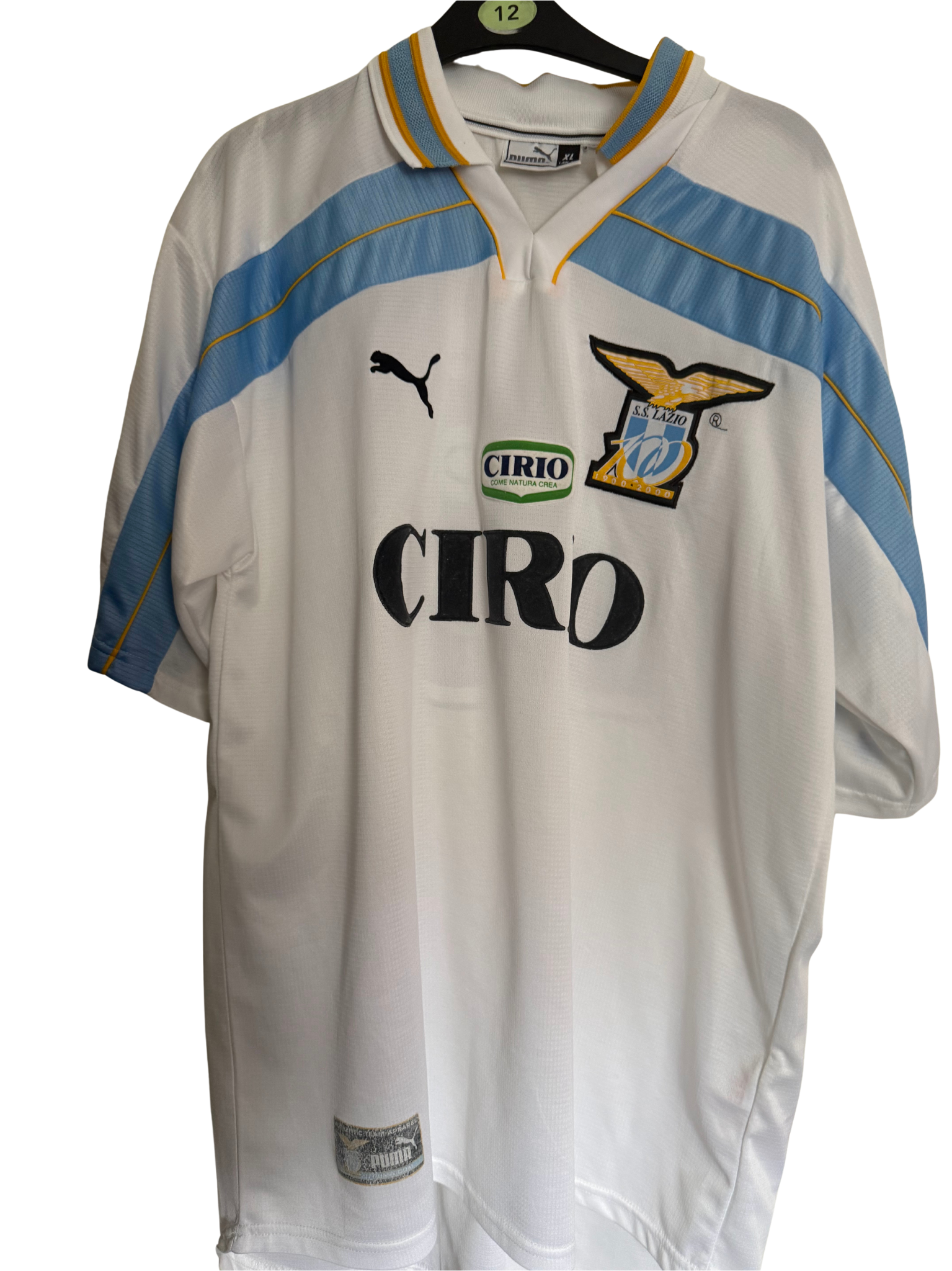 La camiseta especial centenario de la Lazio de la temporada 1999-2000, de la marca Puma, es de color blanco con detalles celestes y amarillos. Esta edición especial conmemoró el Centenario del club (1900-2000). Con esta equipación, la Lazio logró un histórico doblete al ganar la Serie A y la Copa Italia en la misma temporada. El patrocinador principal era Cirio.