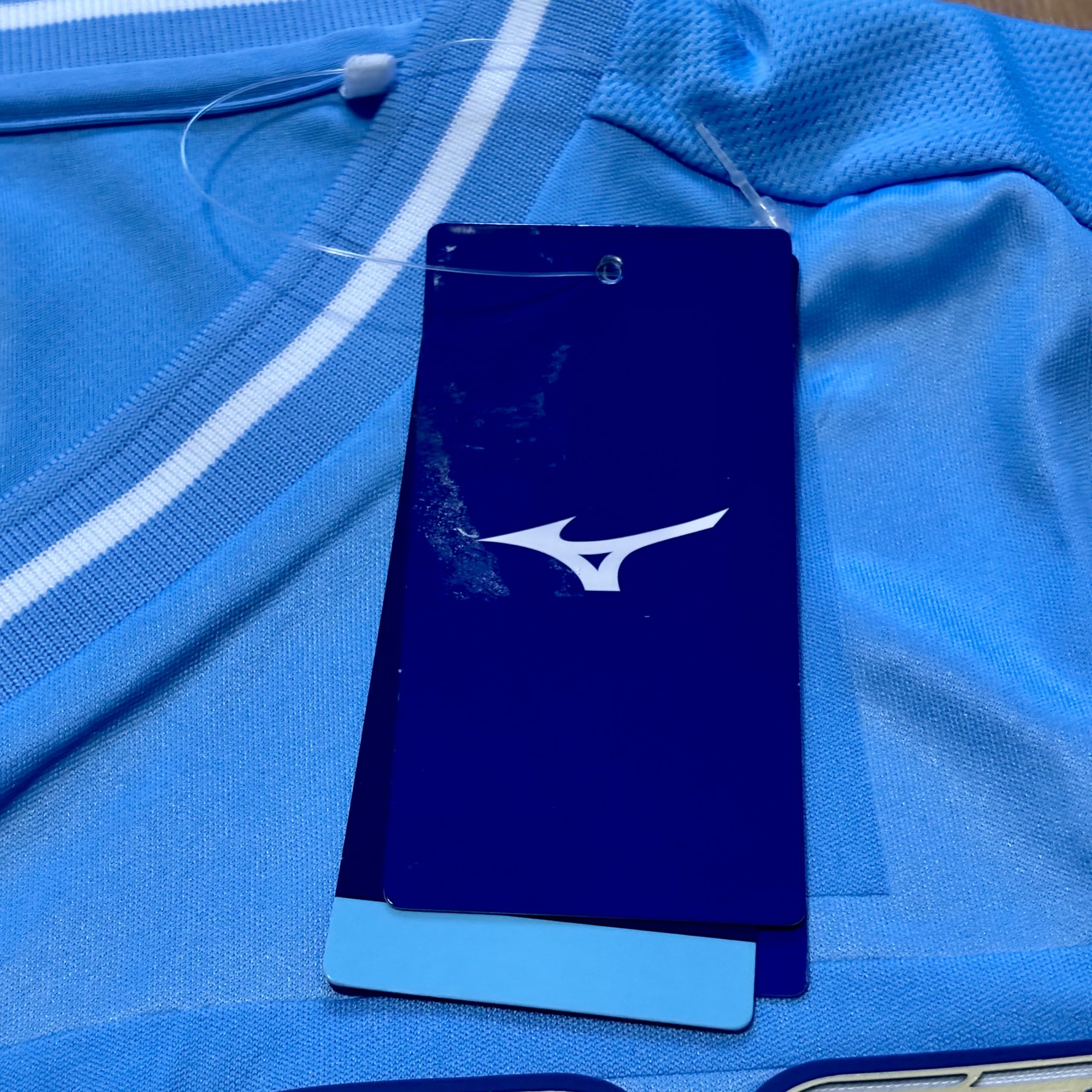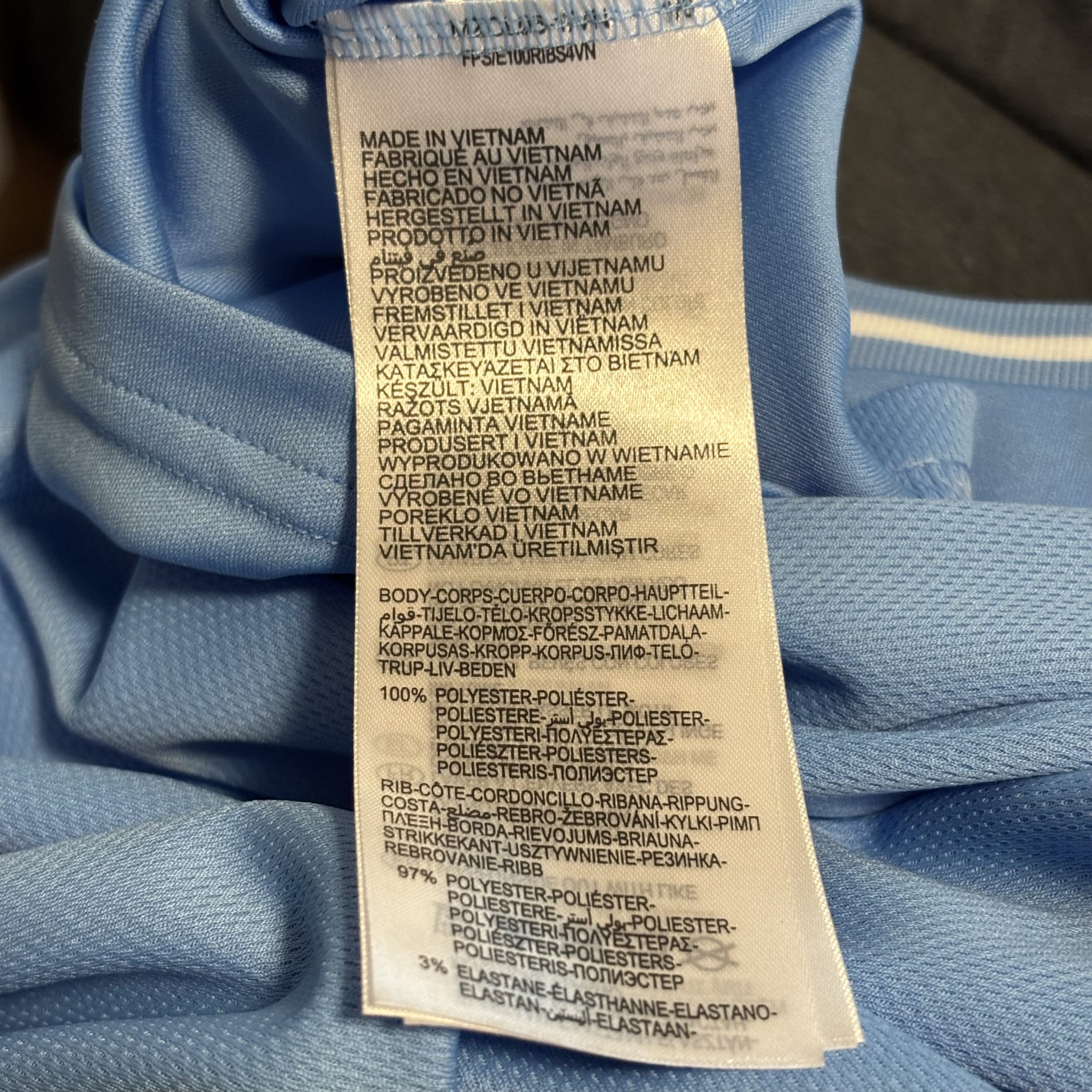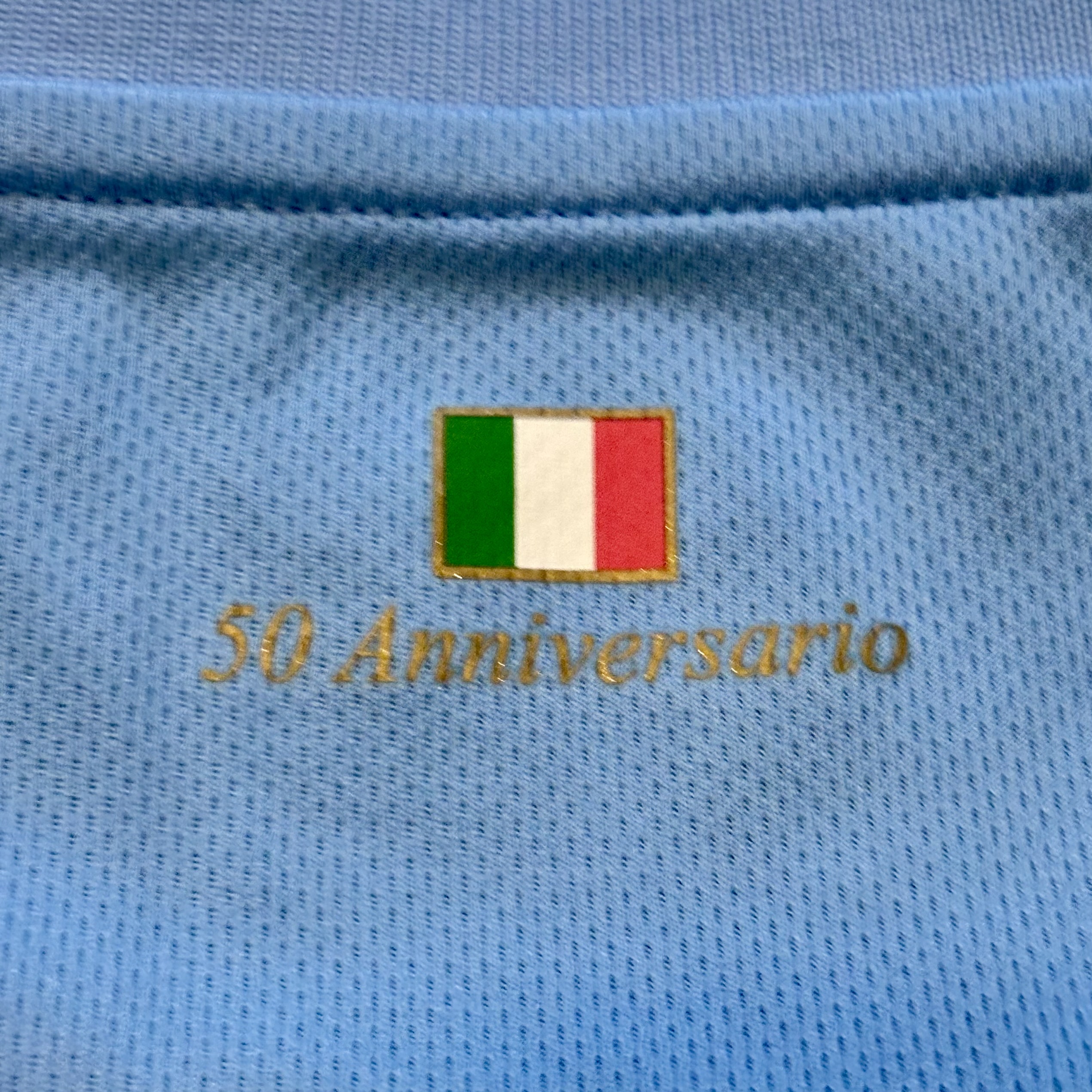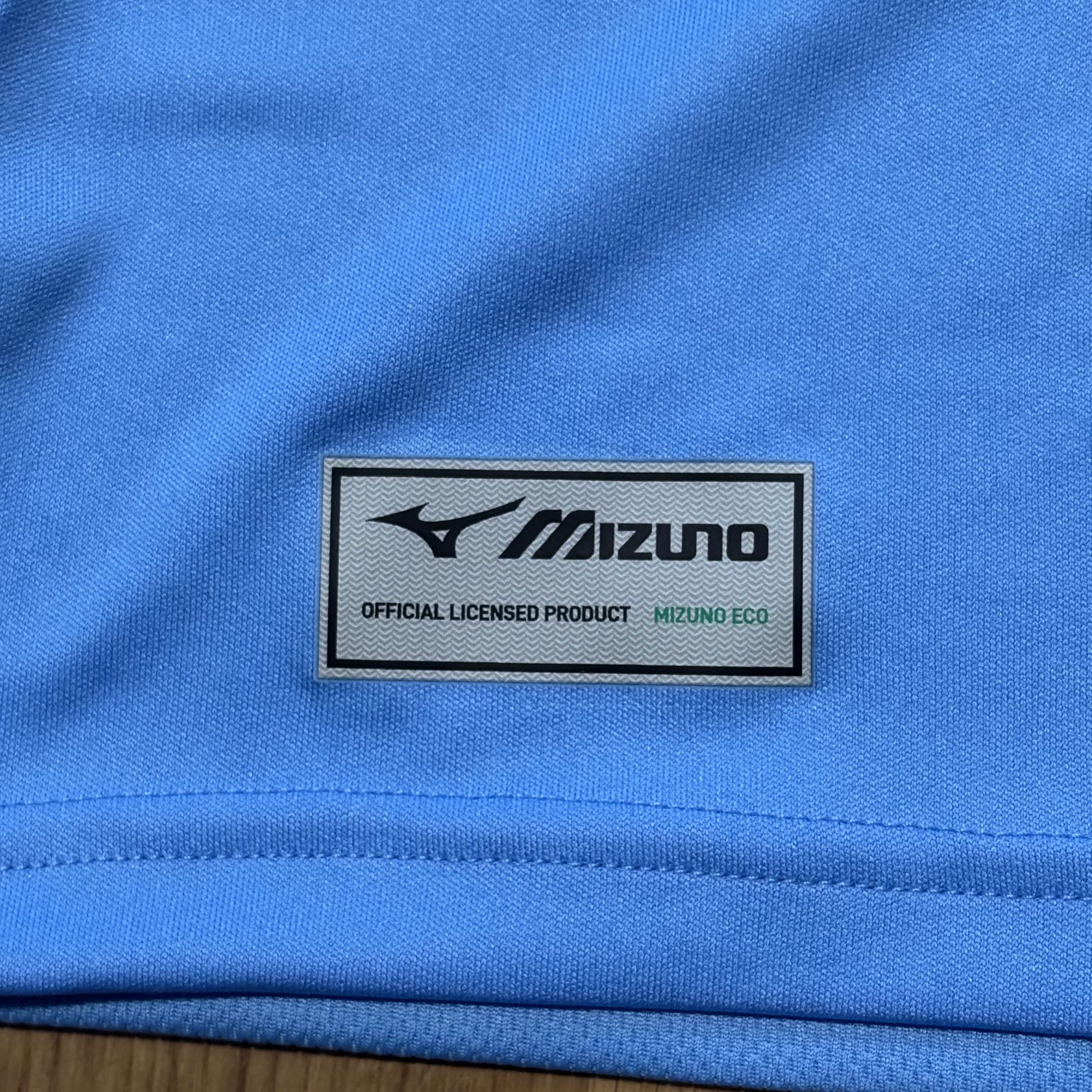 Camiseta local de la SS Lazio para la temporada 2023-2024, fabricada por Mizuno, en su característico celeste, con un elegante gráfico en relieve que integra el águila del club y barras verticales tonales en el frontal. Con este modelo, la Lazio compitió en Serie A, donde finalizó 7.ª, y en Champions League, alcanzando los octavos de final, siendo eliminada por el Bayern de Múnich.
