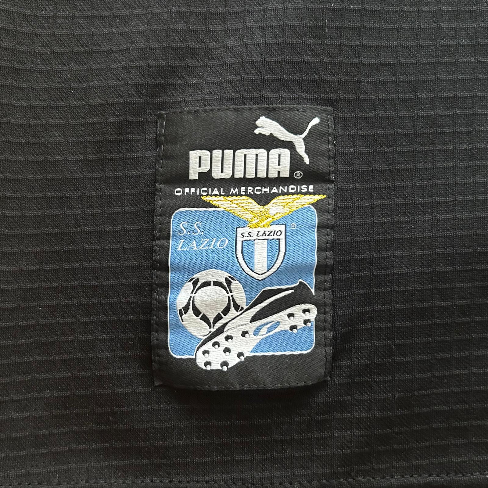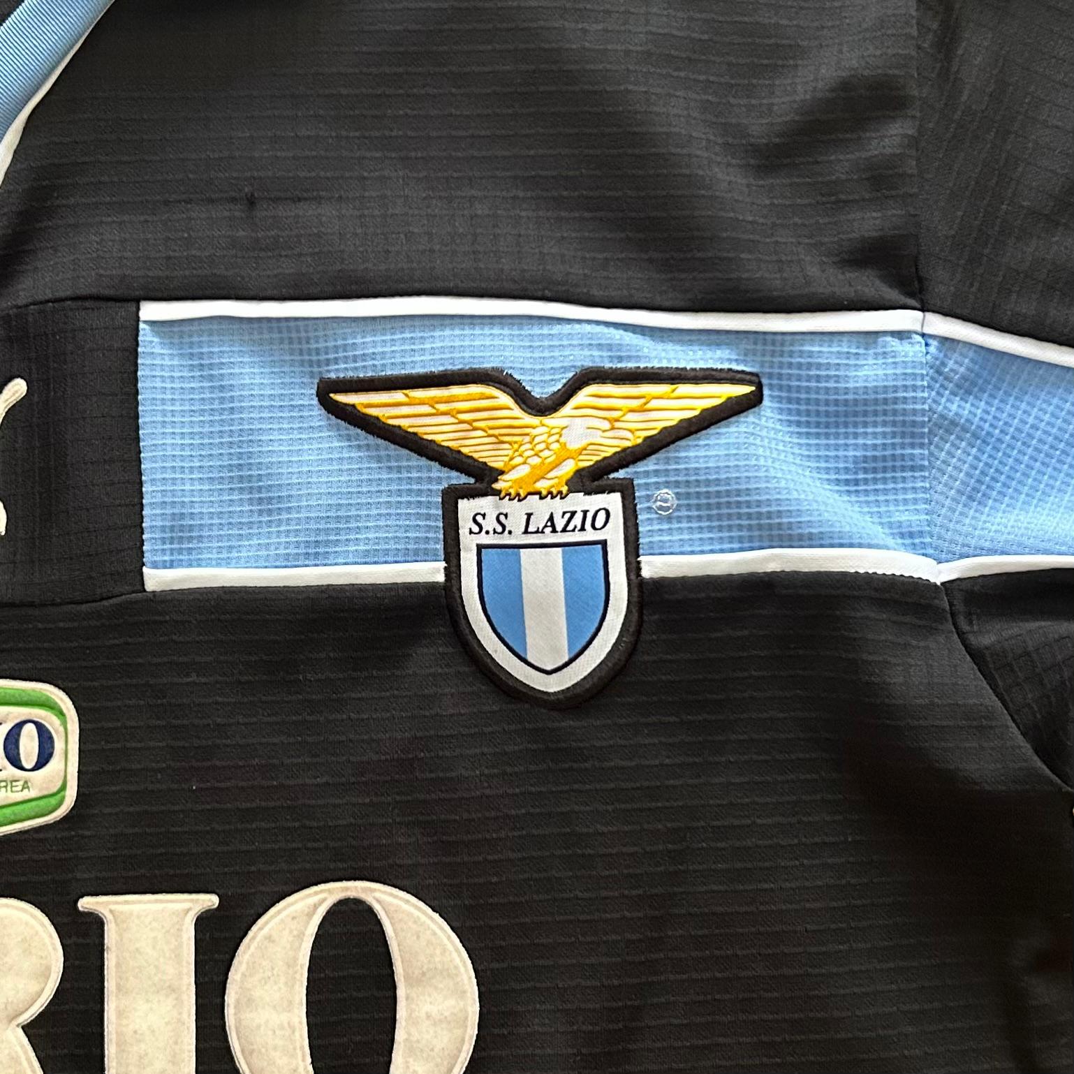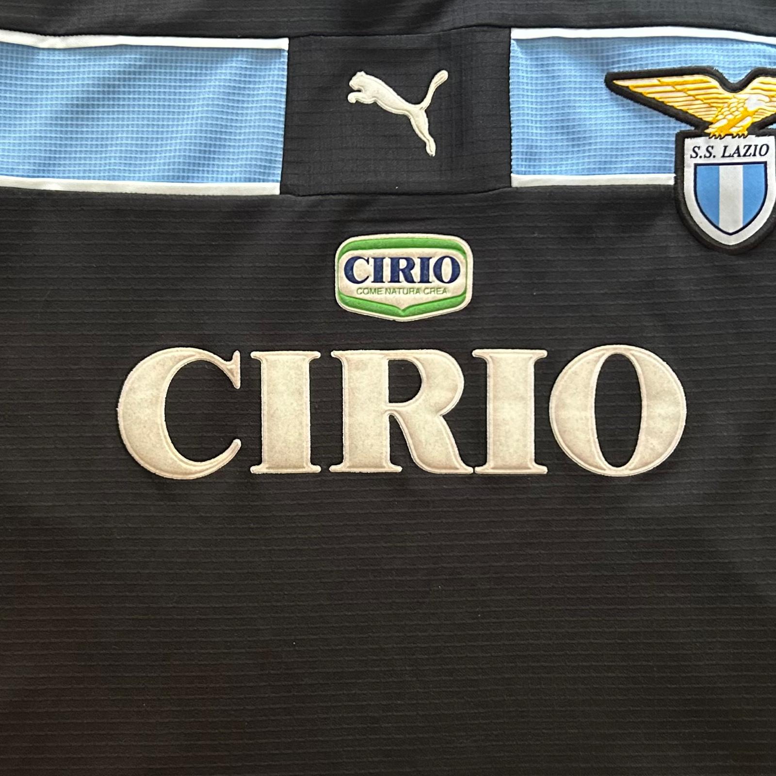 Camiseta de visitante de la Lazio utilizada entre 1998 y 2000, fabricada por Puma y patrocinada por Cirio. Esta equipación fue testigo del ascenso del equipo romano como uno de los mejores clubes de Europa, con un diseño en negro y azul celeste distintivo: 2º en la Serie A 98 -99, ganador de la Recopa de Europa 1999, Supercopa de Europa 99 y doblete con Scudetto y Coppa de Italia en la 99-00.