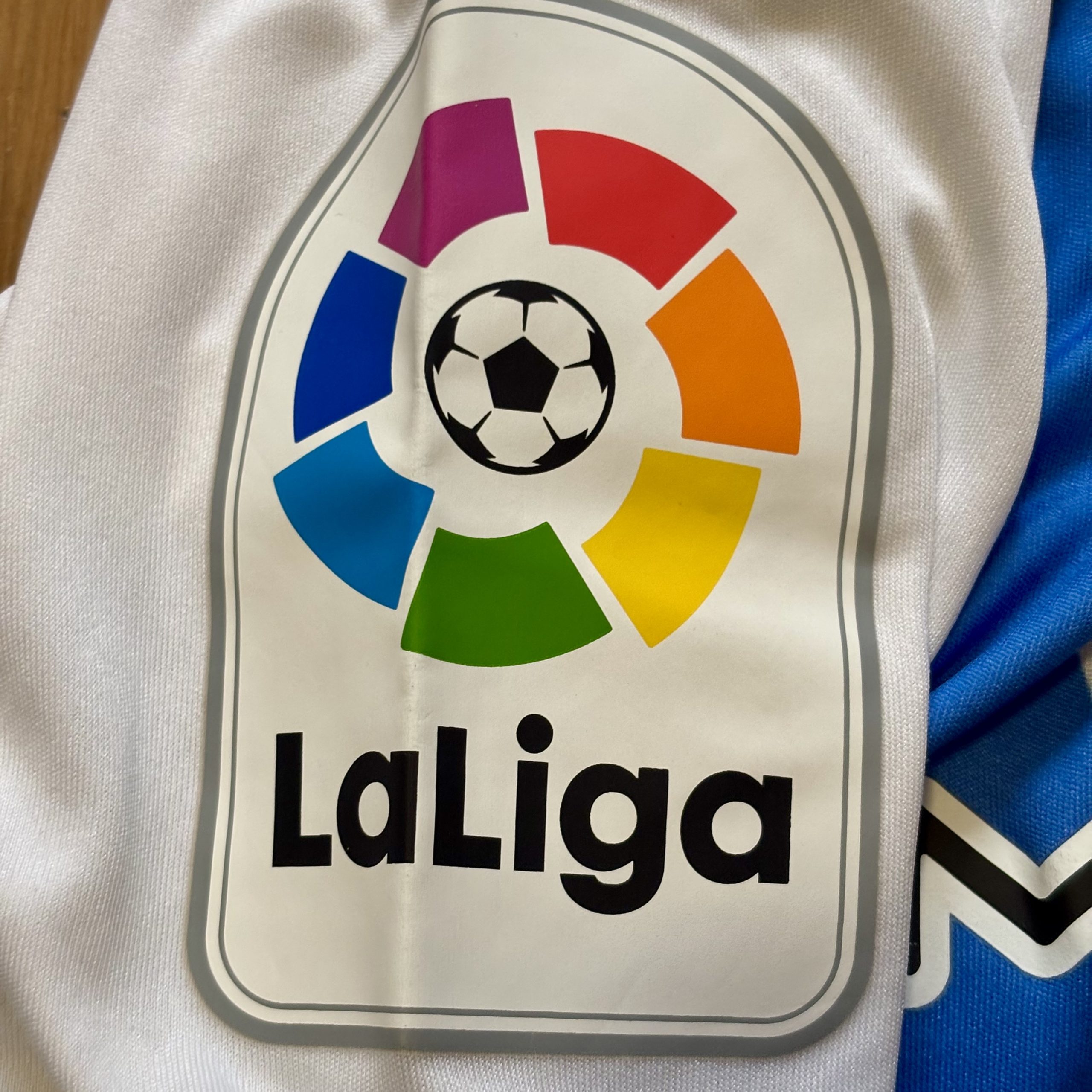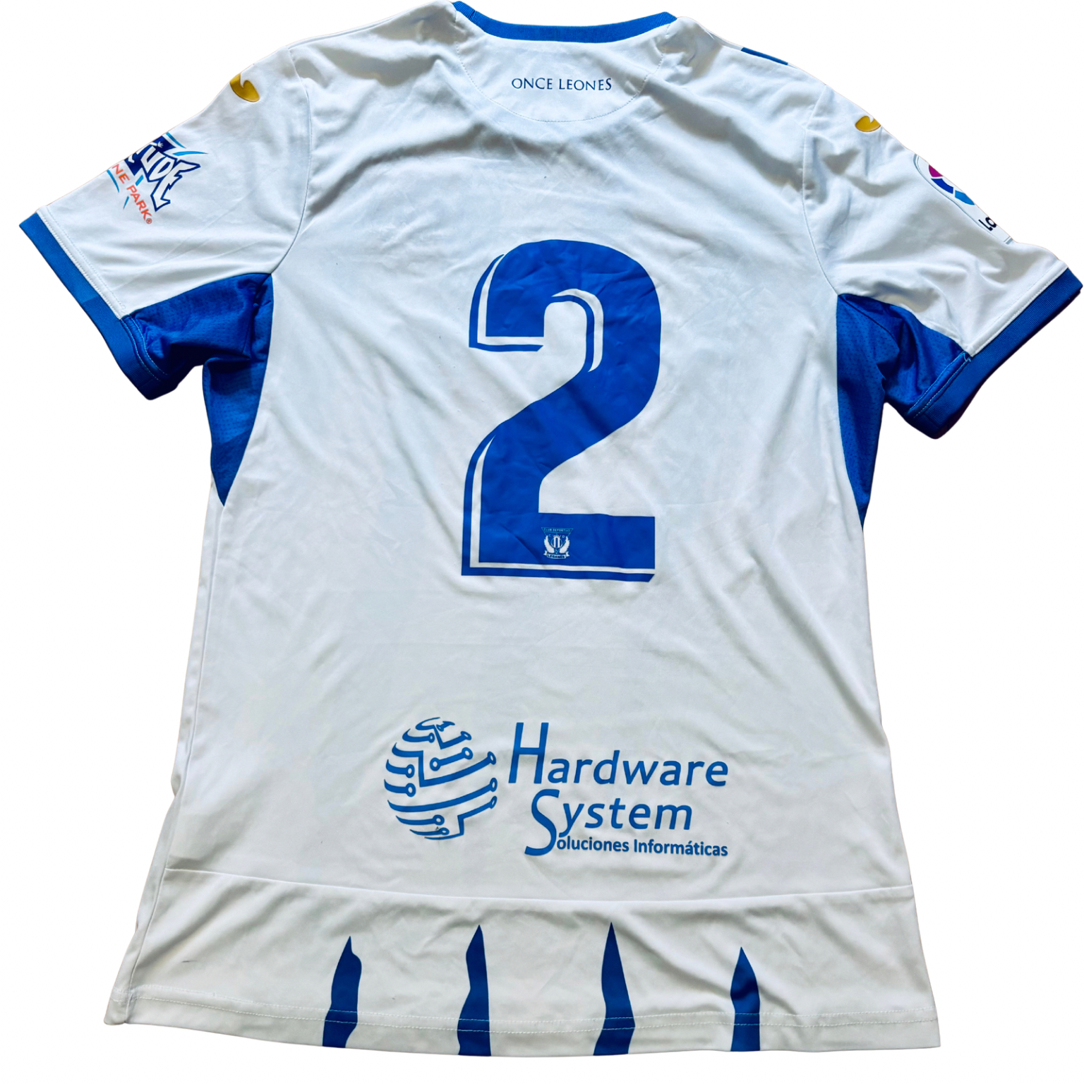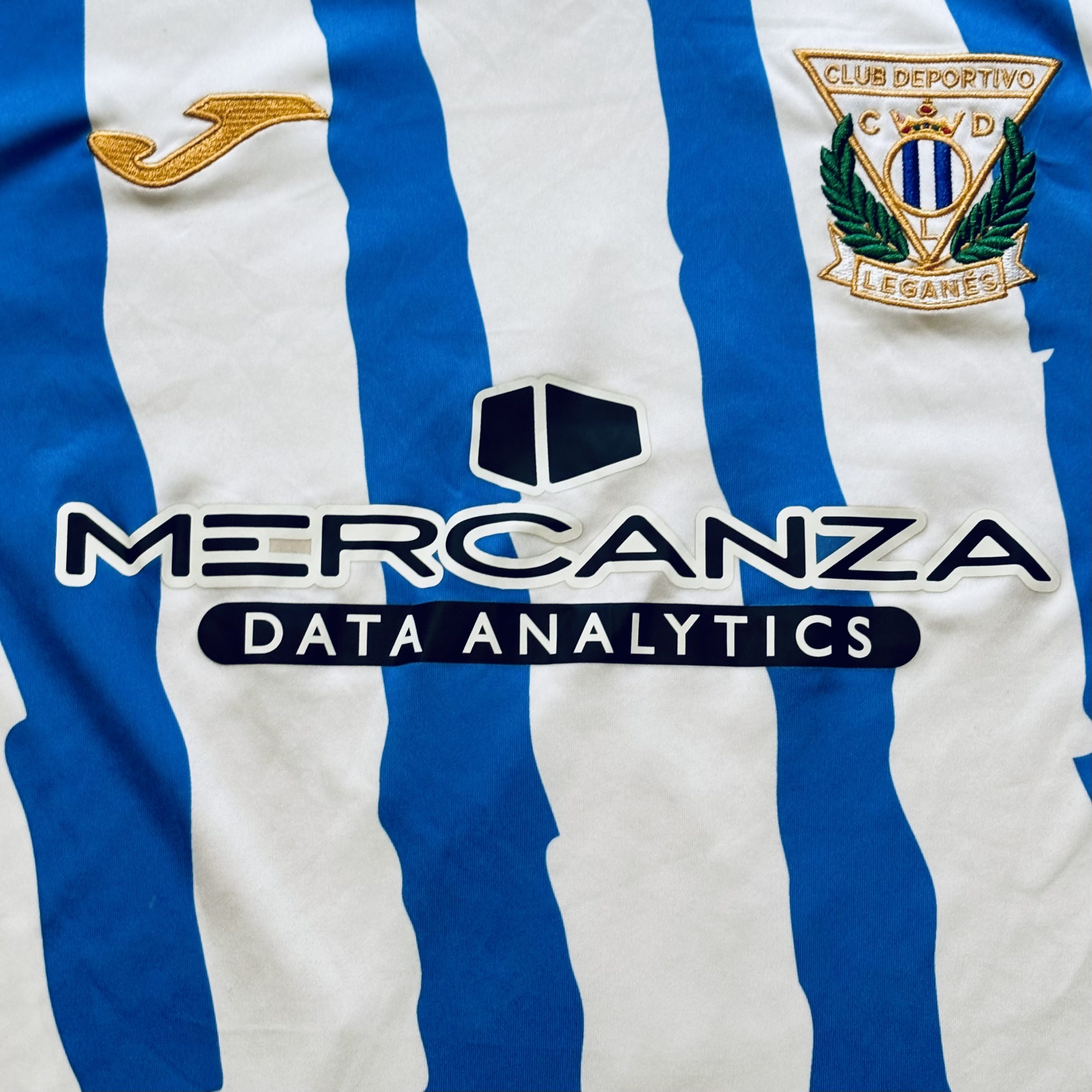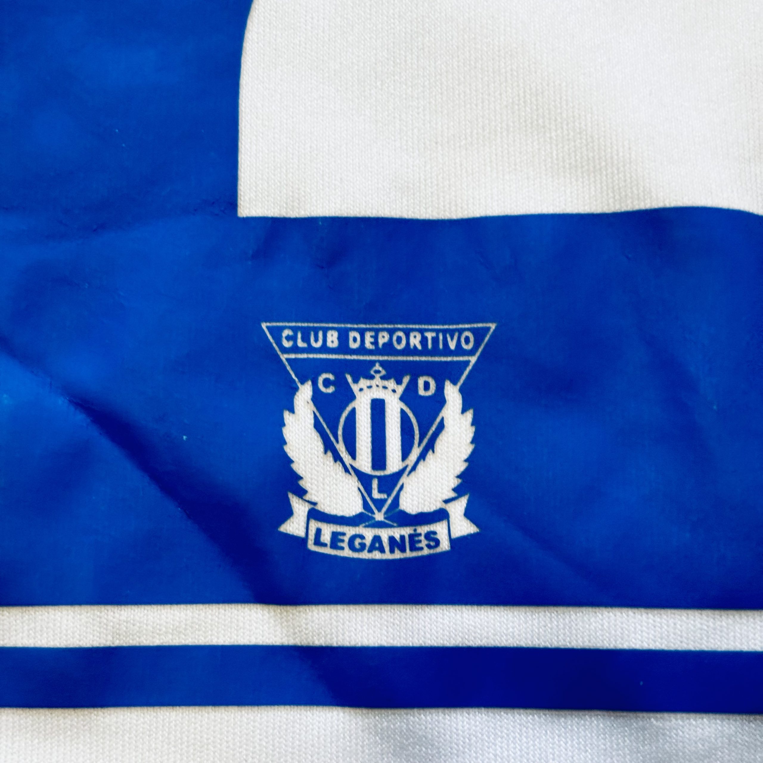 Camiseta local del CD Leganés utilizada en la temporada 2022-2023, fabricada por Joma con un diseño blanco atravesado por franjas verticales azules irregulares, una reinterpretación moderna del patrón histórico pepinero. Jugaron en Segunda División y terminaron en 14ª posición.