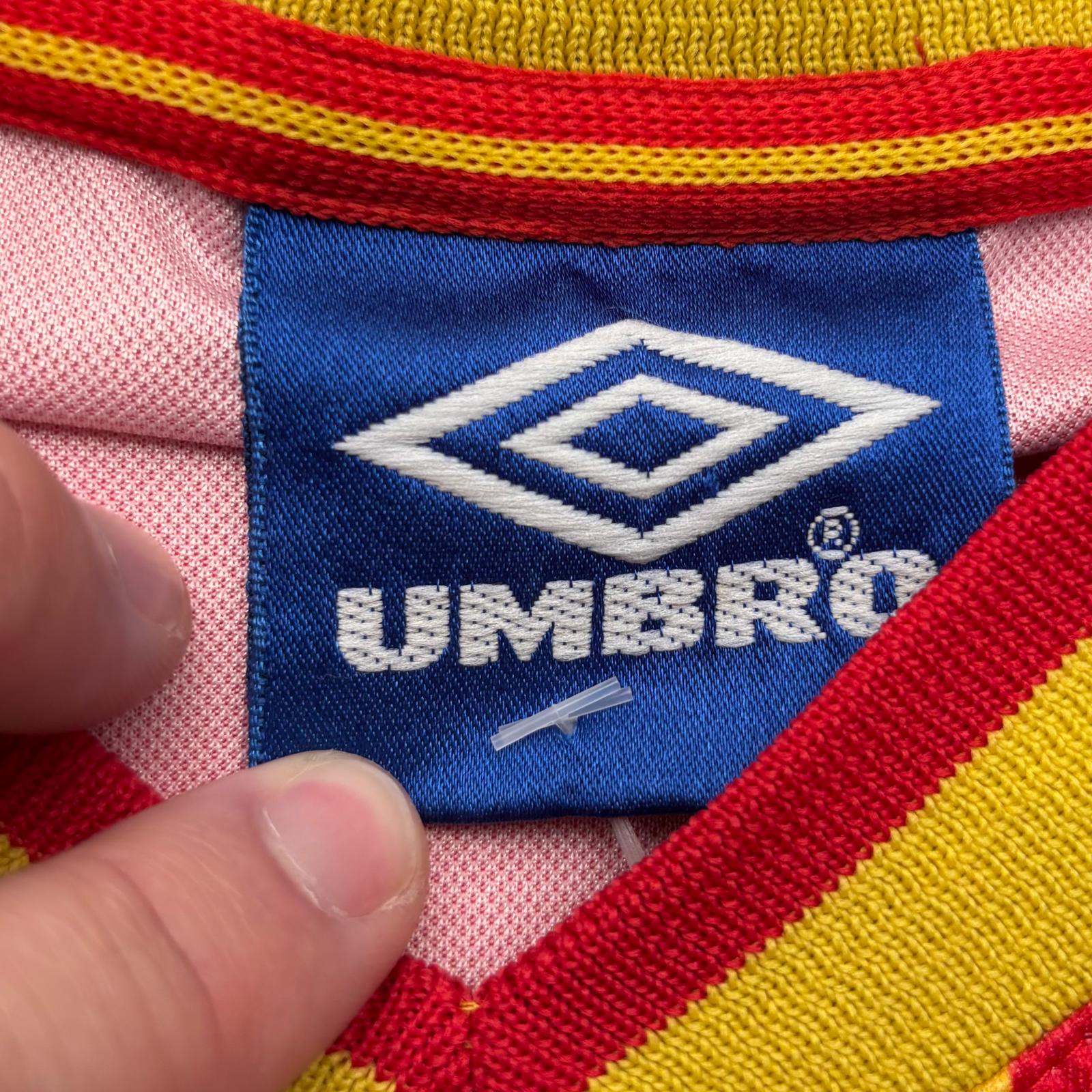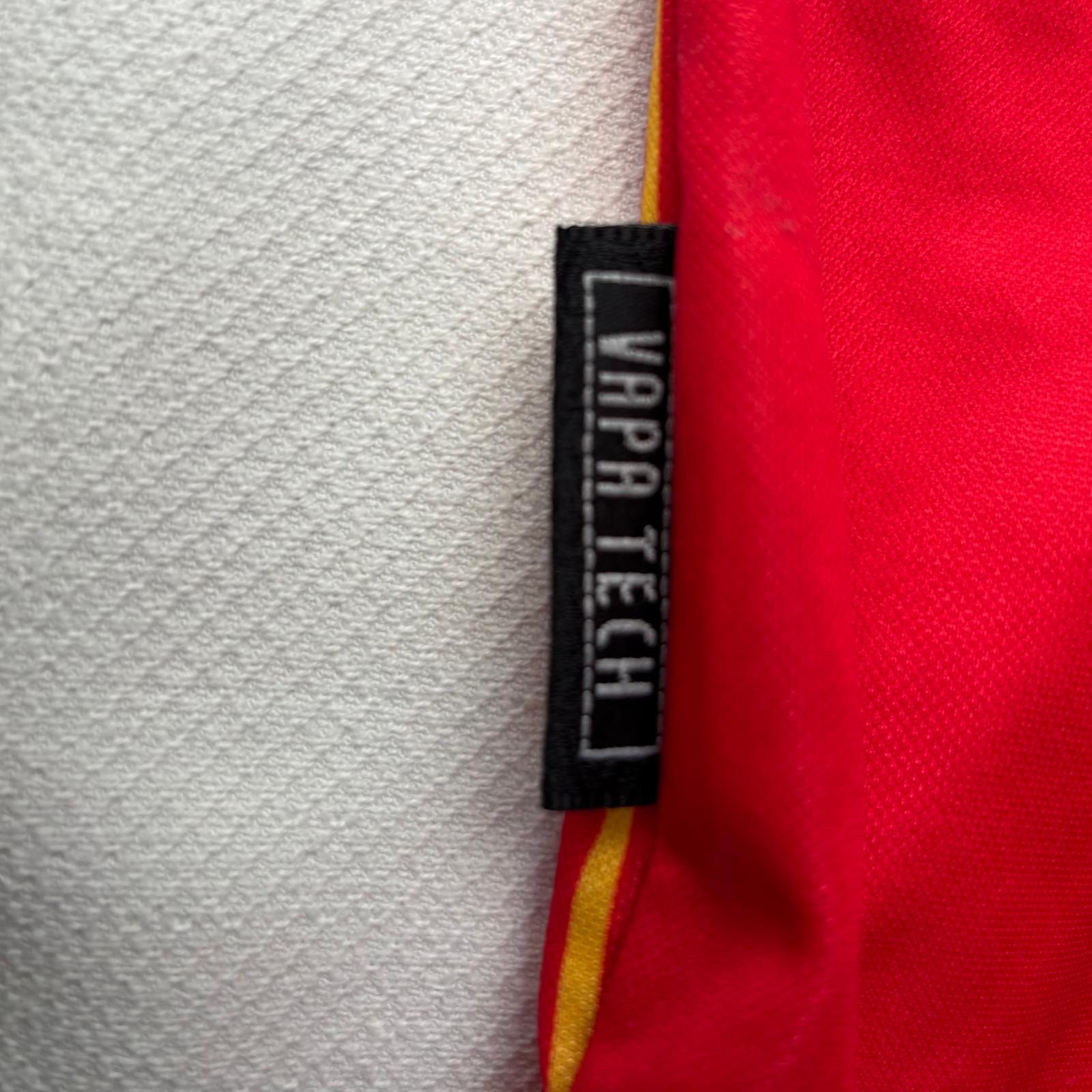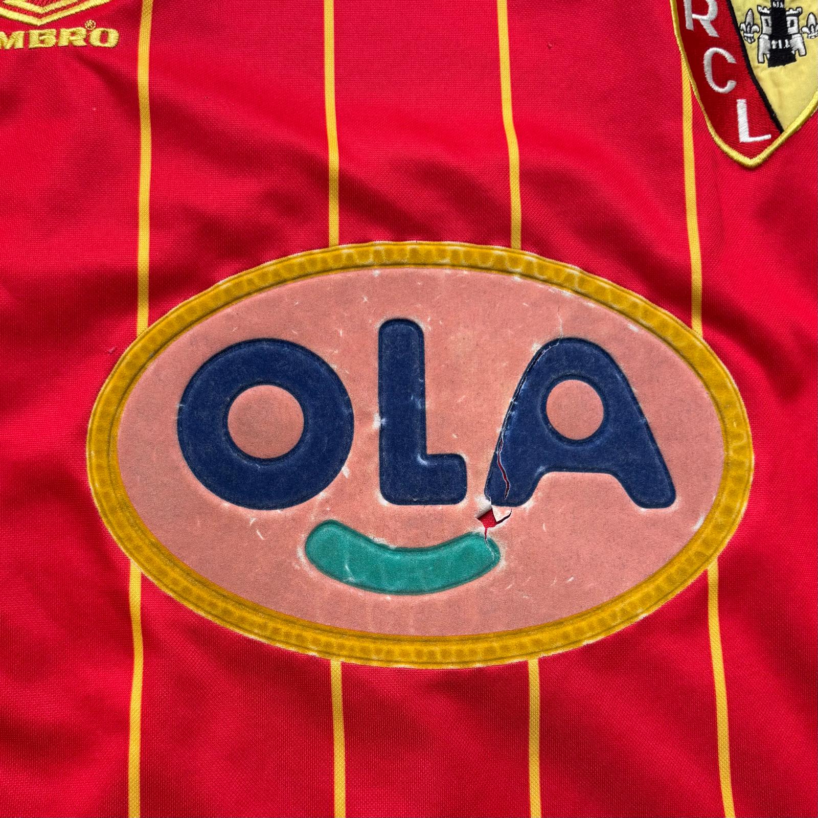 El RC Lens utilizó esta camiseta como primera equipación en la temporada 1999-2000, fabricada por Umbro y patrocinada por OLA. Con su tradicional diseño en rojo con finas rayas verticales amarillas, el equipo compitió en la Ligue 1 (donde acabó 5º), la Copa de Francia y la Copa de la UEFA, alcanzando las semifinales de final en el torneo europeo tras ser eliminado por el Arsenal.