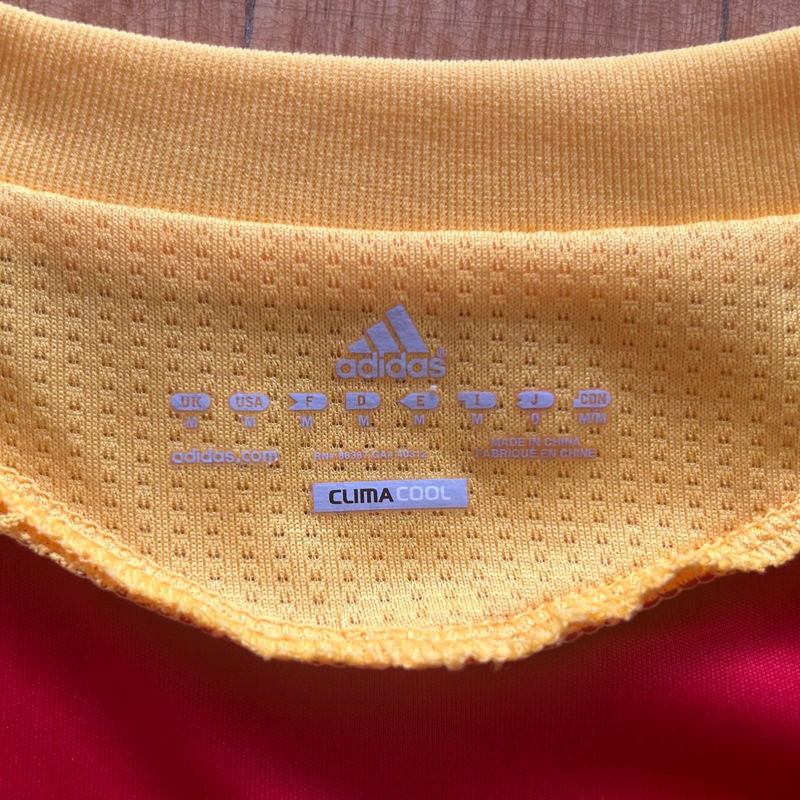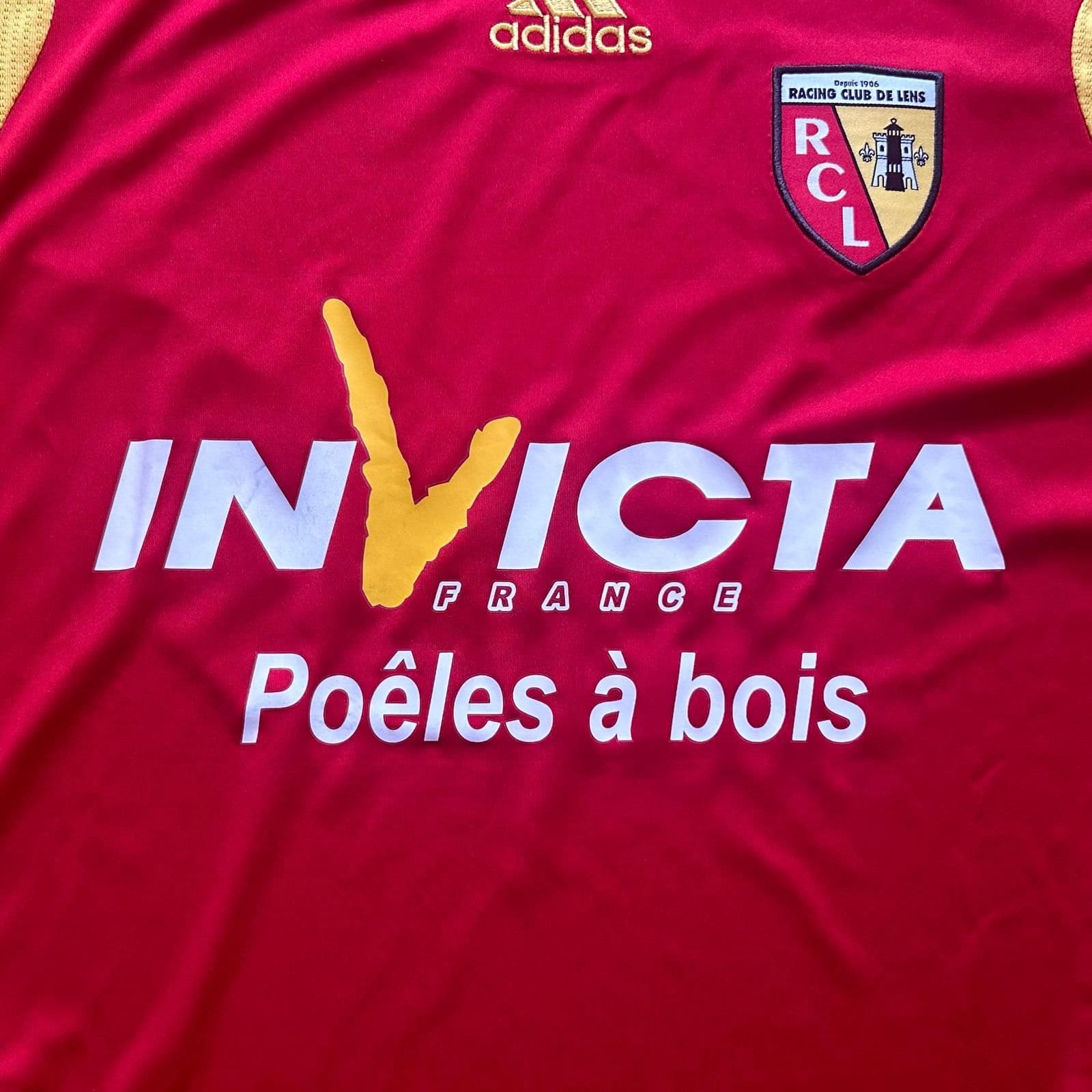 Camiseta local del RC Lens utilizada en la temporada 2011-2012, fabricada por Adidas. Diseño en rojo con detalles en amarillo, patrocinador Invicta y cuello en V. Jugó la Ligue 2 y no llegó a pelear por el ascenso.