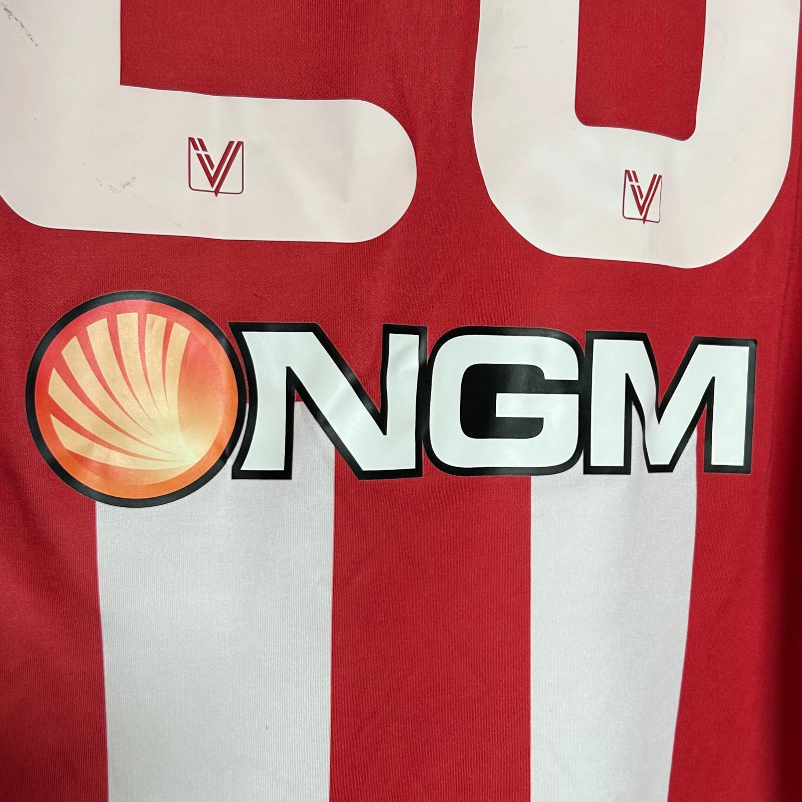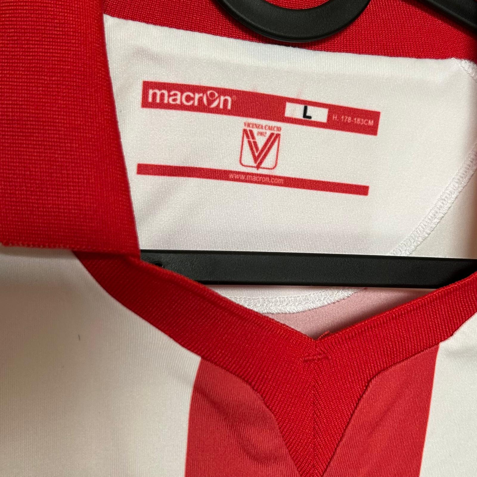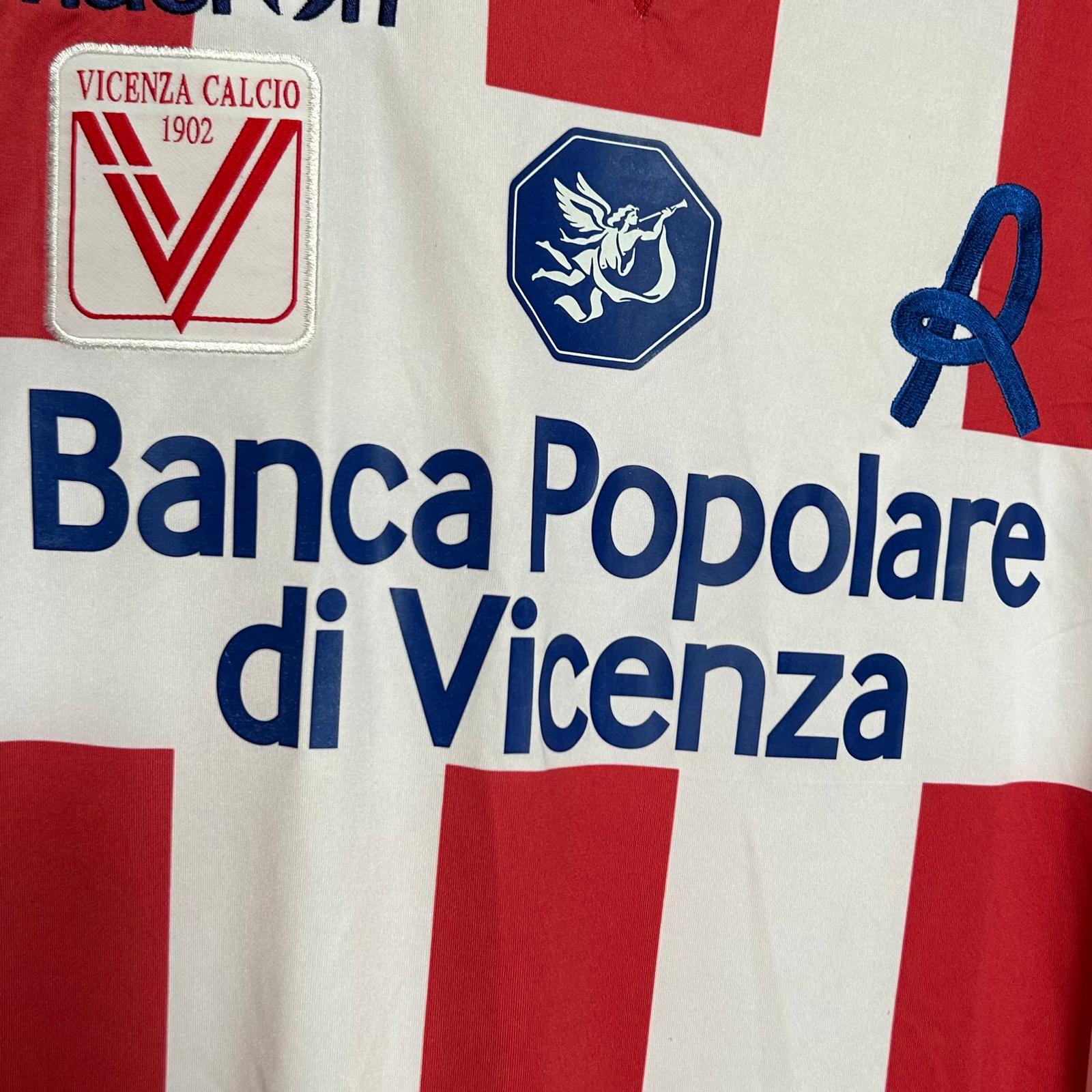 Primera equipación del Vicenza en la temporada 2014 – 2015. Recién ascendido desde Serie C1, hizo una gran temporada acabando 3º en la fase regular, aunque no pudo superar al Pescara en playoffs. En Coppa cayó ante la Bassano Virtus en primera ronda.
