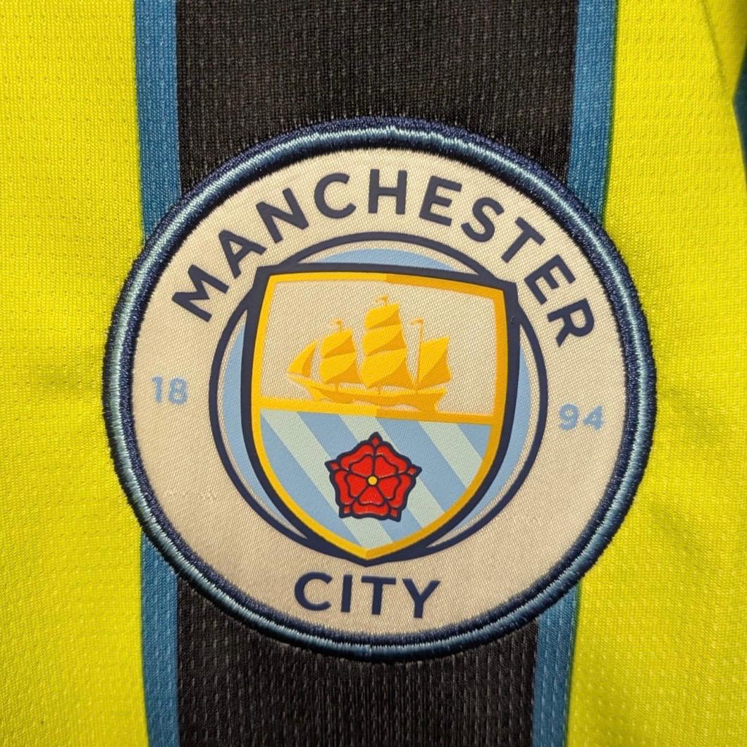 La segunda equipación del Manchester City de la temporada 2024-2025, de la marca Puma, es de color azul marino con franjas verticales en amarillo flúor y finas líneas celestes, y el patrocinador Etihad Airways. Inspirada en la icónica equipación de 1998-1999, esta temporada el Manchester City finalizó 3º en la Premier League, fue subcampeón de la FA Cup, y eliminado en los play-offs de la UEFA Champions League.