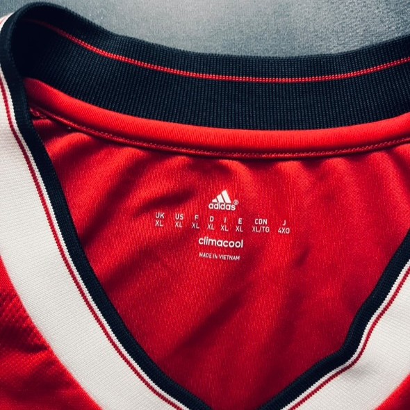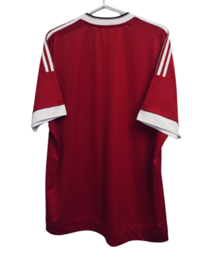 El Manchester United lució esta primera equipación de Adidas en la temporada 2015-2016, un diseño clásico en rojo con detalles blancos que marcaba el regreso de la marca alemana. Con esta elástica, el equipo de Mánchester conquistó la FA Cup en 2016, obtuvo el 5º puesto en la Premier League y fue eliminado en la fase de grupos de la Champions League.