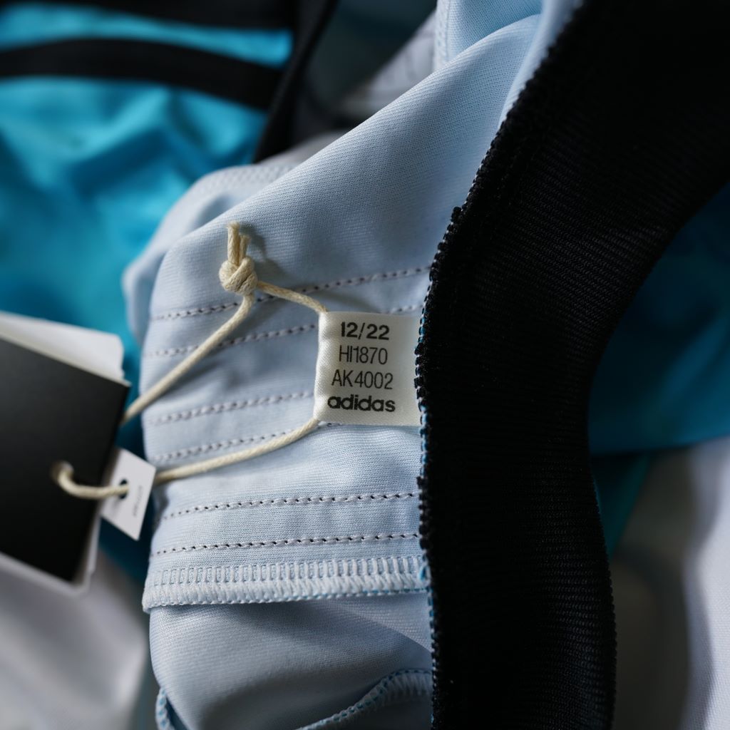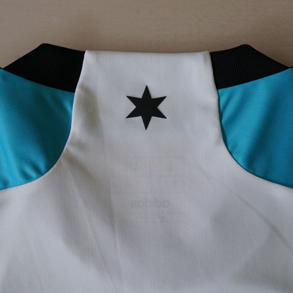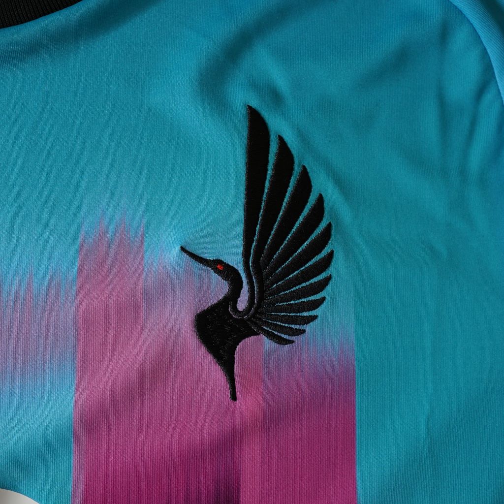 La camiseta visitante de Minnesota United 2023-2024 presenta un diseño inspirado en las auroras boreales, con una combinación de azul, rosa y negro que se difumina sobre un fondo blanco. Fabricada por Adidas, incluye el escudo del club en negro en el pecho y el logo del patrocinador Target en el centro. Se utilizó en la Major League Soccer (MLS) y la US Open Cup durante ambas temporadas. Mala temporada en 2023, y en 2024 consiguió alcanzar las semifinales de conferencia.