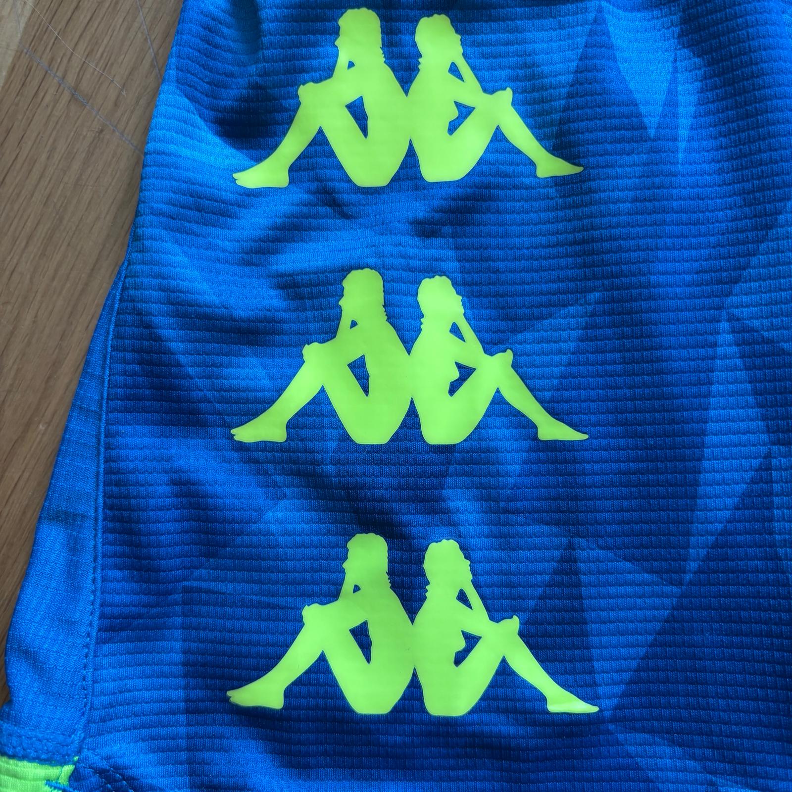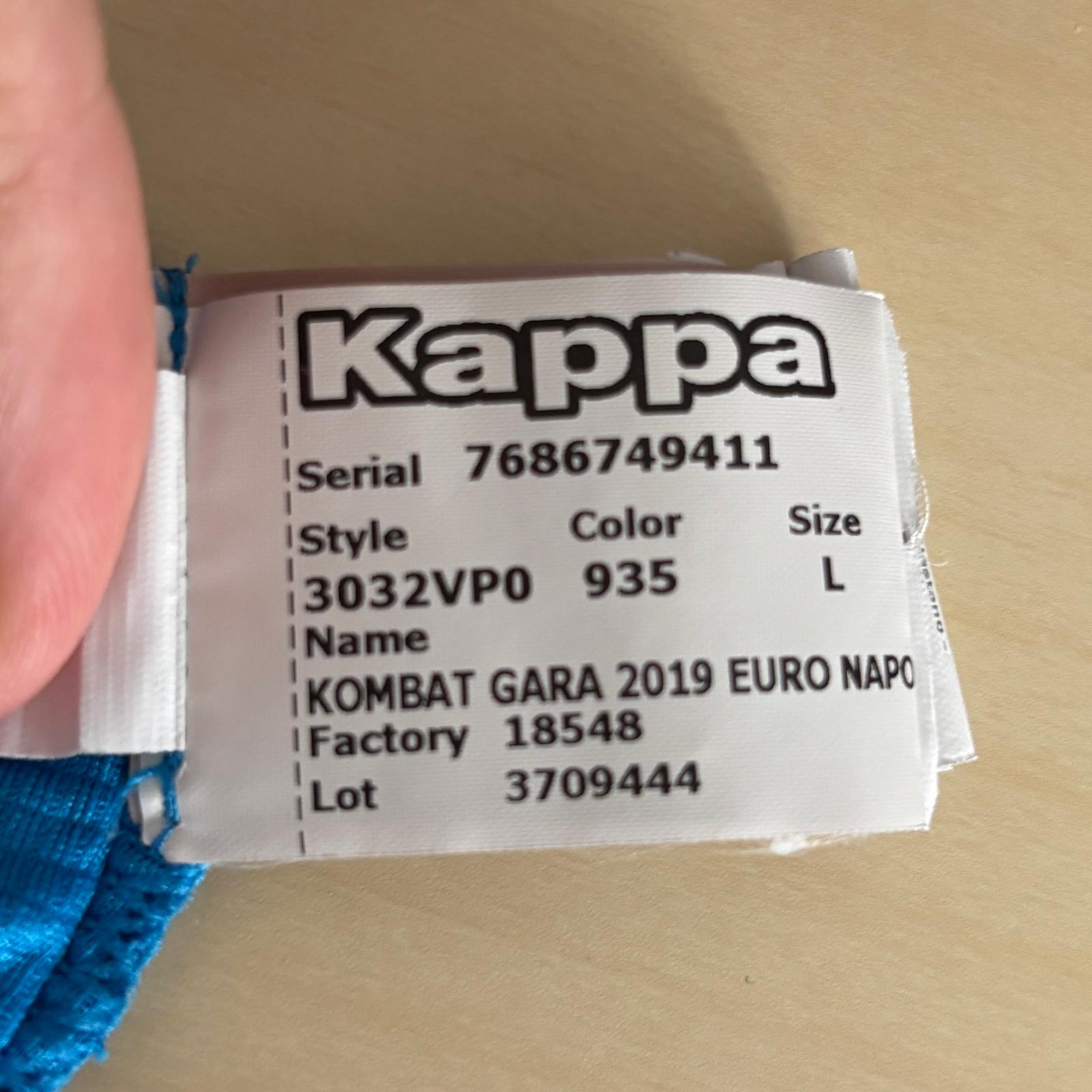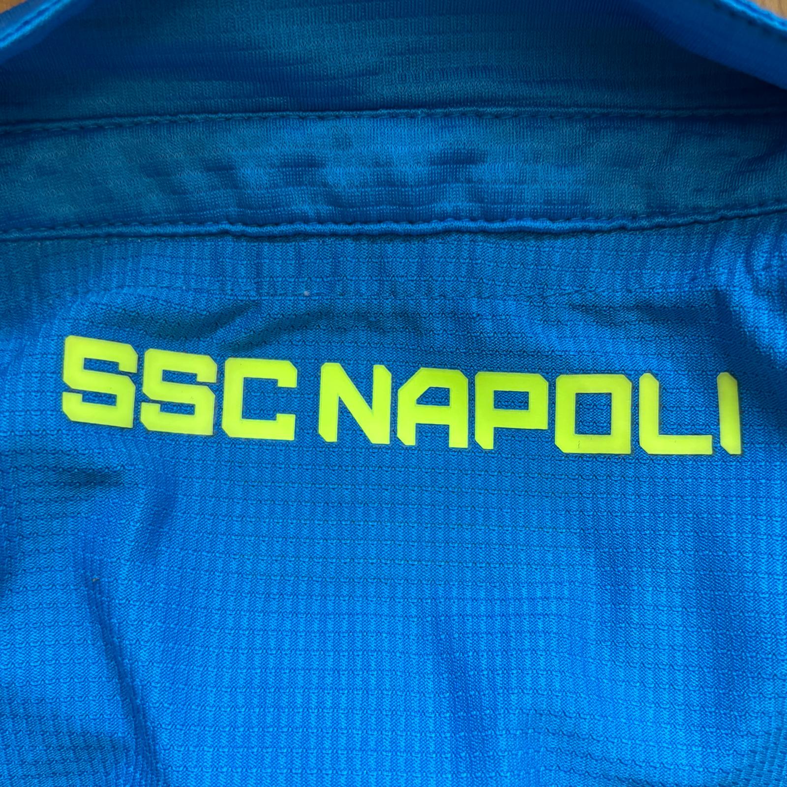 La primera equipación del Napoli de la temporada 2018-2019 (versión Europa), de la marca Kappa, es de color azul con un estampado geométrico de camuflaje, y detalles en amarillo flúor. Con esta equipación, el Napoli fue eliminado en la fase de grupos de la UEFA Champions League en 2019, pasando a la Europa League donde llegó a cuartos de final.