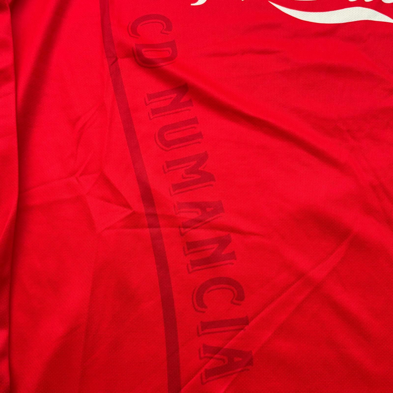 La camiseta local del CD Numancia 2009-2010, de la marca Errea, es roja con mangas largas y puños blancos. El patrocinador principal es Caja Duero. El equipo finalizó en la 8ª posición en Segunda División y fue eliminado en la 2ª ronda de la Copa del Rey esa temporada.