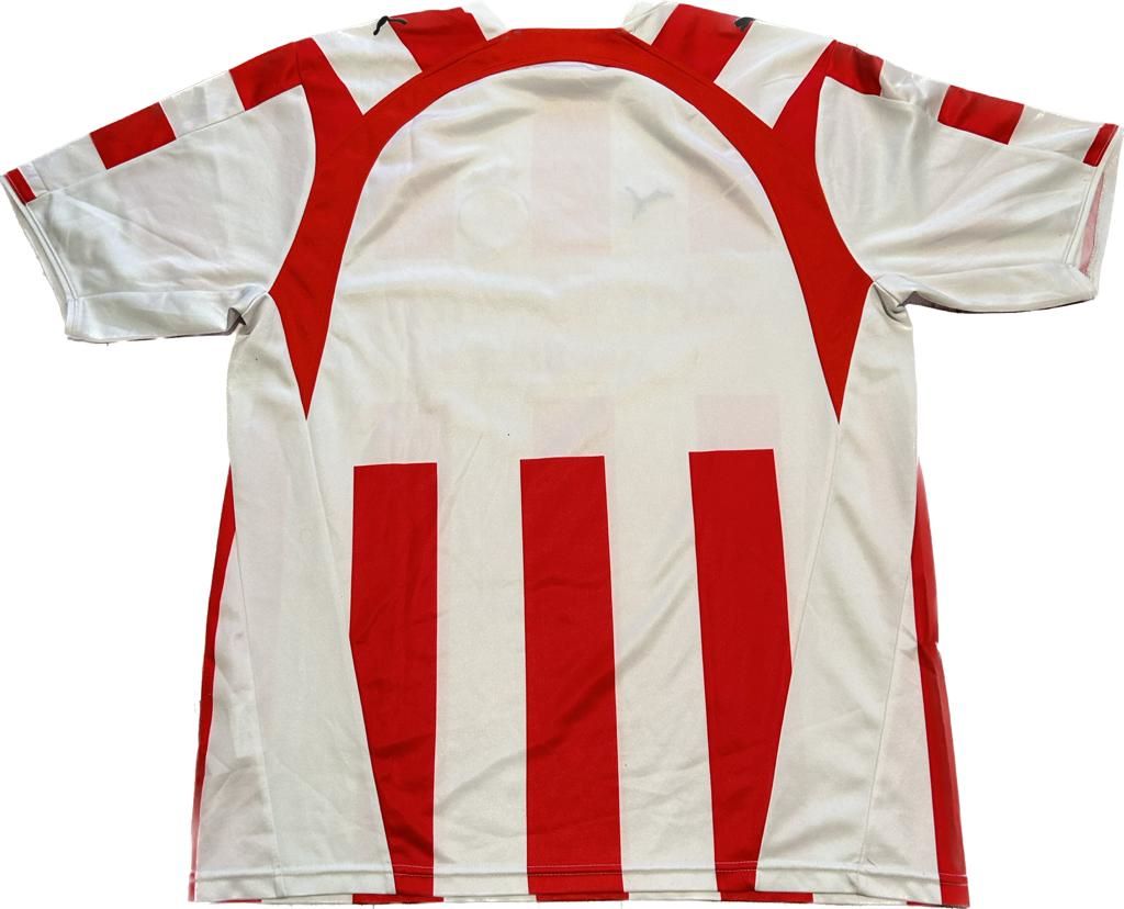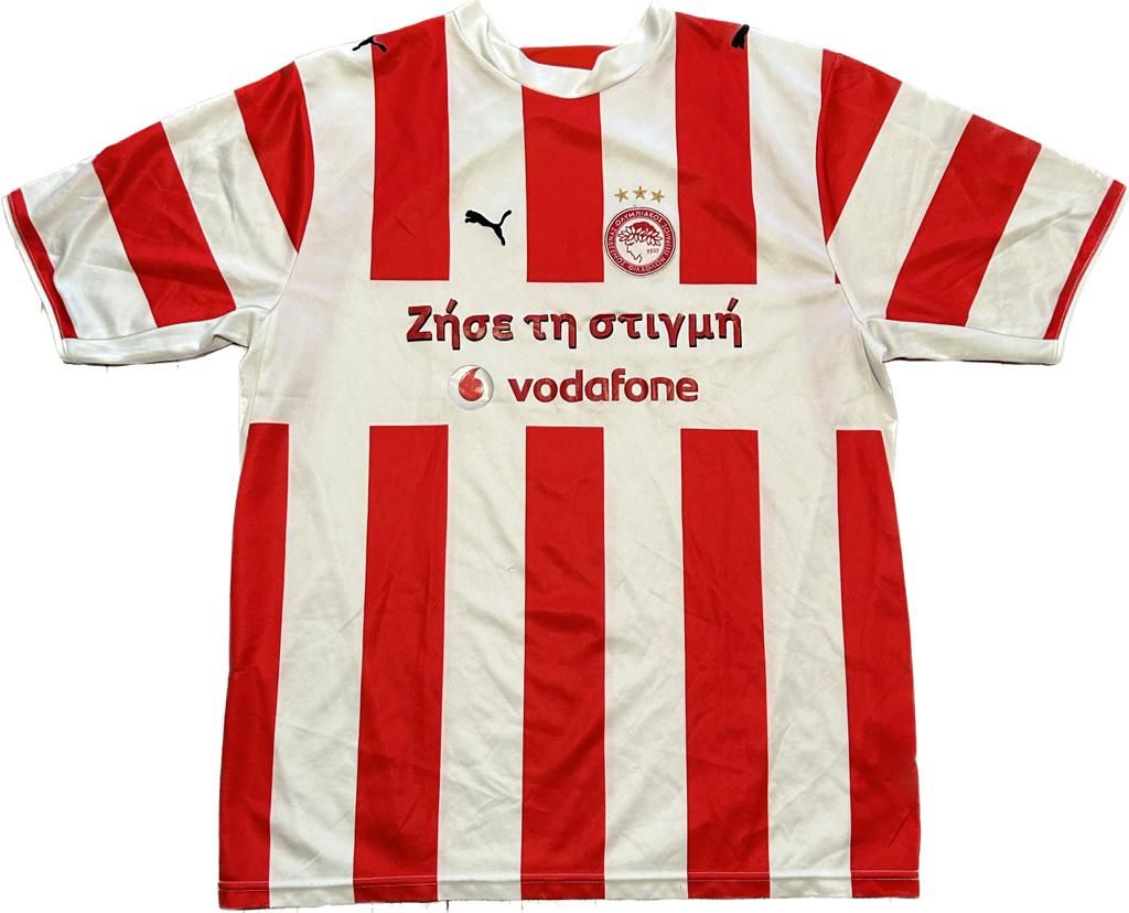 Camiseta local del Olympiakos para la temporada 2006-2007, fabricada por Puma. Diseño con las clásicas franjas verticales en rojo y blanco, escudo con tres estrellas y patrocinador Vodafone en el centro. Durante esta campaña 2006 – 2007, el Olympiakos se proclamó campeón de la Superliga de Grecia y participó en la Champions League, aunque no logró avanzar a la fase de eliminación directa.
