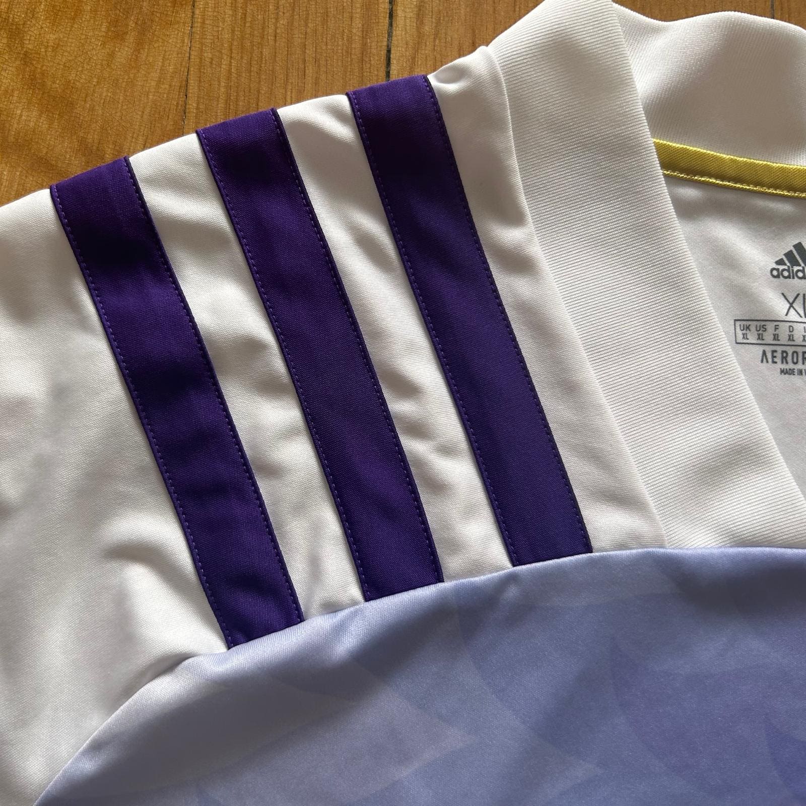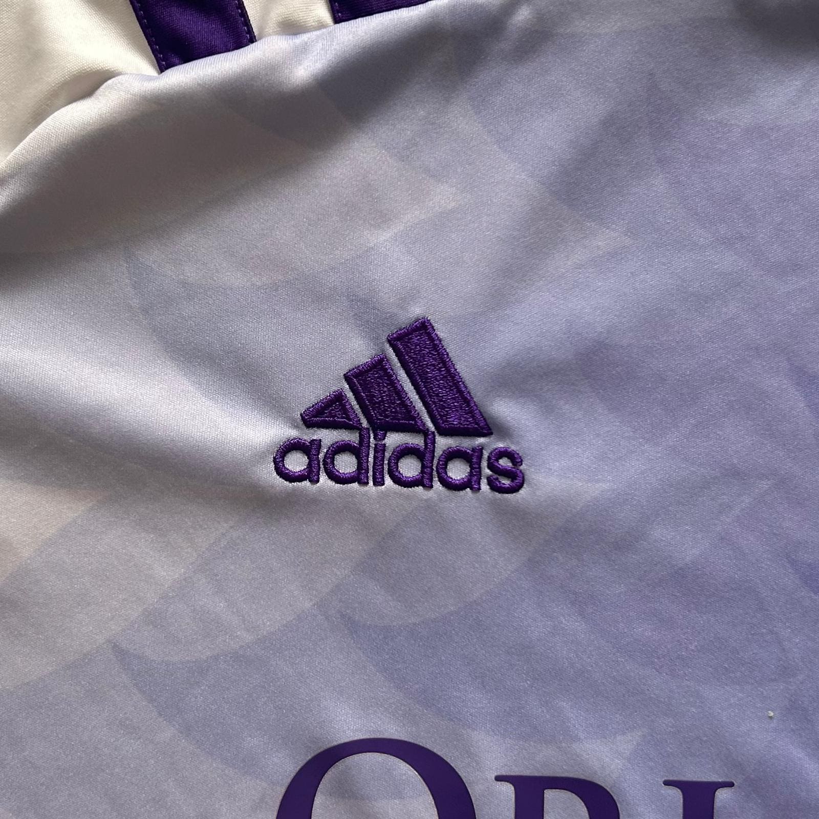 Camiseta visitante del Orlando City SC utilizada en las temporadas 2020 y 2021, fabricada por Adidas. Diseño en blanco con degradado en morado en forma de flor, inspirado en la energía del club. En ambas temporadas clasificó a playoff, con las semifinales de conferencia en 2020 como mejor resultado.