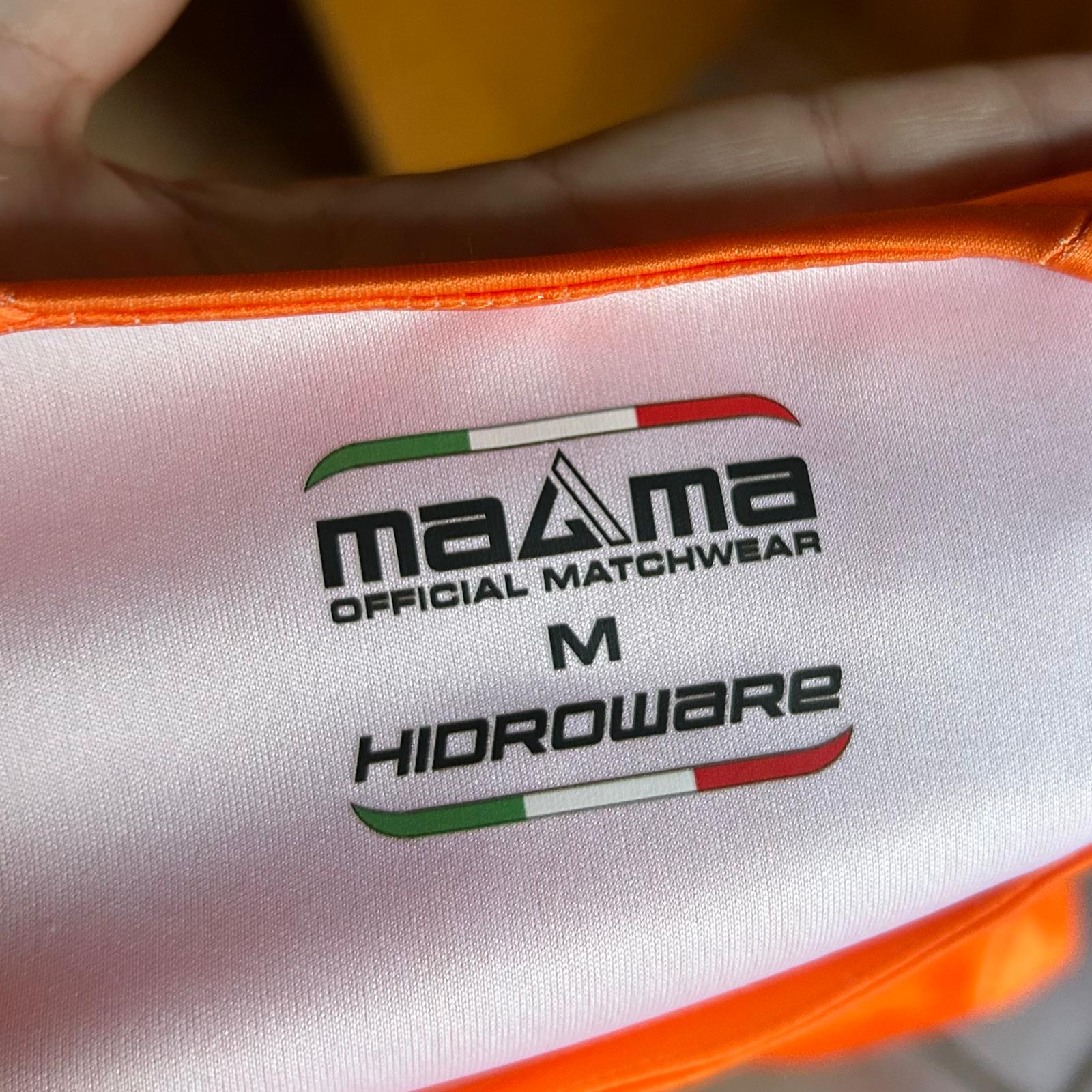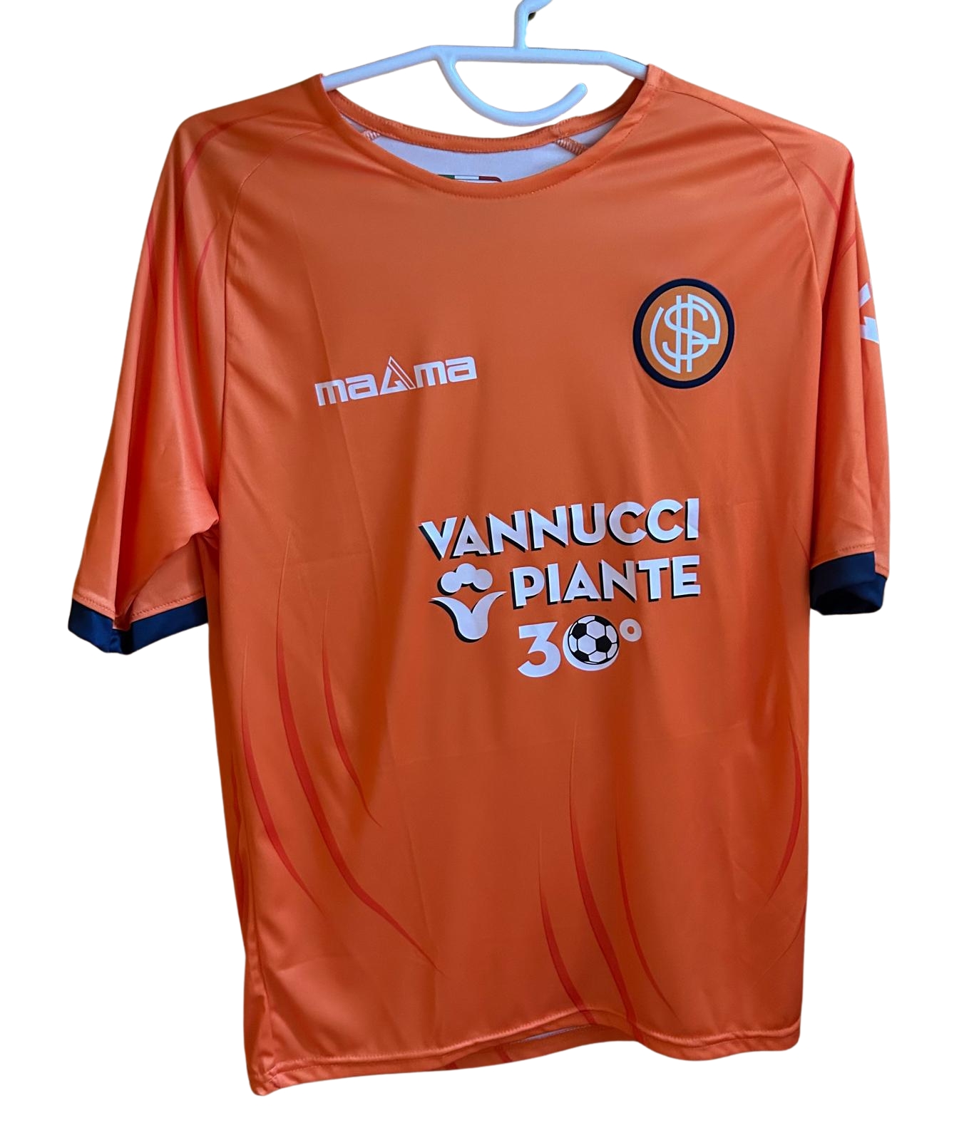 Camiseta local del US Pistoiese 1921 para la temporada 2023 – 2024, fabricada por Magma. Presenta el característico color naranja del club con detalles en azul marino en las mangas. El equipo competía en la Serie D – Grupo E, la cuarta categoría del fútbol italiano. El club no llegó a terminar la temporada al haber sido disuelto.
