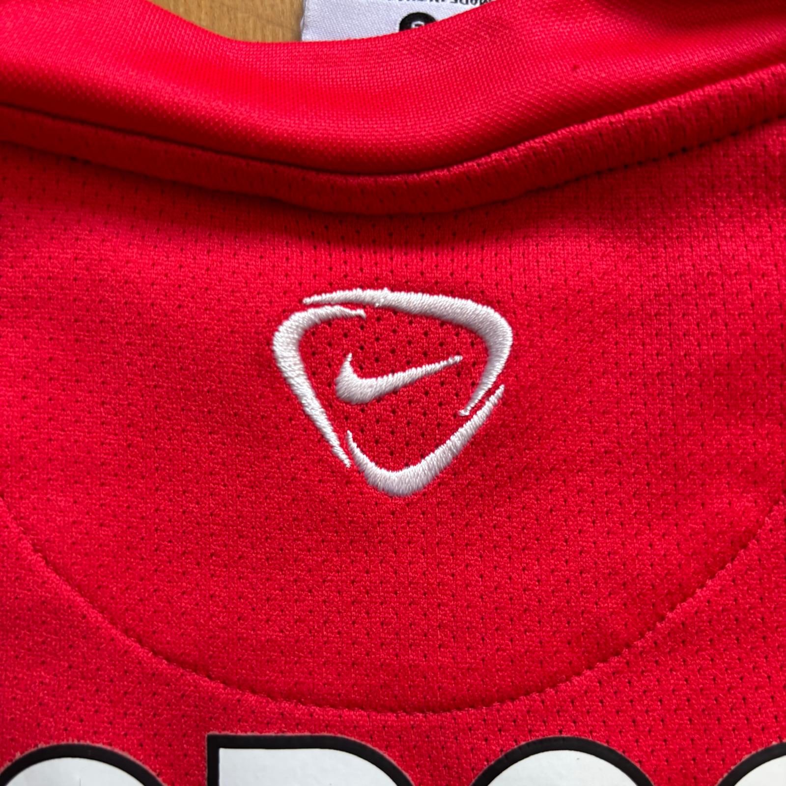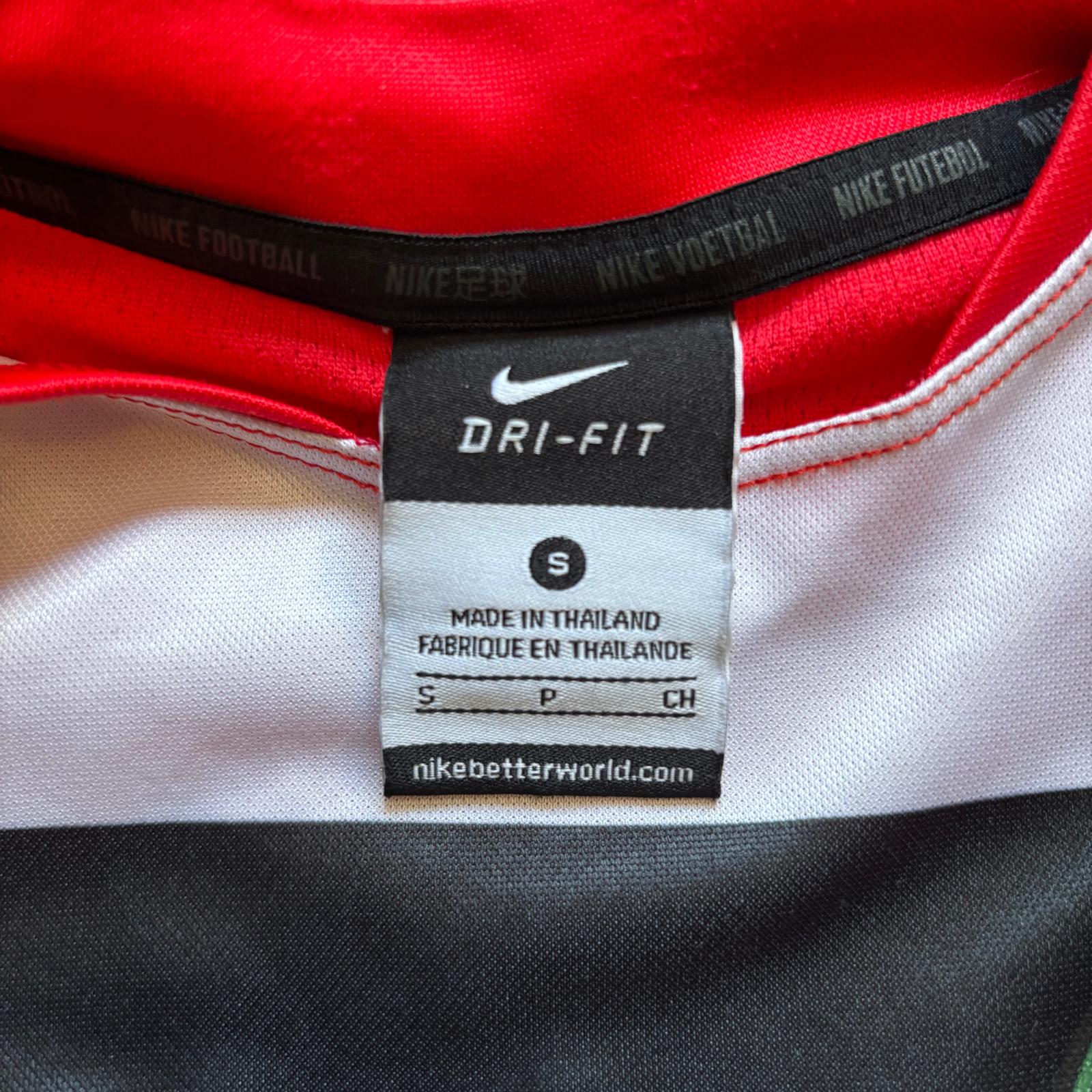 Esta tercera equipación de Portland Thorns, diseñada por Nike, presenta un diseño a franjas horizontales rojas, blancas y negras, y fue utilizada en las temporadas 2013 y 2014 de la National Women’s Soccer League (NWSL). En 2013, el equipo se coronó campeón tras vencer al Western New York Flash (2-0) en la final. En 2014, las Thorns alcanzaron las semifinales, donde fueron eliminadas por FC Kansas City (2-0). No hubo participación en competiciones internacionales, ya que la NWSL no contaba con torneos continentales oficiales en ese momento. Esta camiseta se usó normalmente como prematch, y en 2014 puntualmente como tercera equipación de juego (con la publicidad Providence).