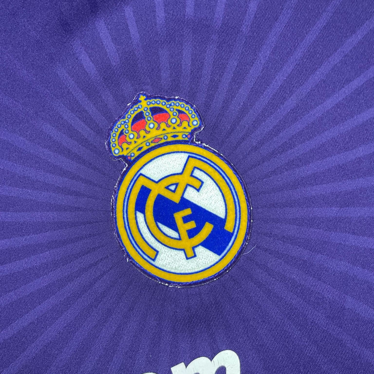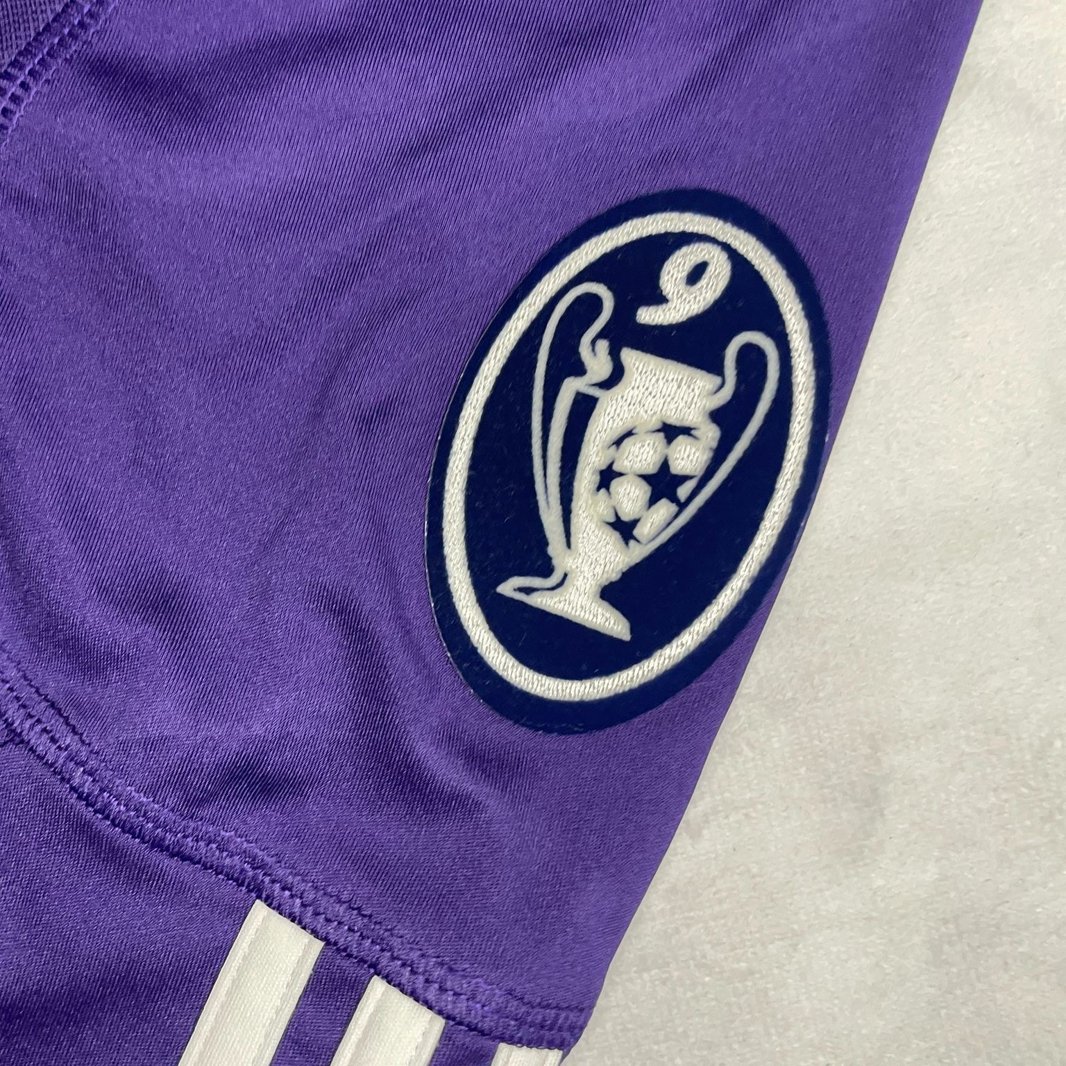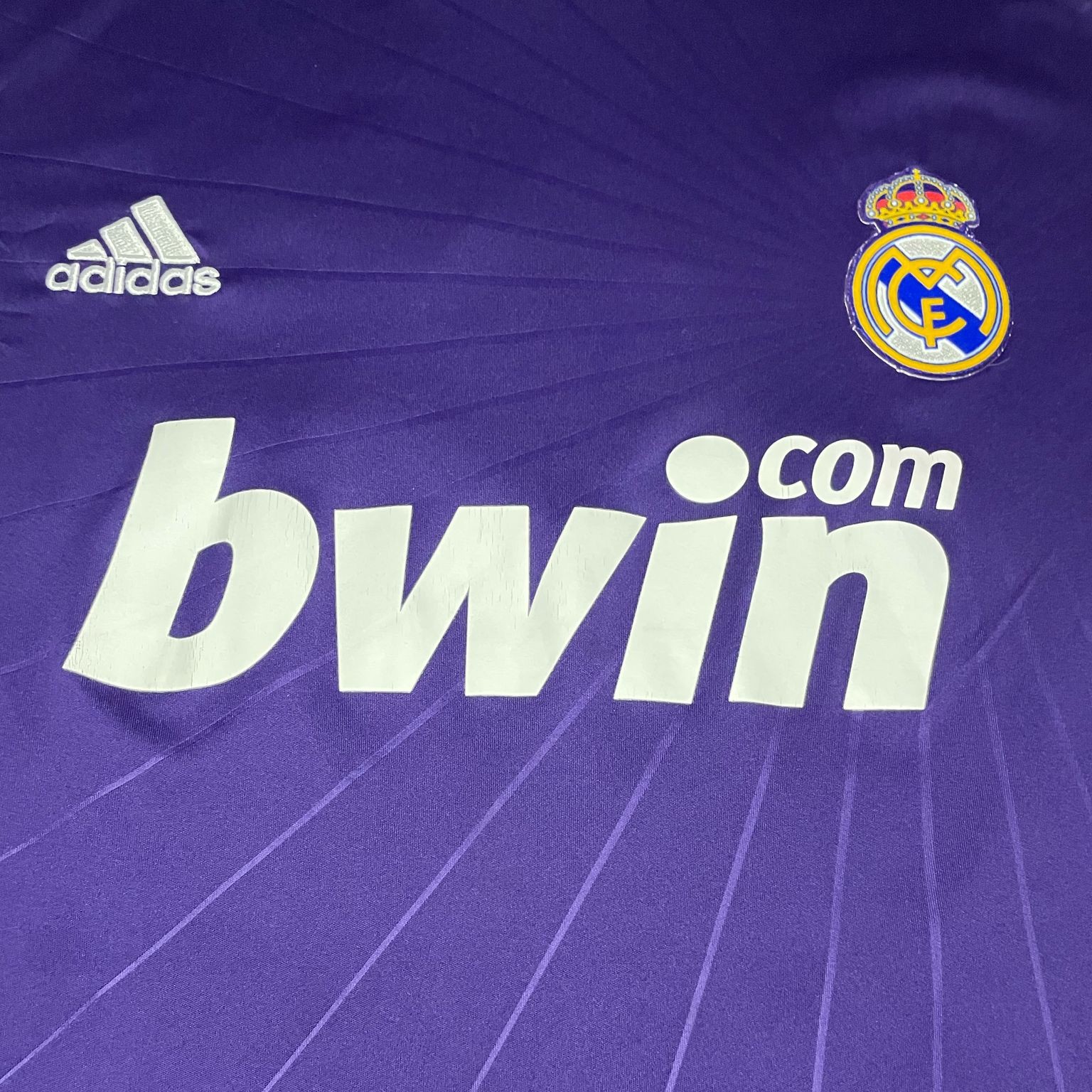 Camiseta morada con detalles blancos, usada como tercera equipación del Real Madrid durante la temporada 2010–11, con protagonismo en partidos de la UEFA Champions League. El equipo alcanzó las semifinales del torneo, cayendo frente al FC Barcelona. En el ámbito nacional, fue segundo en LaLiga y campeón de la Copa del Rey, derrotando al Barcelona en la final.