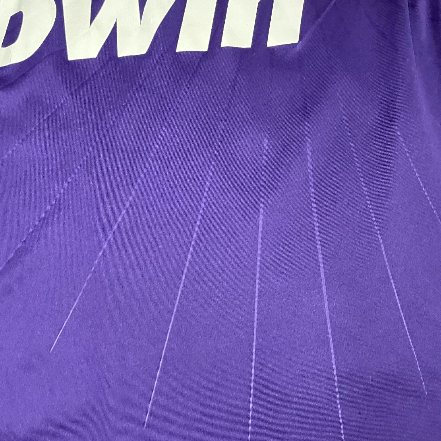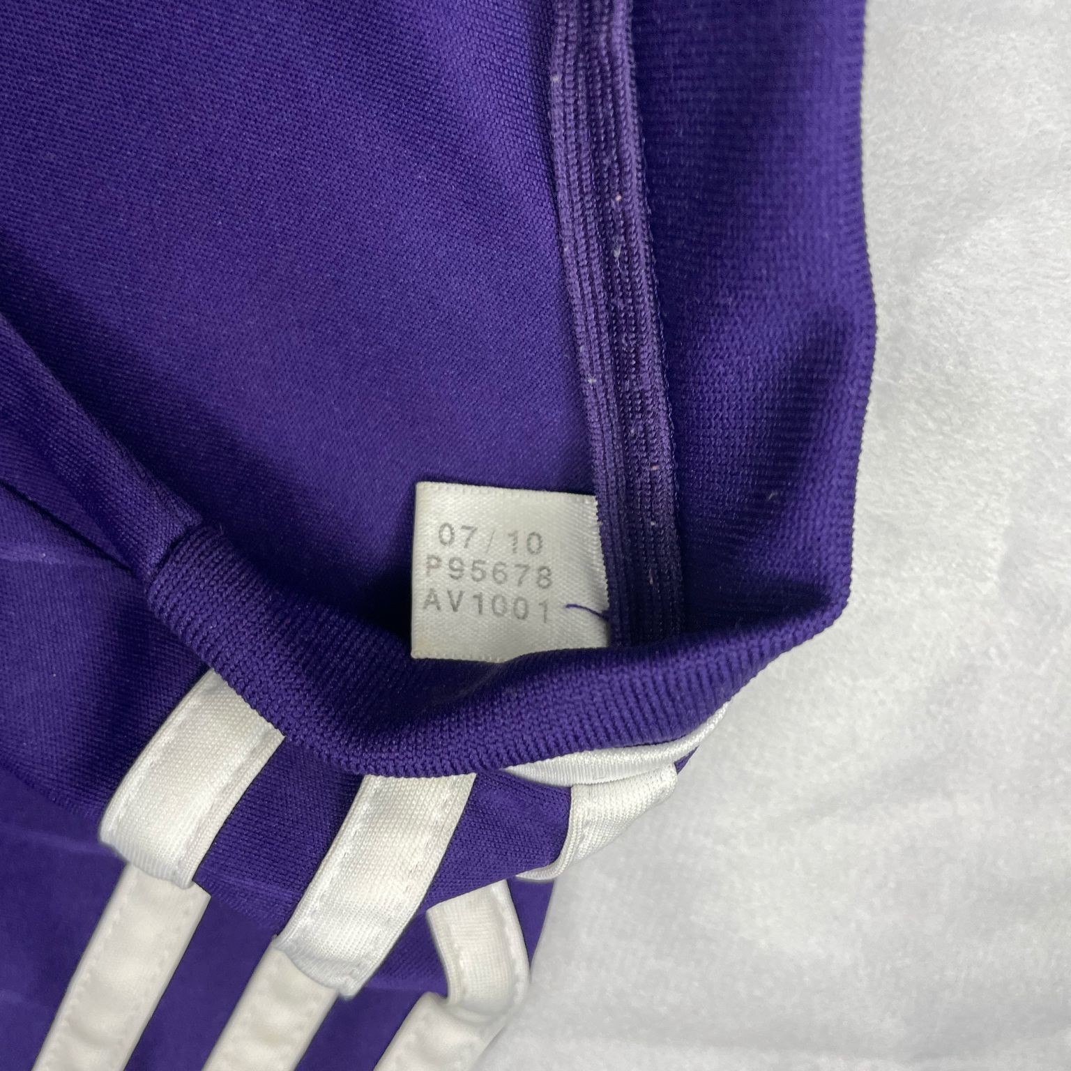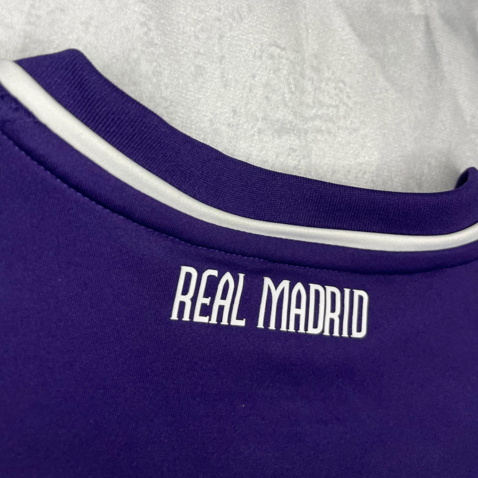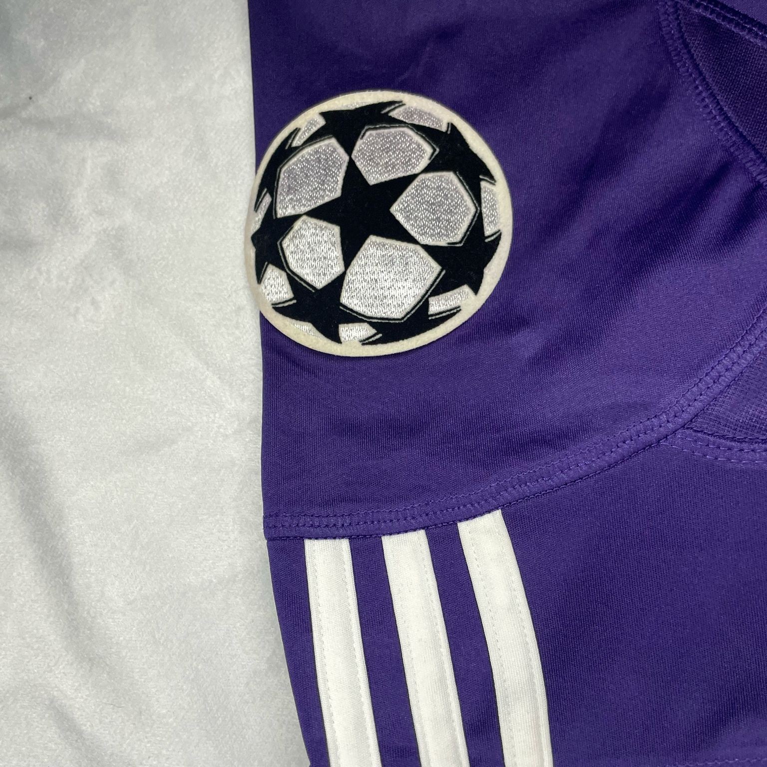 Camiseta morada con detalles blancos, usada como tercera equipación del Real Madrid durante la temporada 2010–11, con protagonismo en partidos de la UEFA Champions League. El equipo alcanzó las semifinales del torneo, cayendo frente al FC Barcelona. En el ámbito nacional, fue segundo en LaLiga y campeón de la Copa del Rey, derrotando al Barcelona en la final.