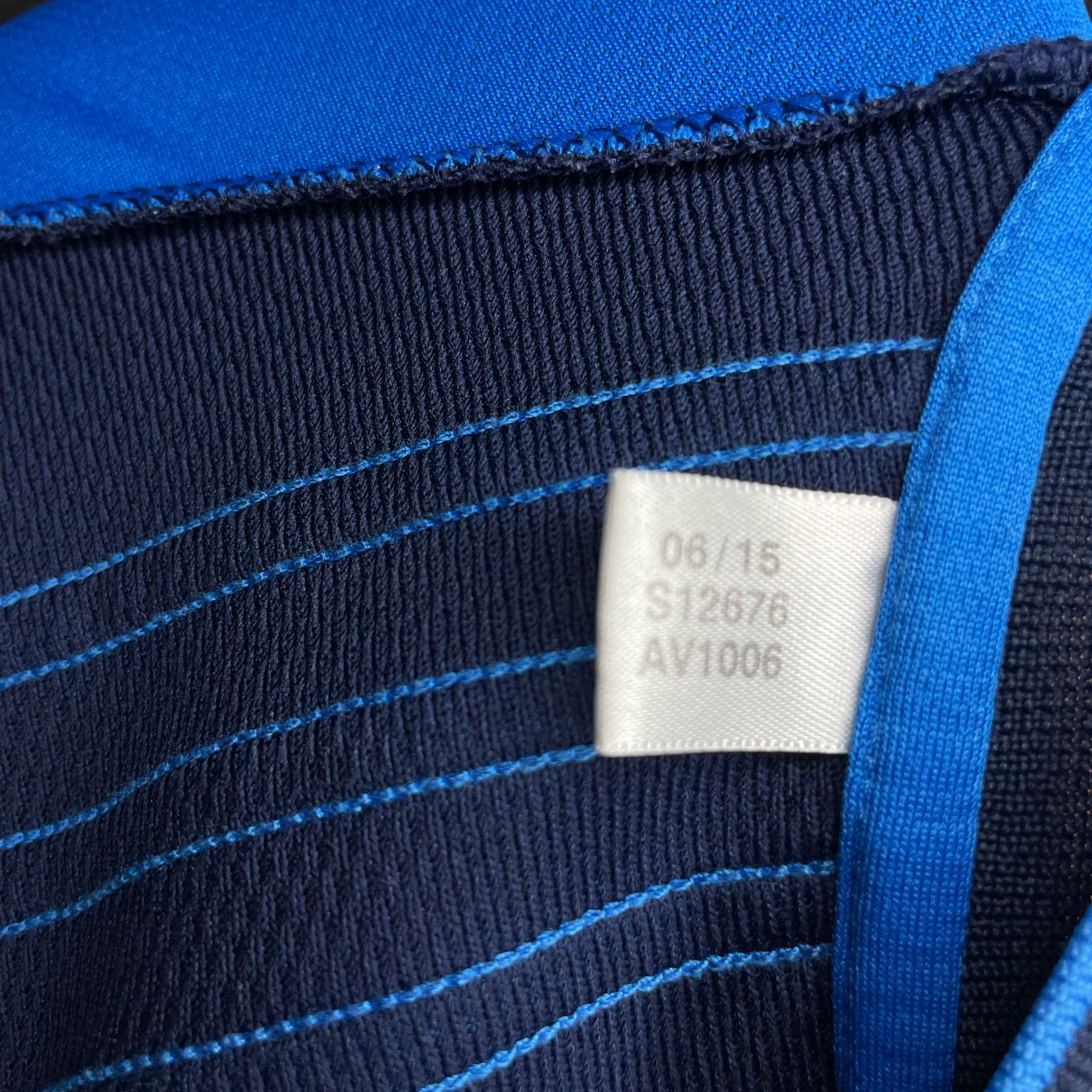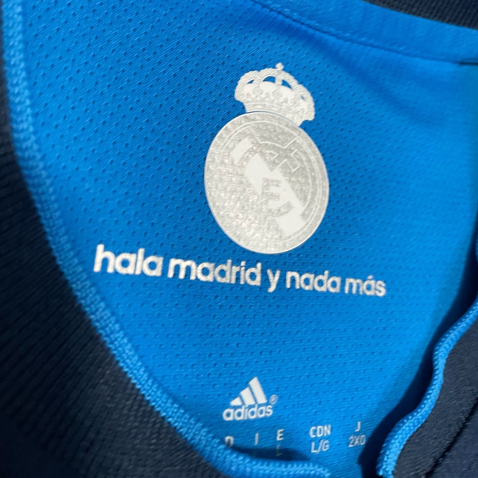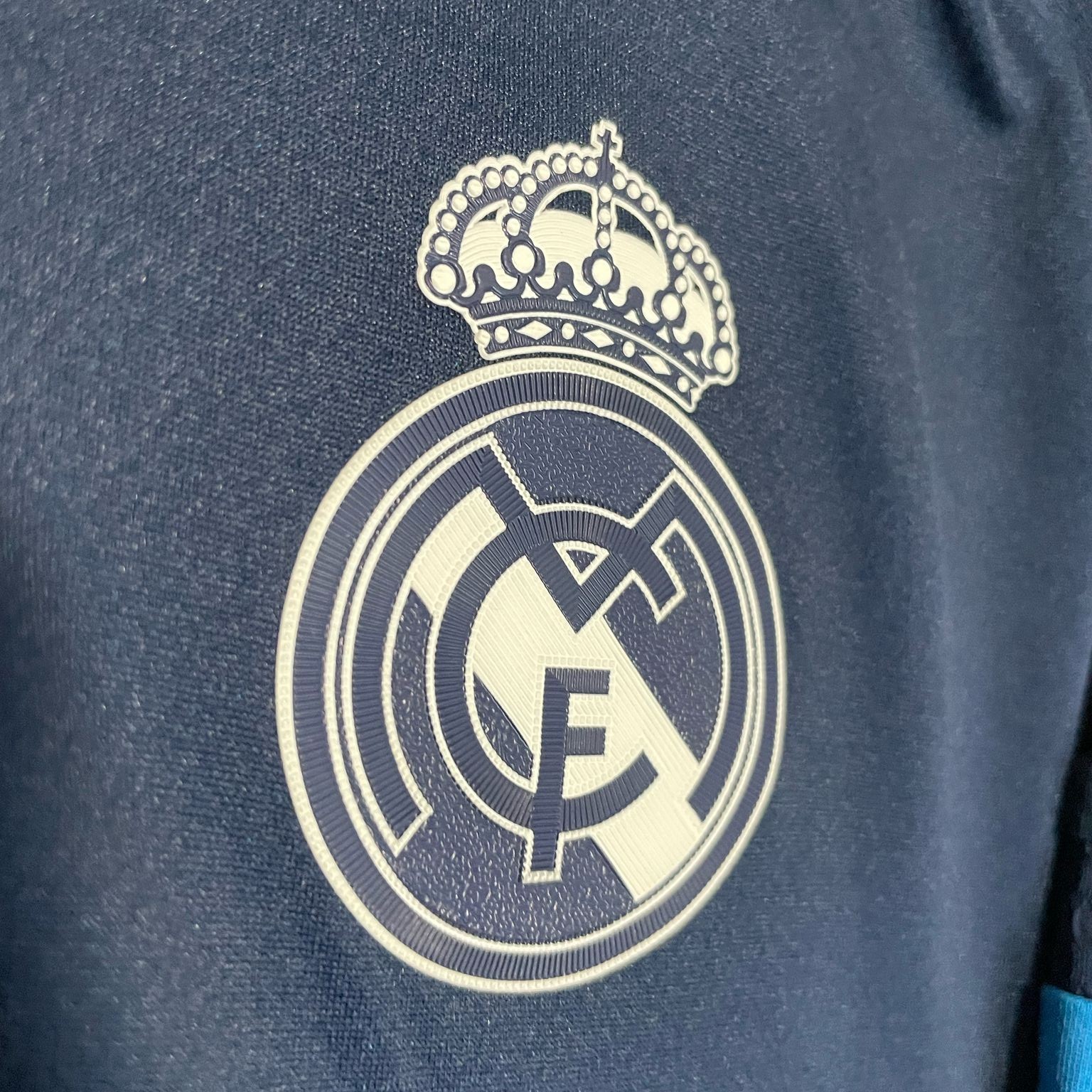Camiseta azul marino con detalles en azul celeste, fabricada por Adidas como tercera equipación del Real Madrid para la temporada 2015–16. Se utilizó principalmente en partidos de la UEFA Champions League. El equipo fue campeón de la Champions, venciendo al Atlético de Madrid en la final. En LaLiga finalizó segundo, a un punto del campeón, el FC Barcelona. En la Copa del Rey fue descalificado en dieciseisavos de final por alineación indebida de Denis Cheryshev.